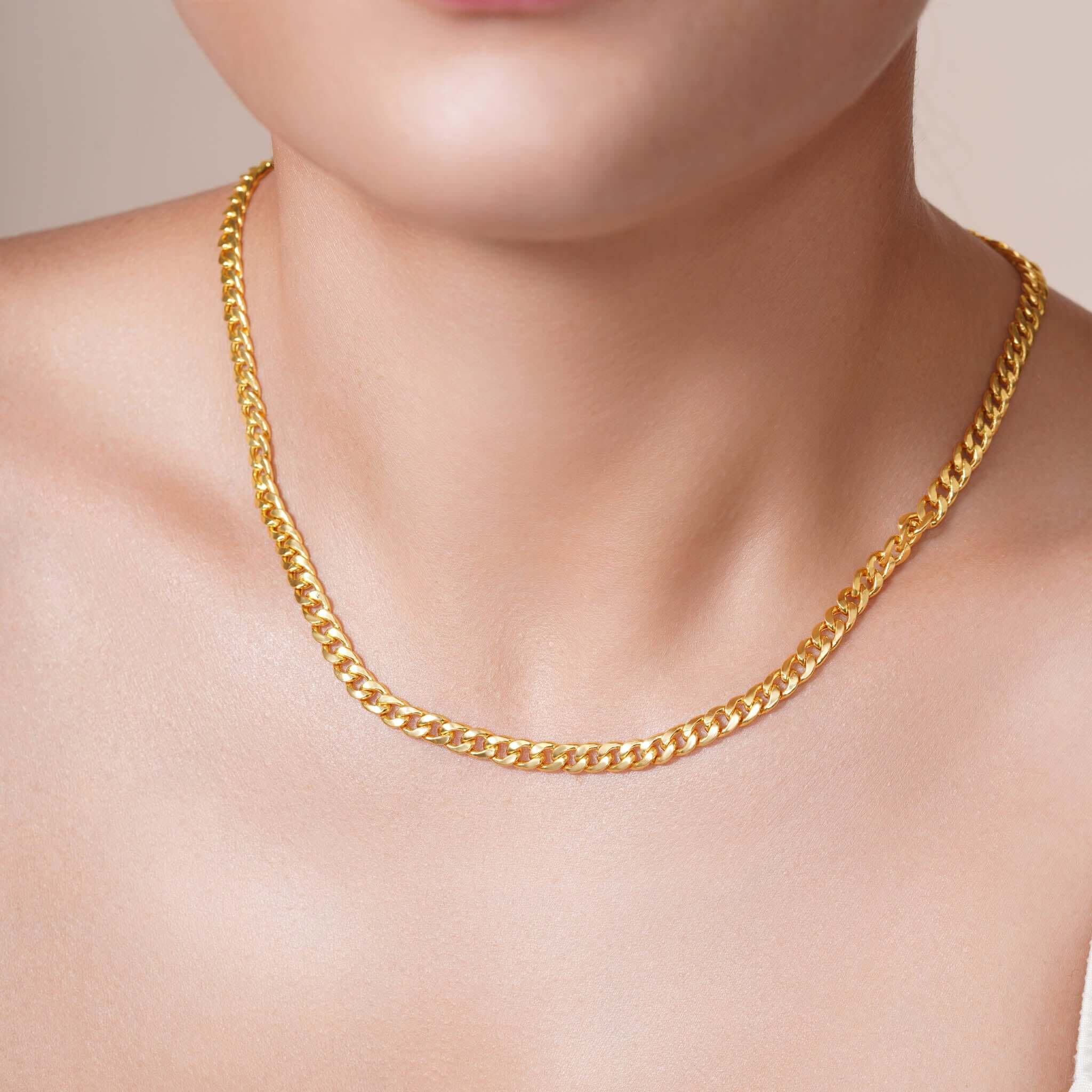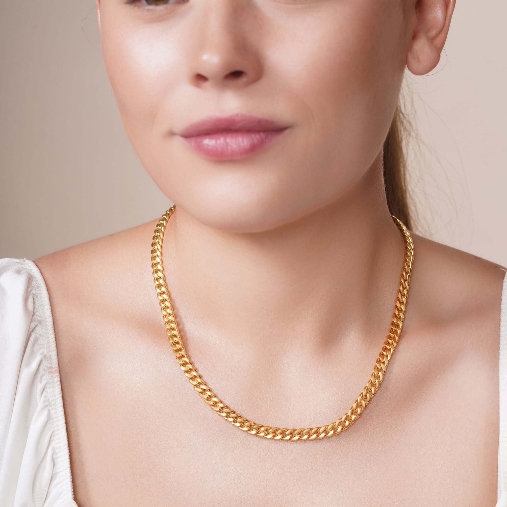 Available in 5mm and 6.5mm thicknesses and a 22-inch length, this chain is ideal for layering or wearing alone as a sophisticated statement. A secure lobster clasp keeps it comfortably in place, while its lightweight feel ensures effortless wear throughout the day.