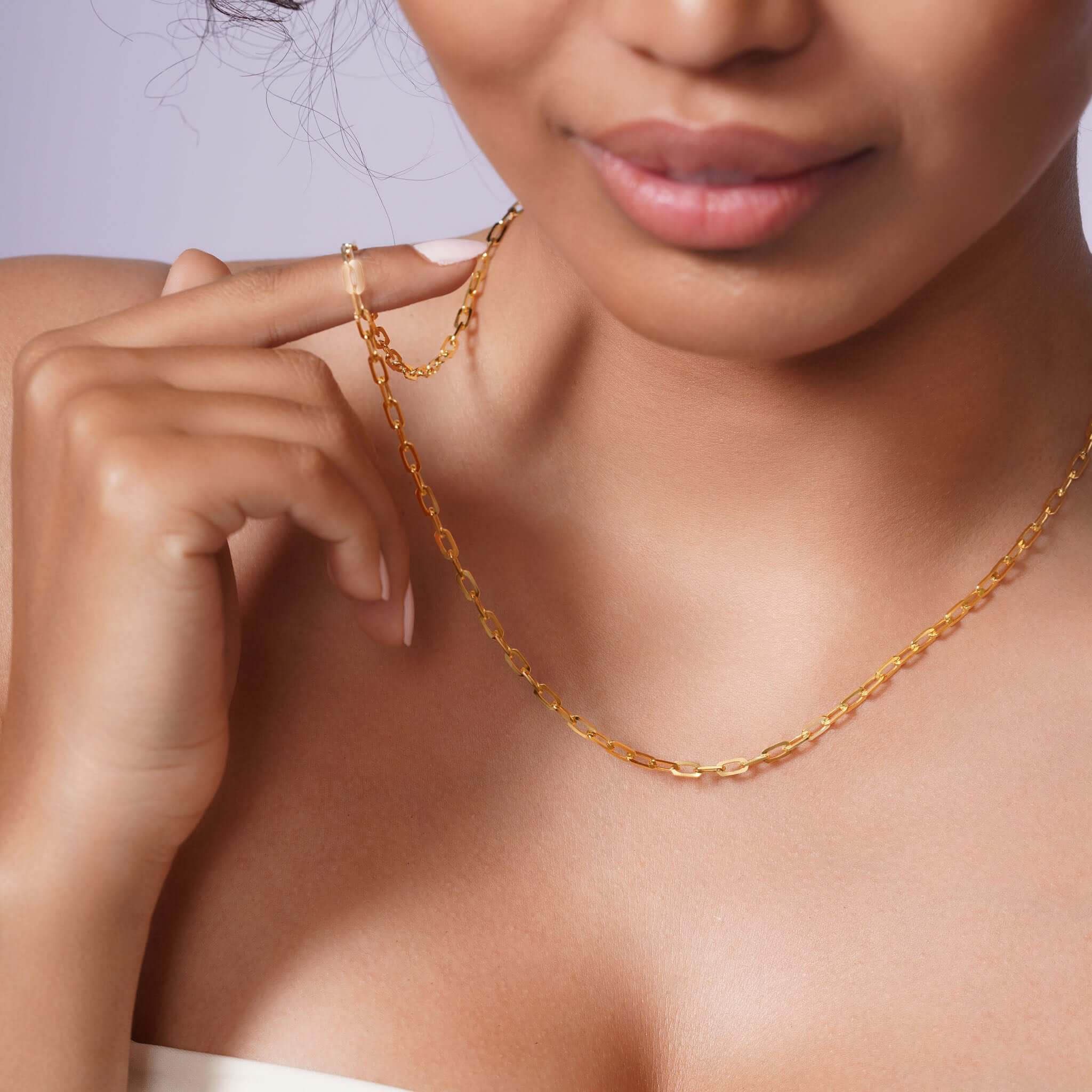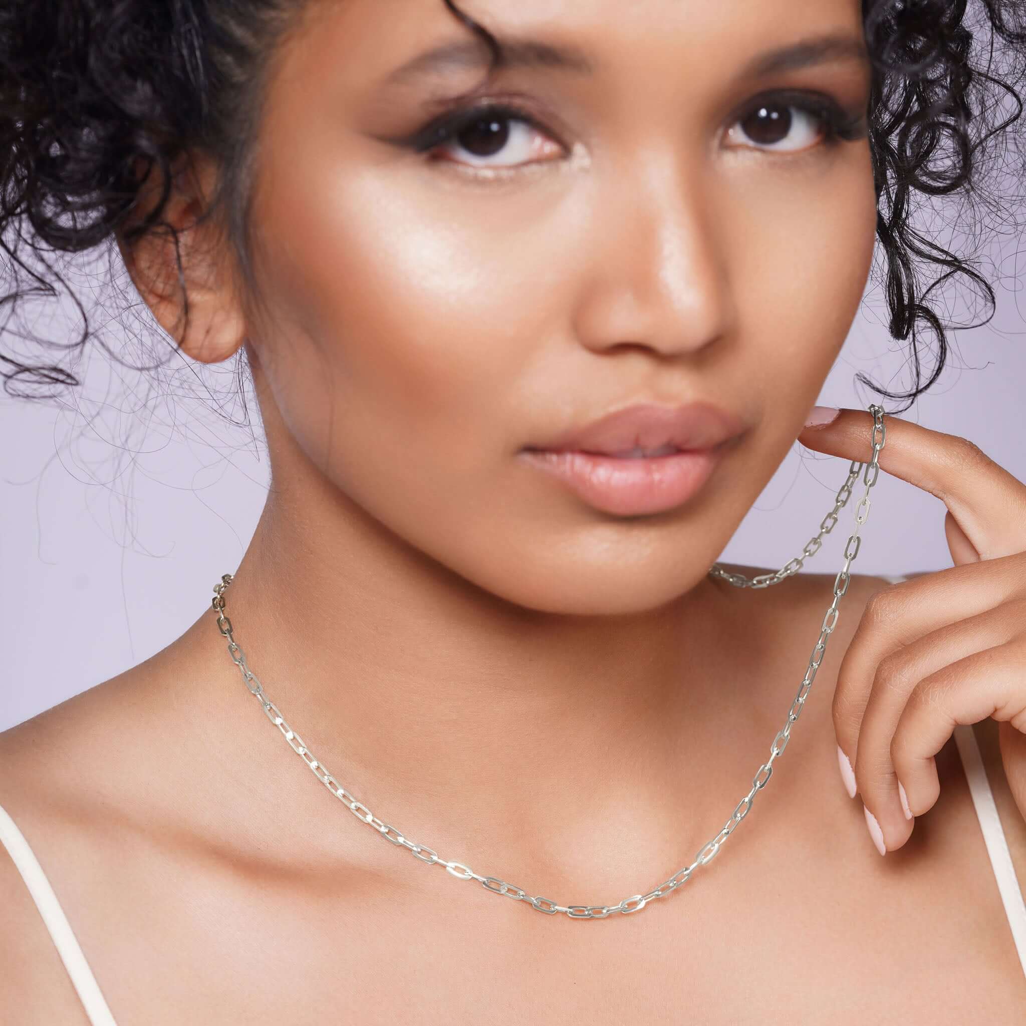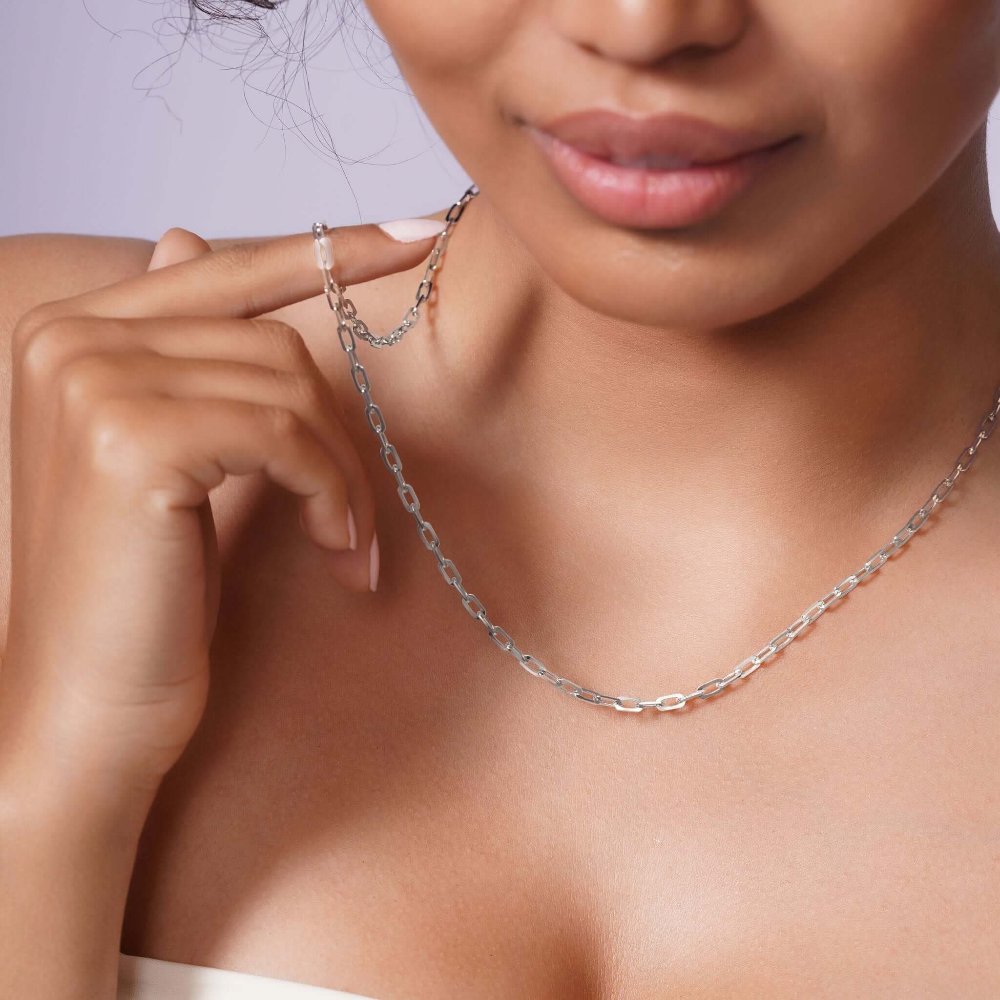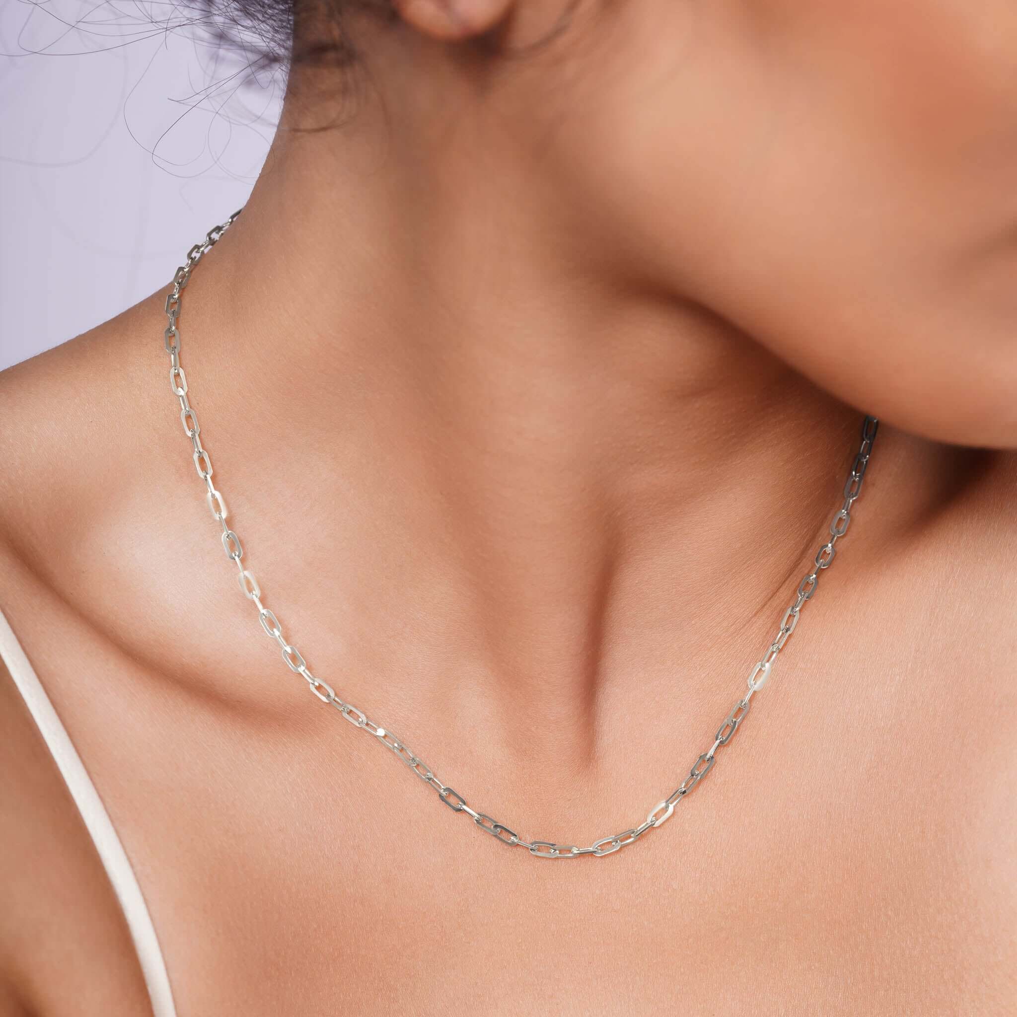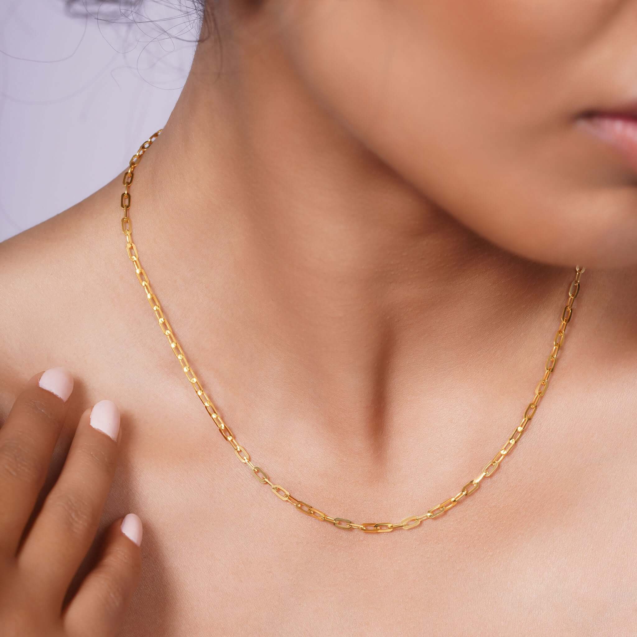 Elevate your jewelry collection with this Solid Gold Paper Clip Chain, expertly crafted in 14k white and yellow gold. Its sleek, modern design offers both durability and timeless style, making it a versatile accessory for everyday wear or special occasions. The paper clip links provide a contemporary edge while ensuring comfort and strength, perfect for layering or wearing alone. This chain exemplifies refined craftsmanship and enduring elegance for the discerning wearer.