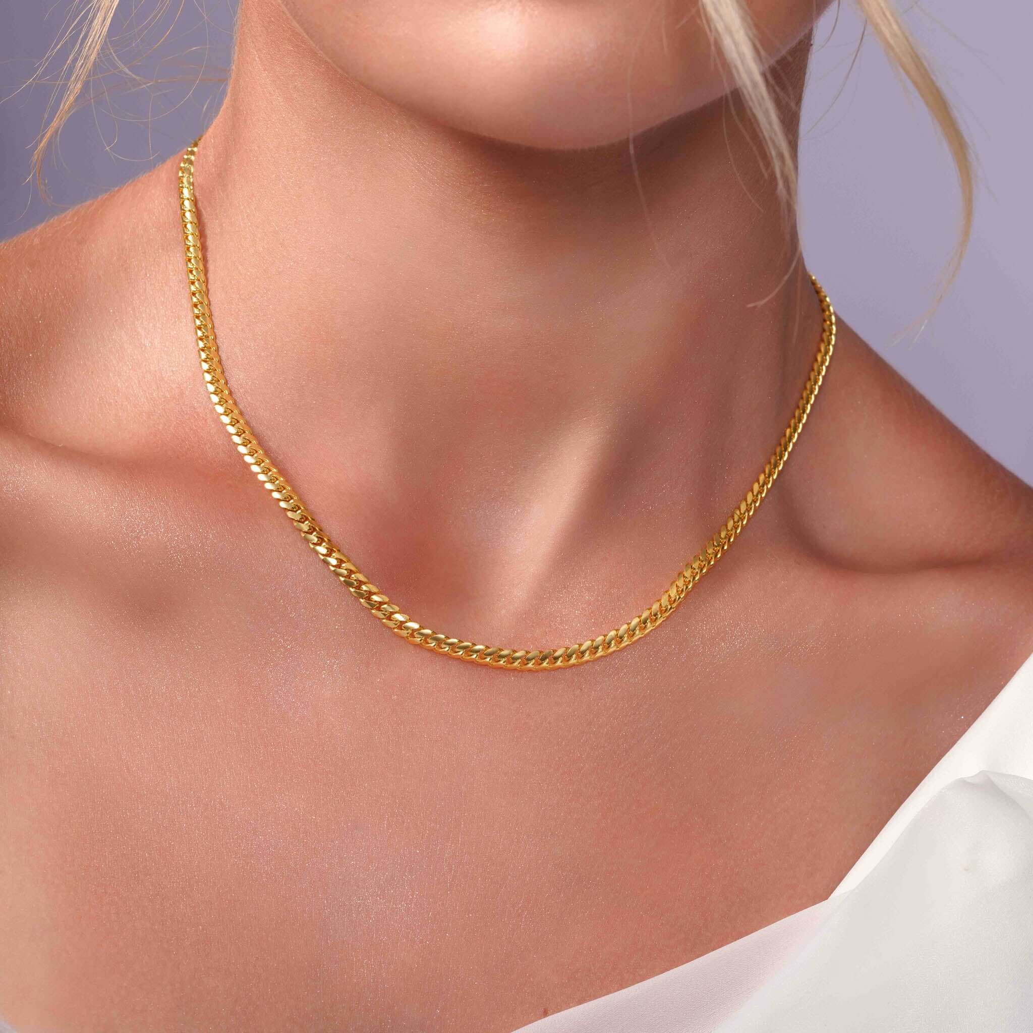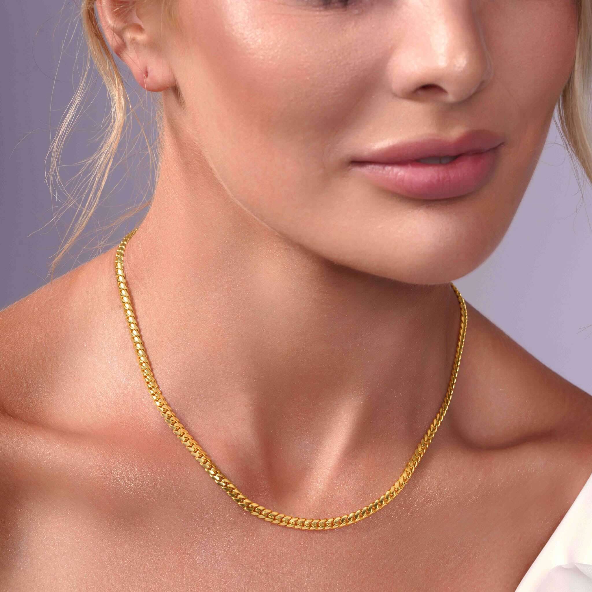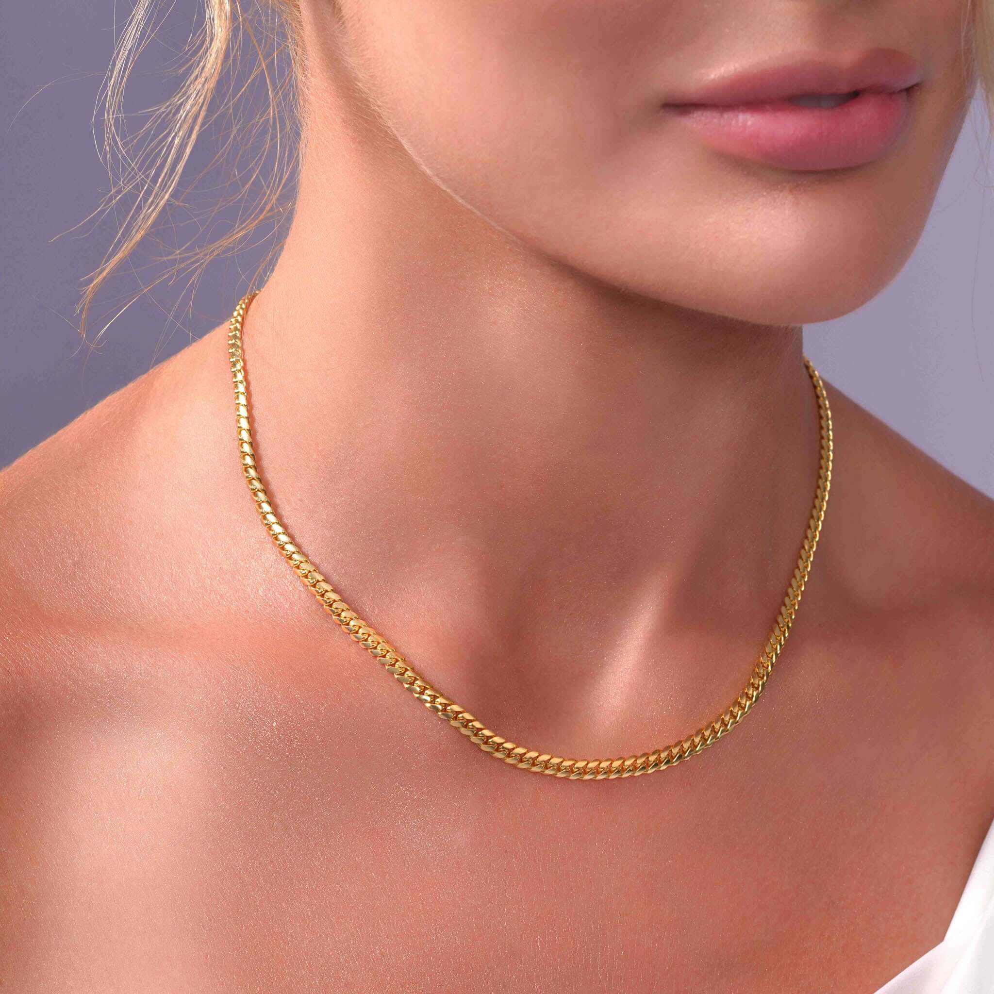 Our Solid Miami Cuban Chain is a sleek, classic statement piece designed for women who love refined edge. Its iconic interlocking links create a smooth, uniform pattern that reflects light beautifully while remaining strong and durable. Perfect for layering or wearing solo, this chain adds a modern, polished touch to any outfit.