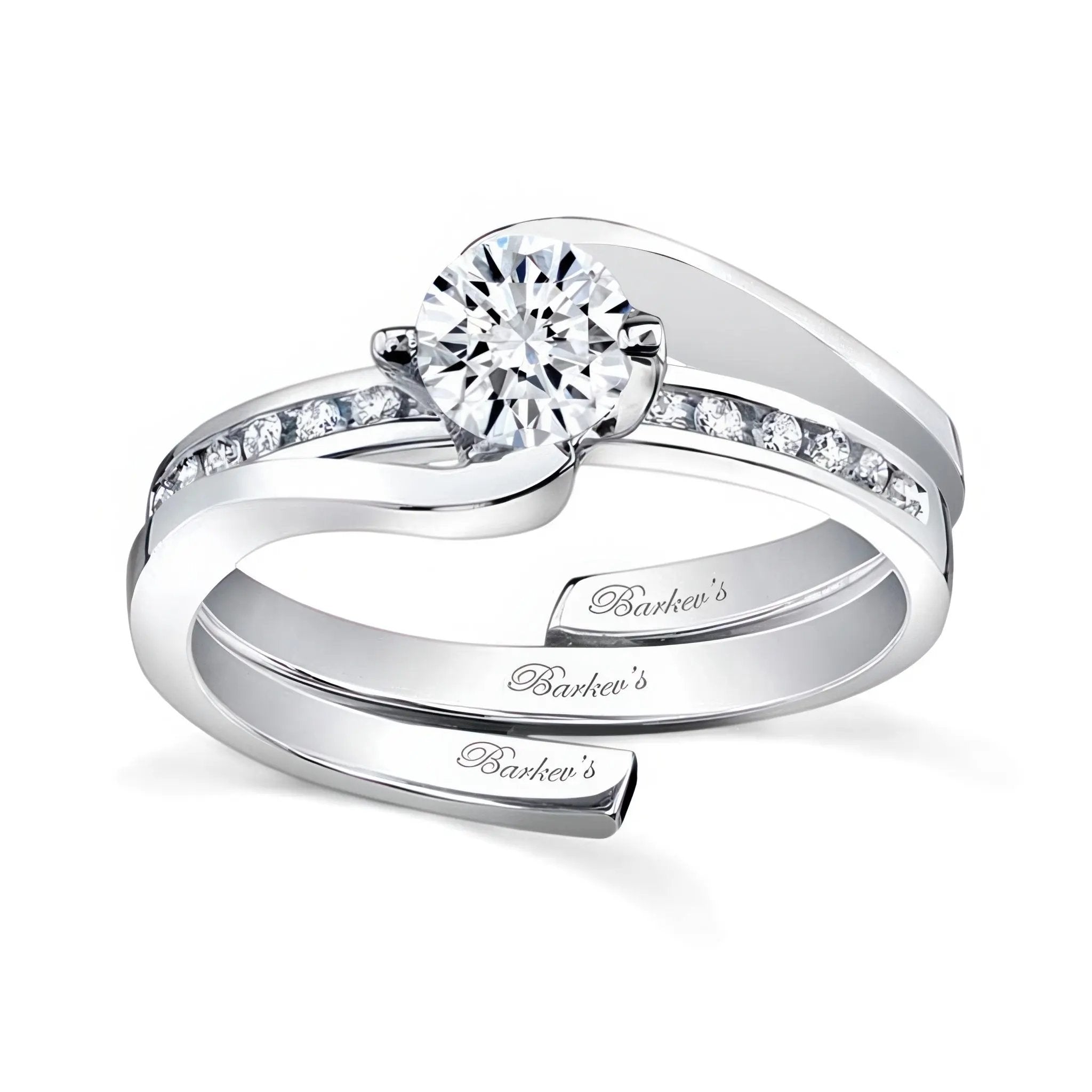 This half prong bridal set features a half channel half prong set round center and a channel set diamond wedding band for a glamorous look.
