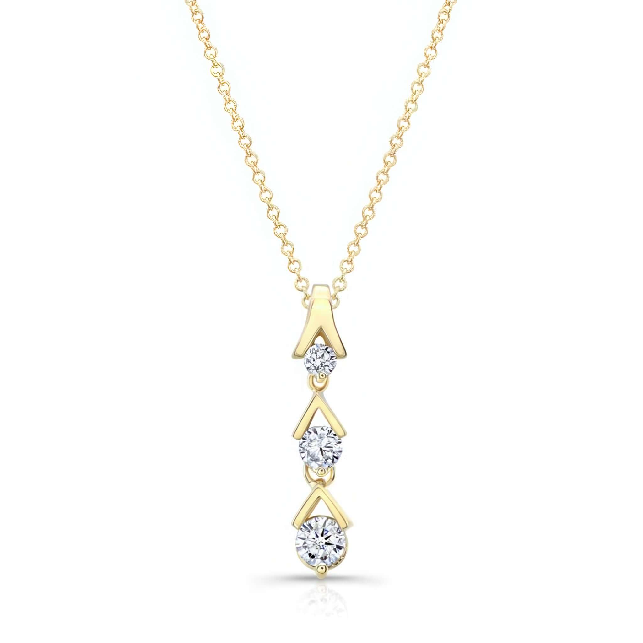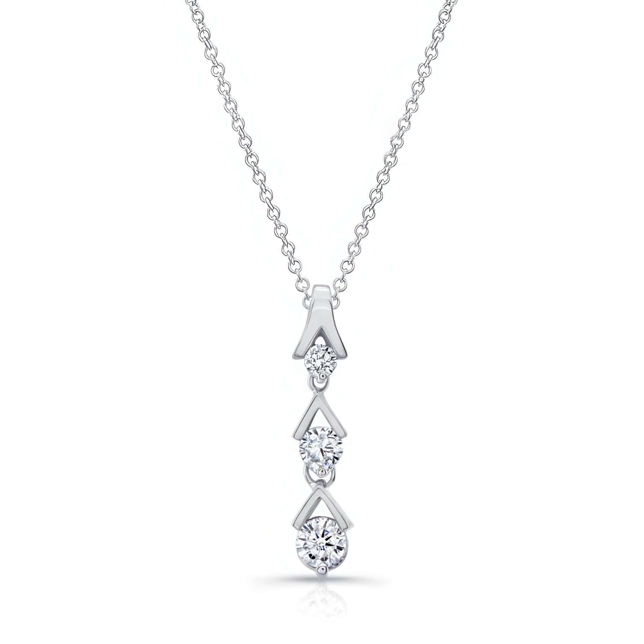 This lab diamond drop necklace features a drop design with 3 diamonds cascading in size.