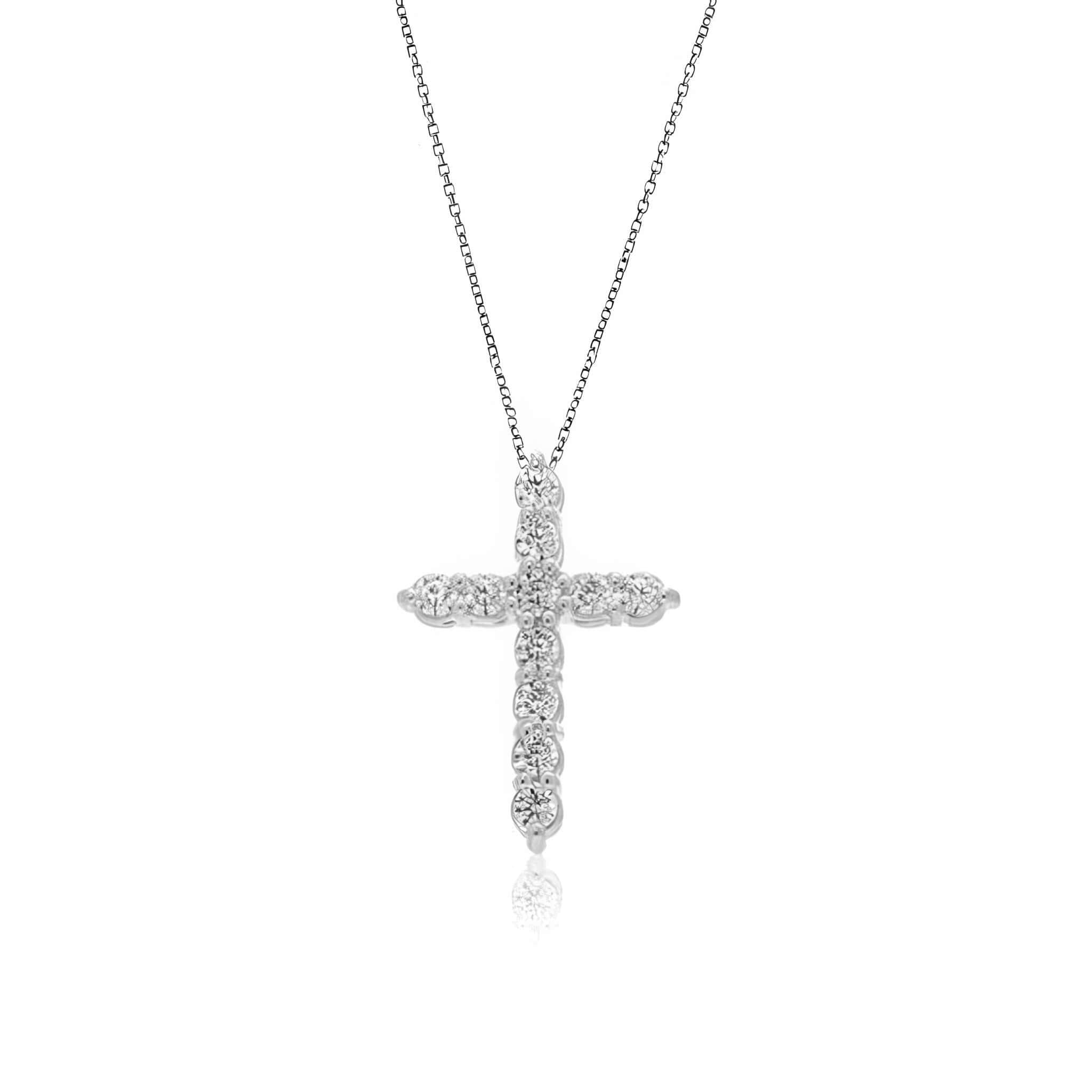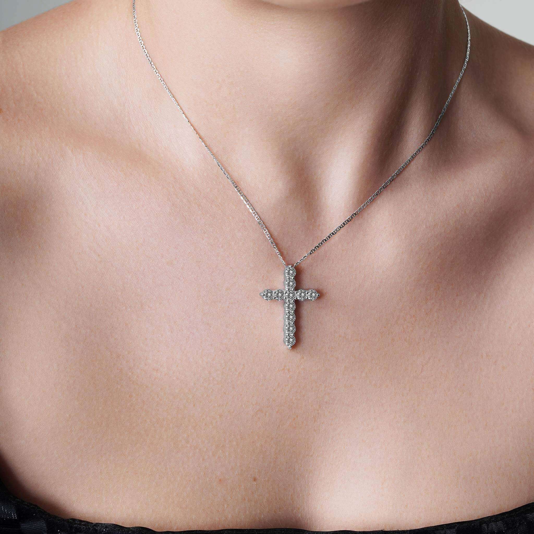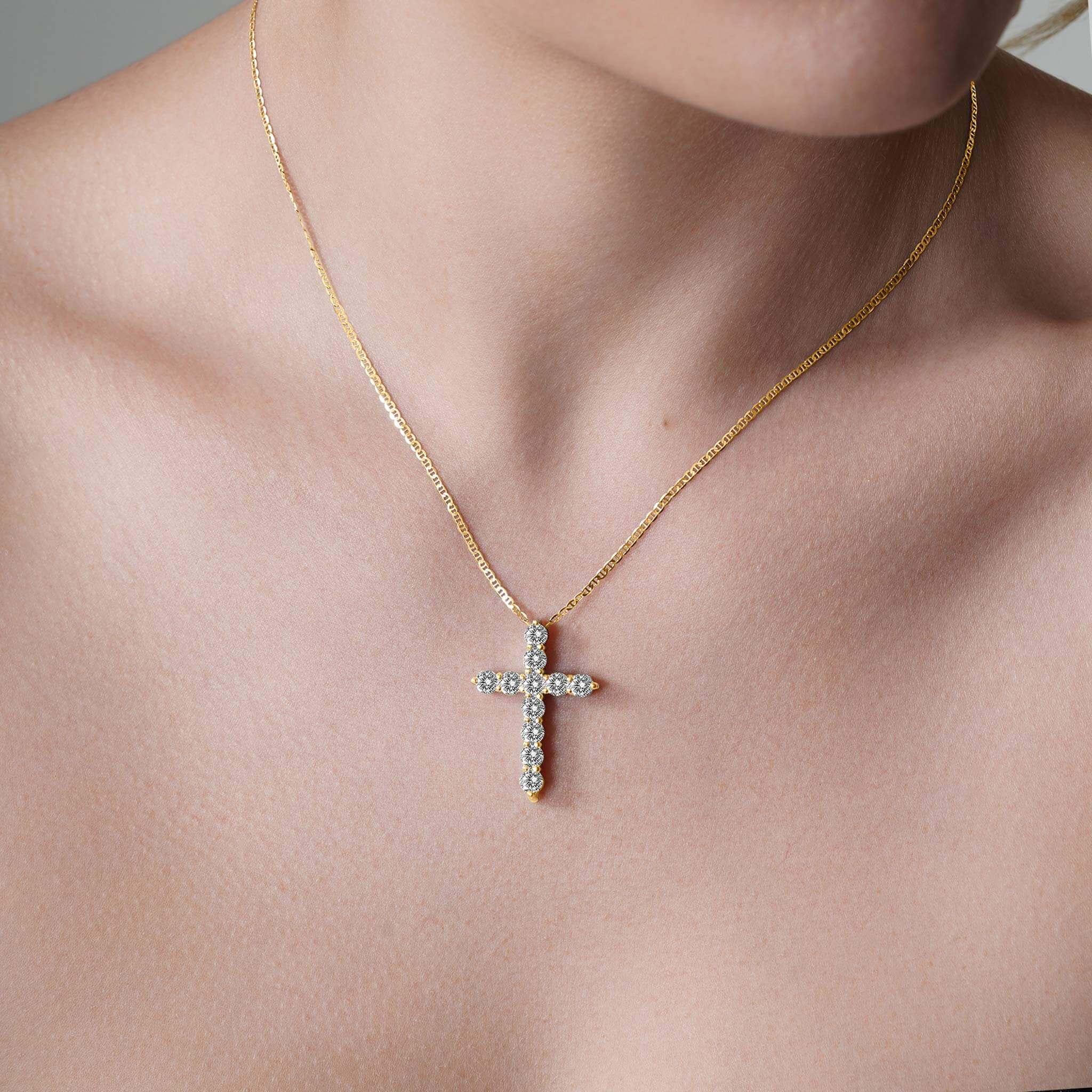 Embrace timeless elegance with our lab grown diamond cross pendant necklace, featuring 11 stunning lab diamonds that total 1.45 carats. Set in your choice of gold or platinum, this delicate yet striking piece offers a radiant sparkle, perfect for adding a touch of sophistication to any occasion.