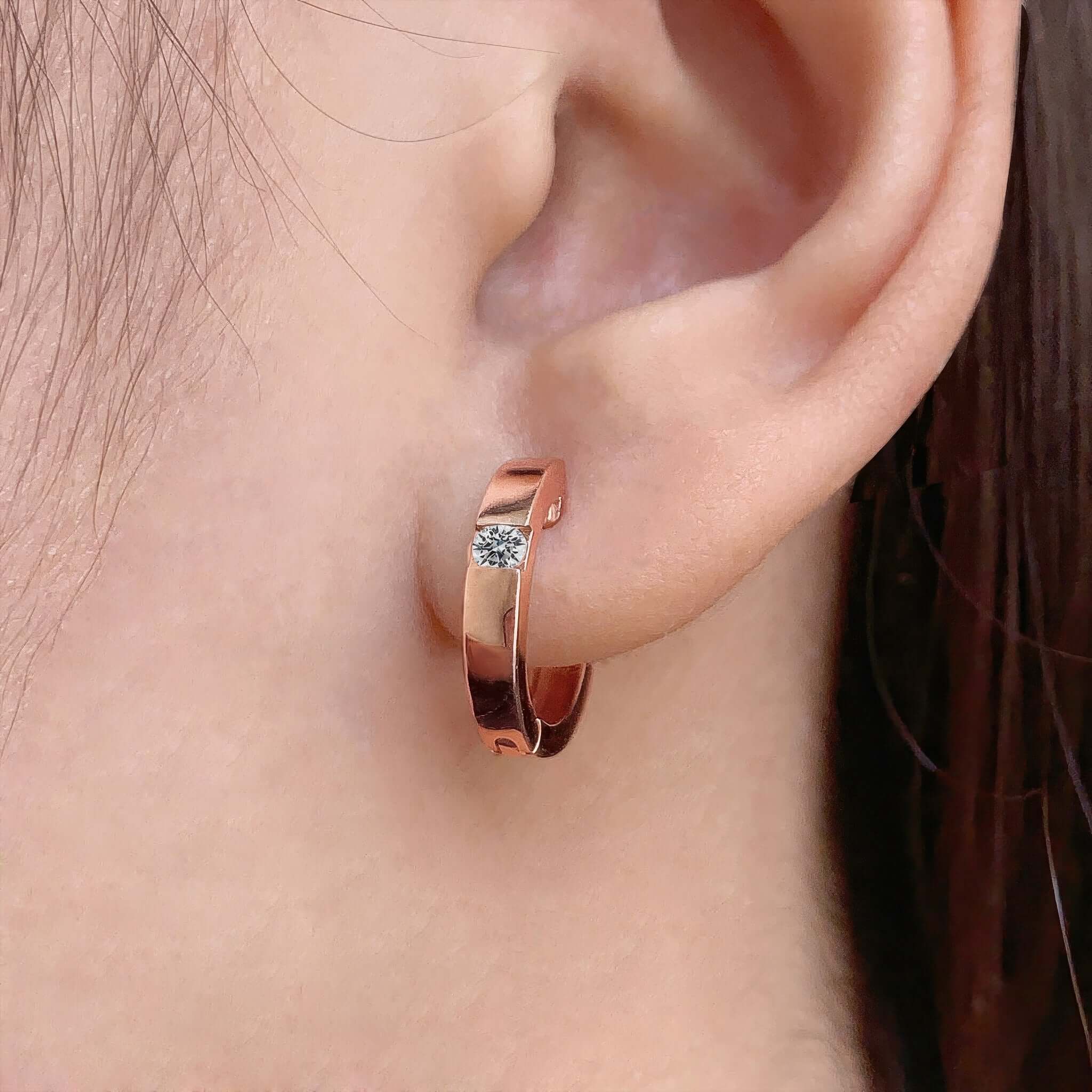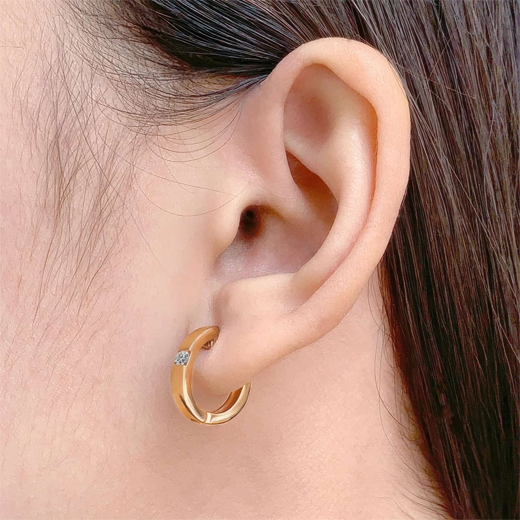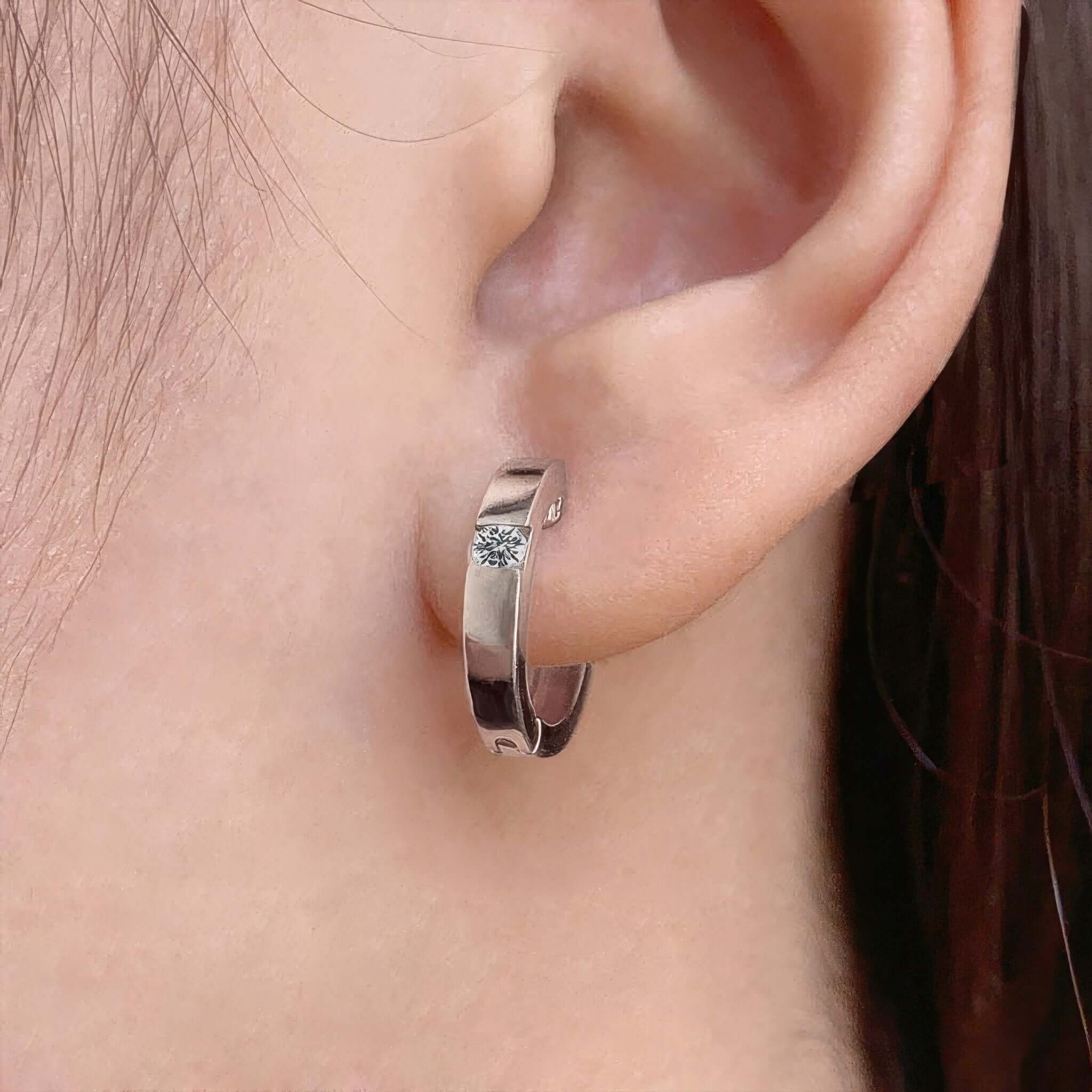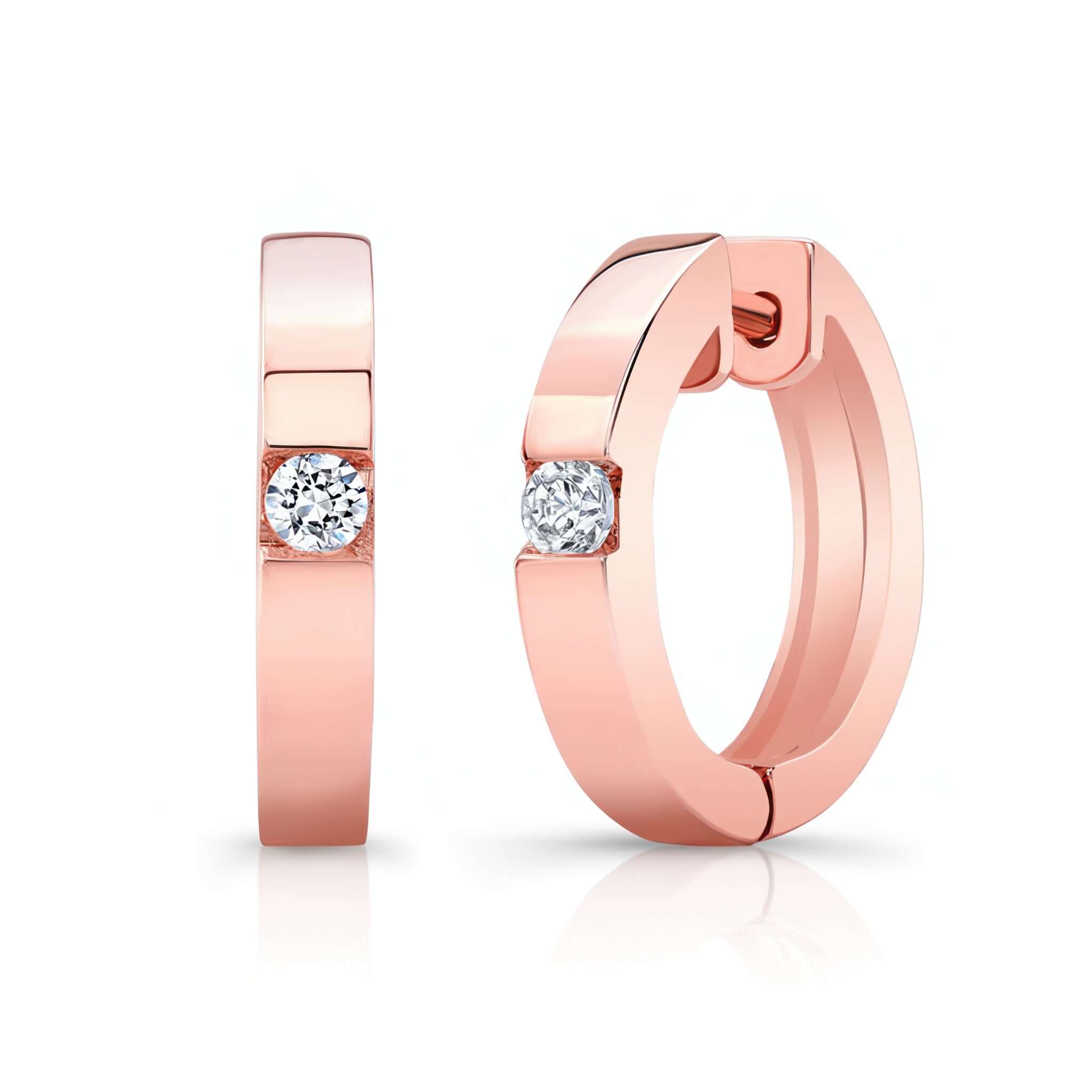 These single lab grown diamond hoop earrings feature modern clean lines with a round lab diamond channel set at the front of the earring. A secure hinged closure and brilliant polished finish make these hoops a great choice for everyday wear.
