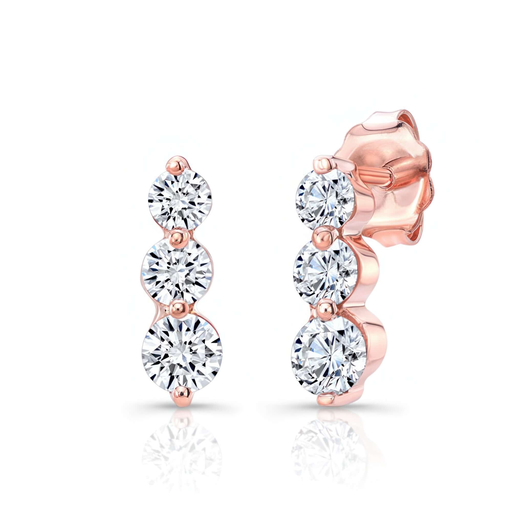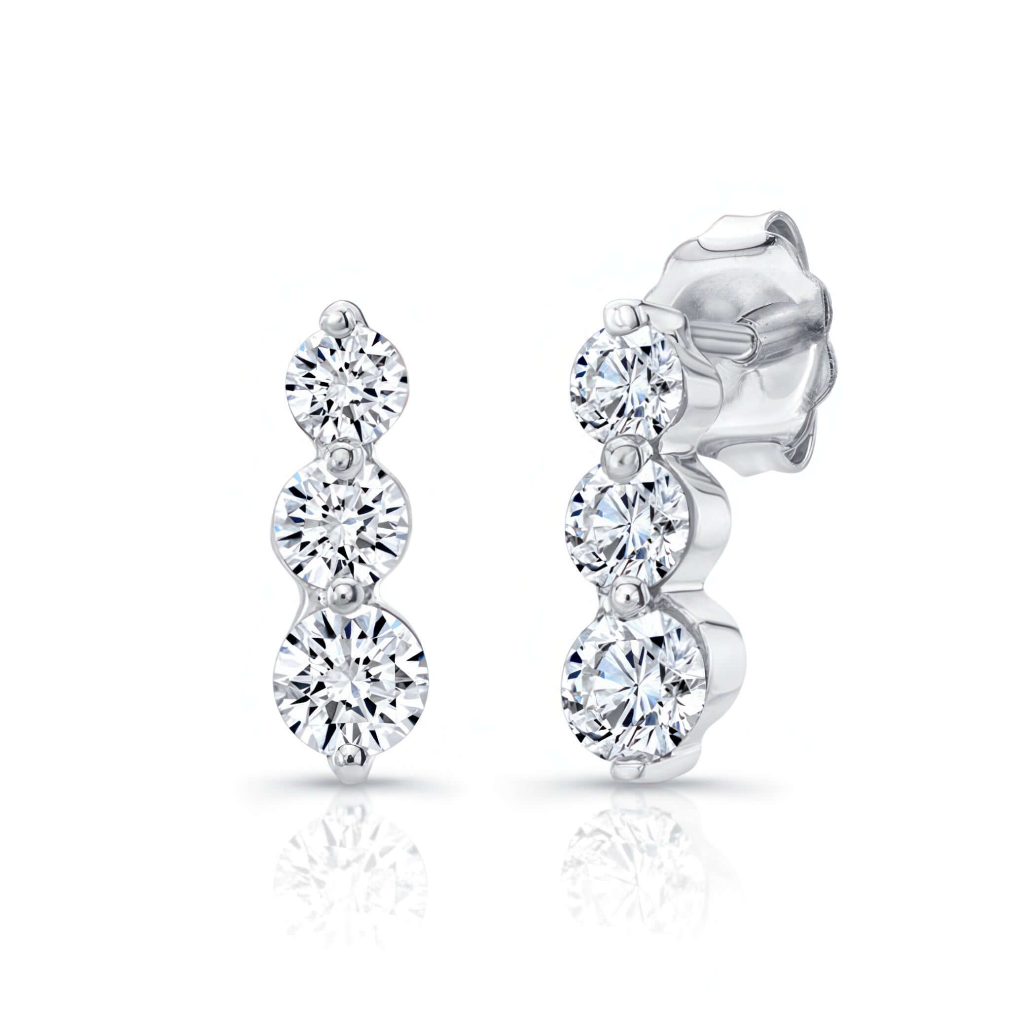 These small lab grown diamond journey earrings feature 3 lab diamonds on each side that elegantly cascade and taper down the earring.