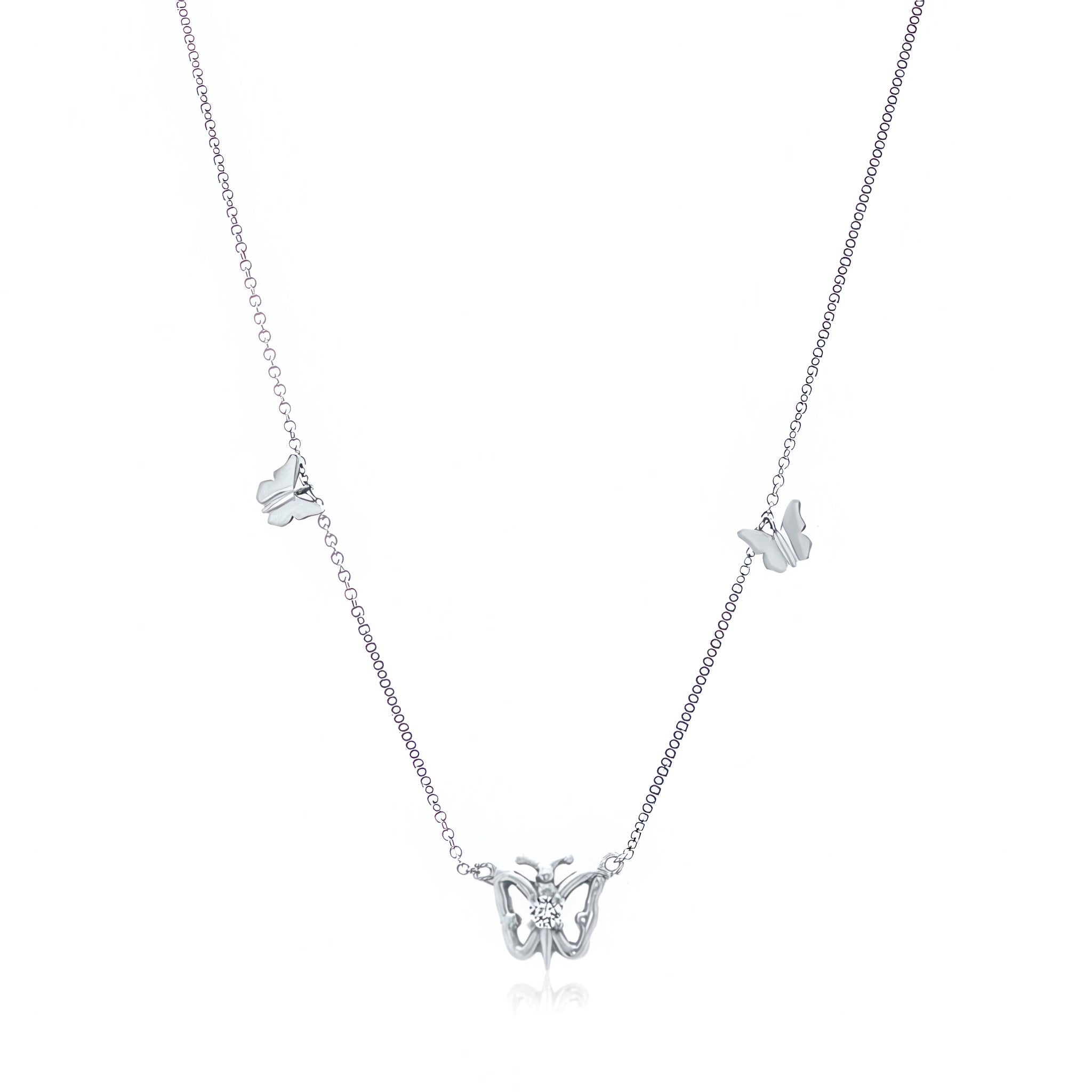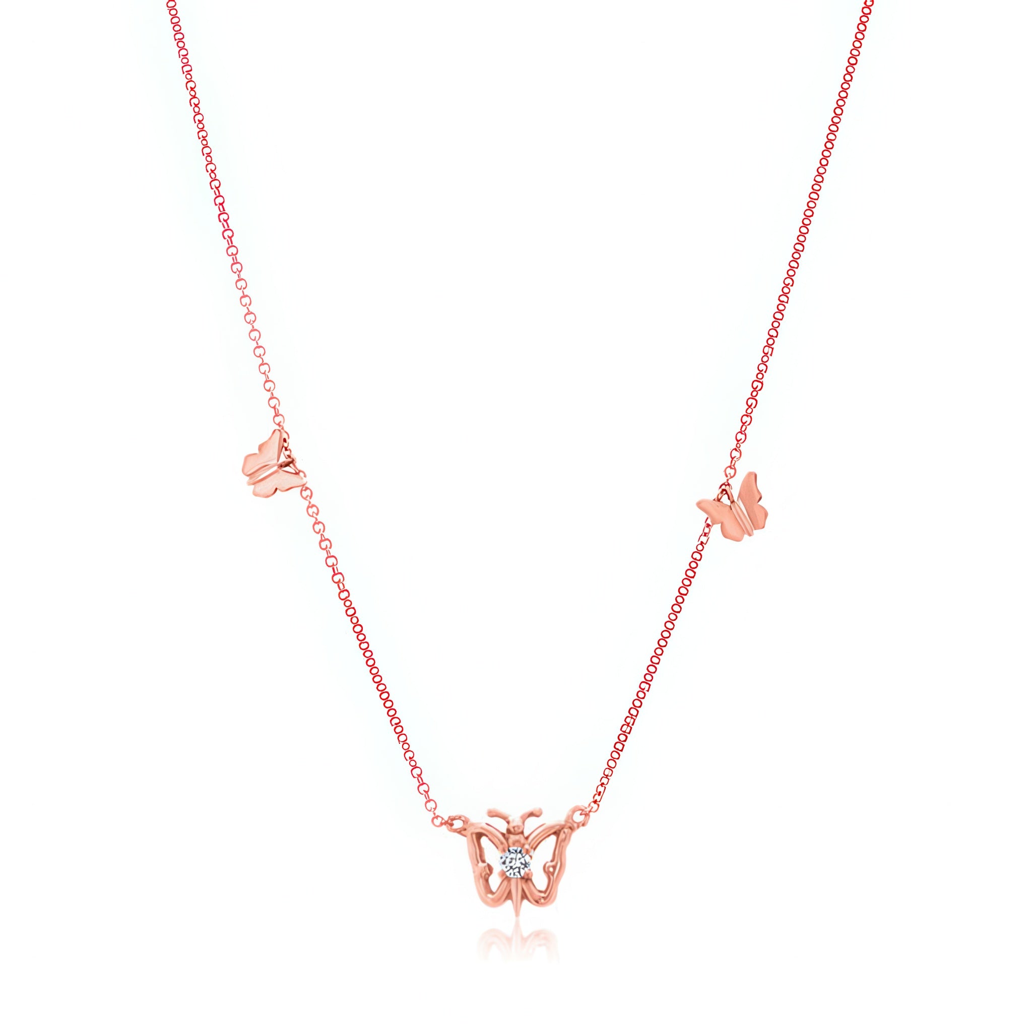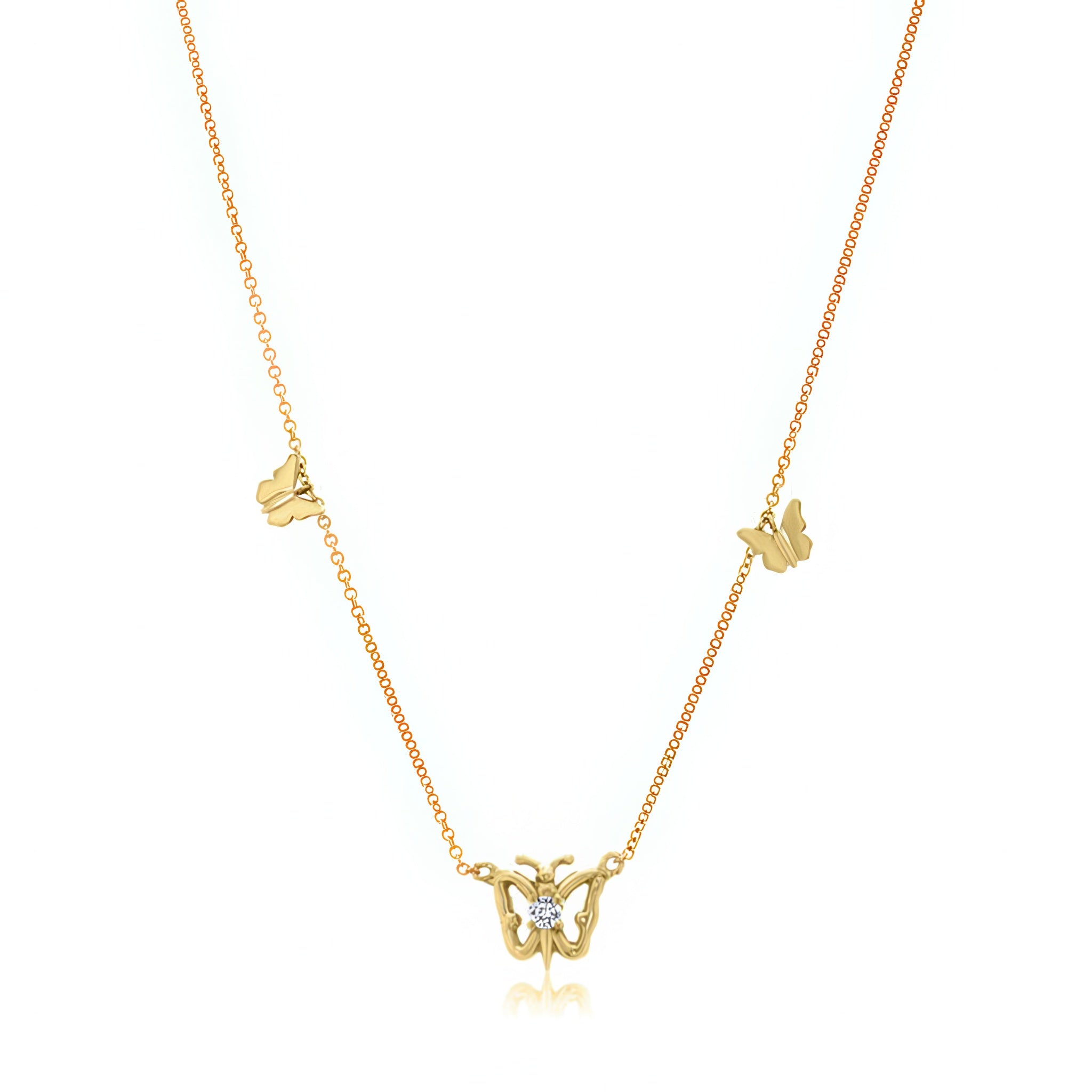 This minimal lab diamond butterfly necklace features three elegant butterflies along with a small lab diamond adorning the middle butterfly for a beautiful finish.