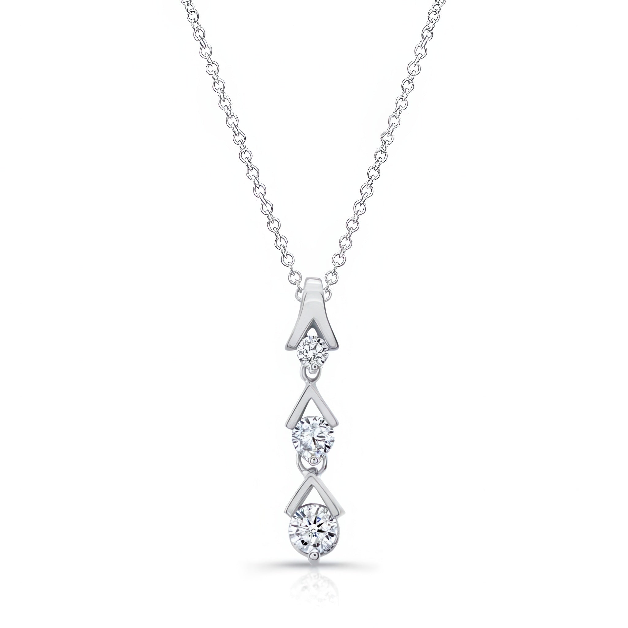 This lab diamond drop necklace features a drop design with 3 diamonds cascading in size.