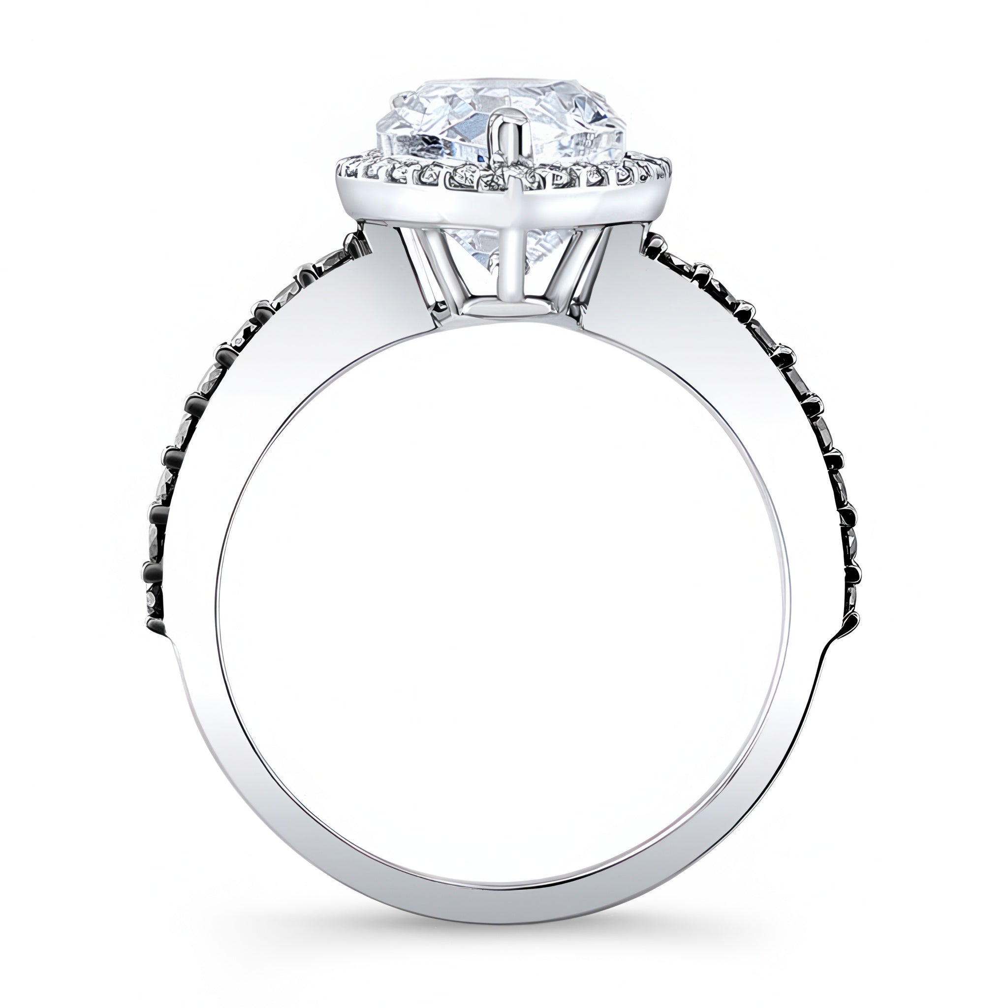 Pear Shaped Lab Grown Diamond Ring With Black Diamonds
