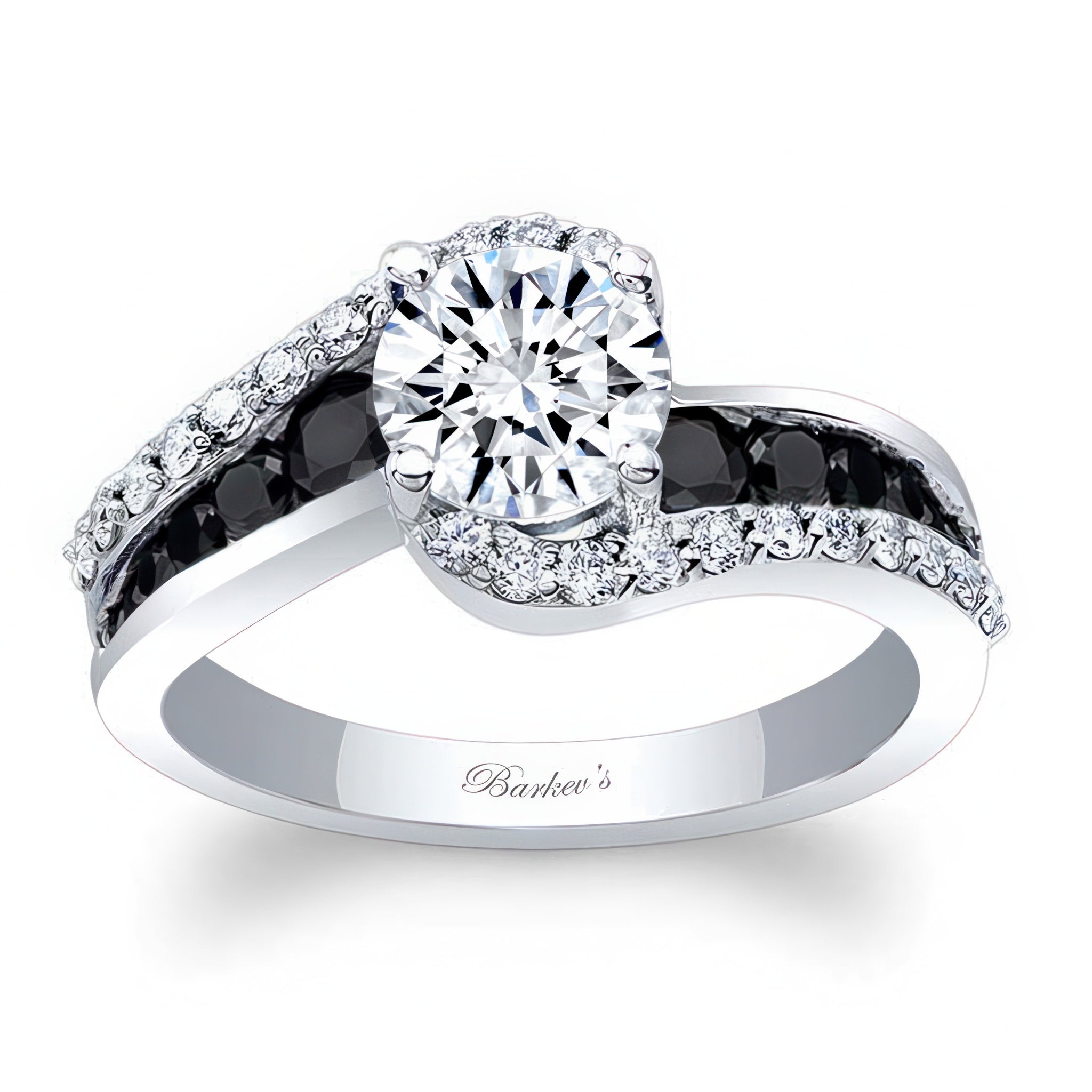 1 Carat Round Cut Lab Diamond Ring With Black Diamond Accents