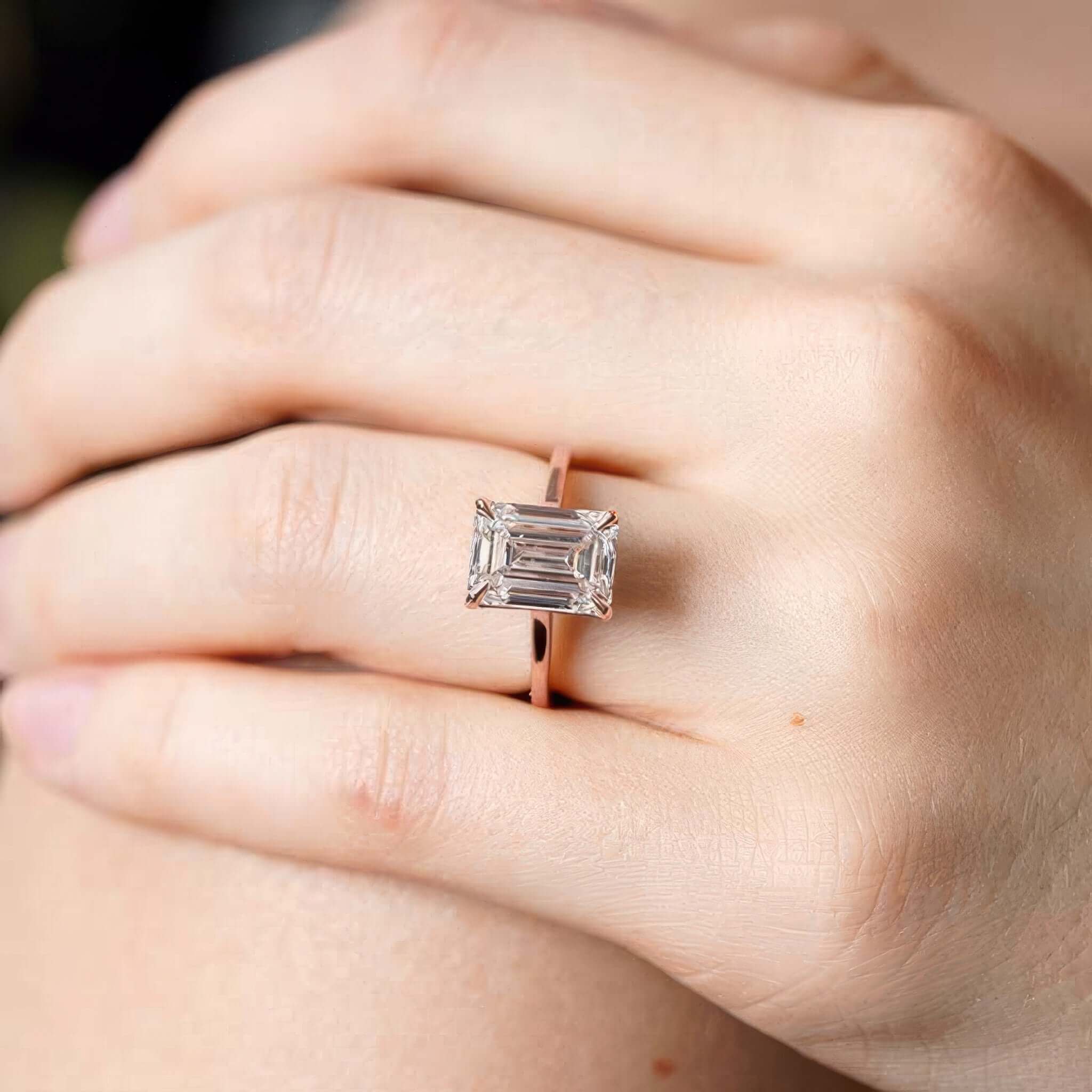 2 Carat Emerald Cut Lab Diamond Solitaire Engagement Ring