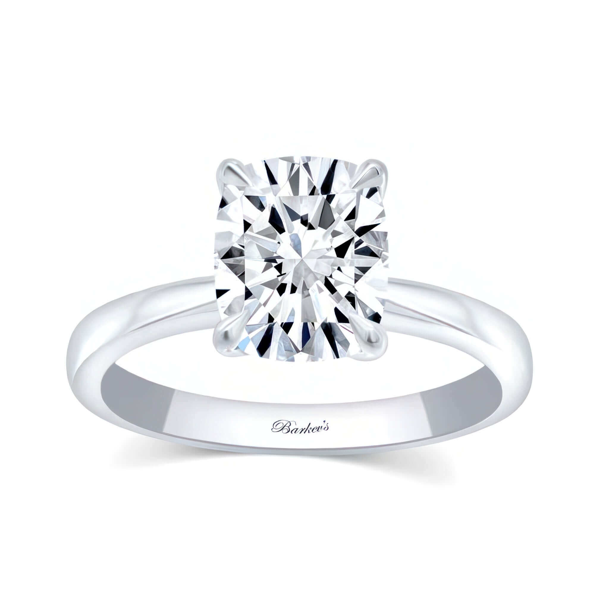 A simple 3 carat elongated cushion lab grown diamond solitaire ring featuring a prong set cushion cut center with a plain shank for a minimalistic elegant look.
