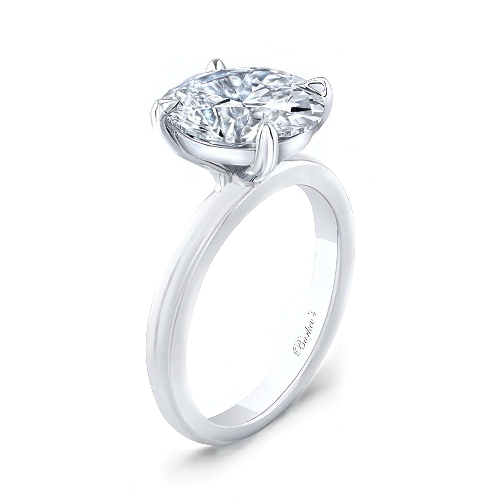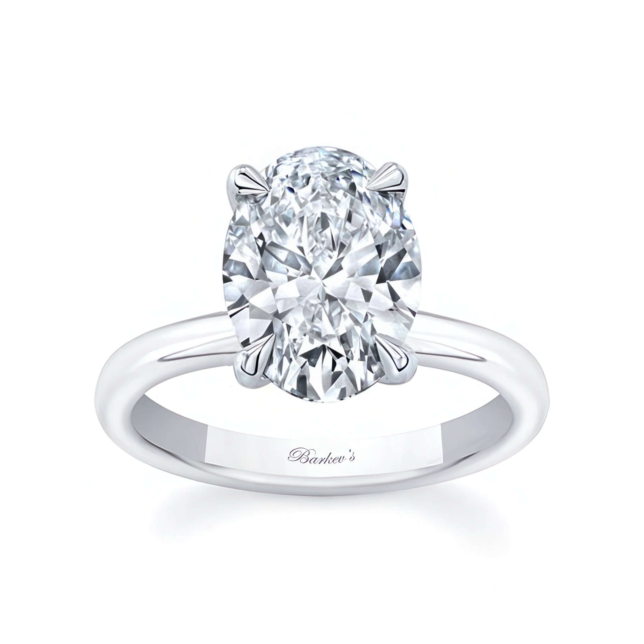 A 3 carat oval lab diamond solitaire engagement ring featuring a prong set oval center with a simple and elegant solitaire design.