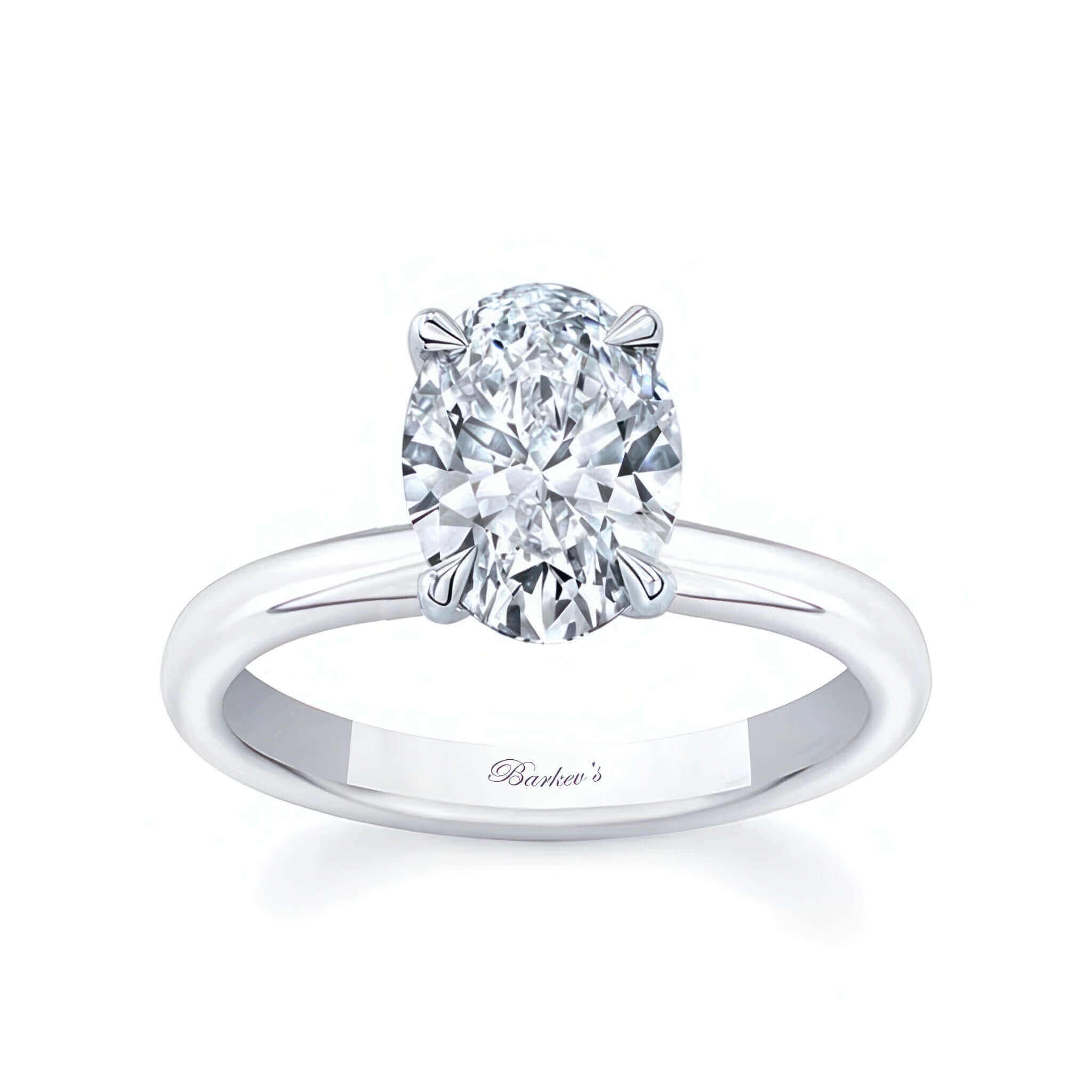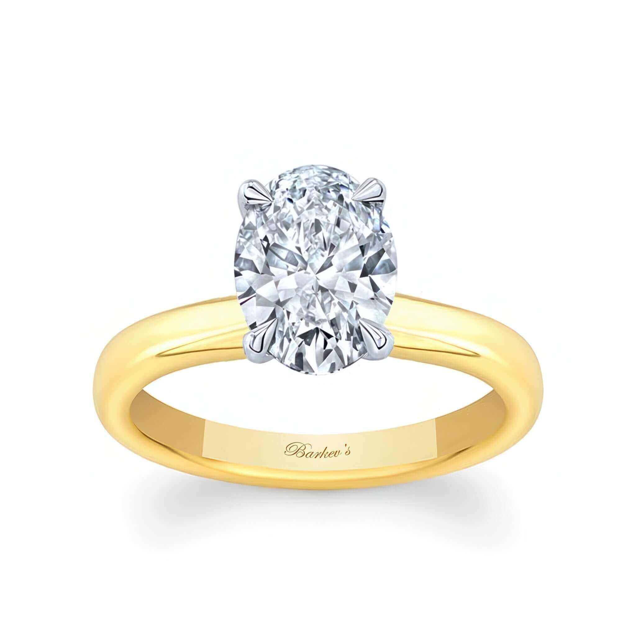 An oval lab diamond solitaire engagement ring featuring a prong set oval center with a simple and elegant solitaire design.