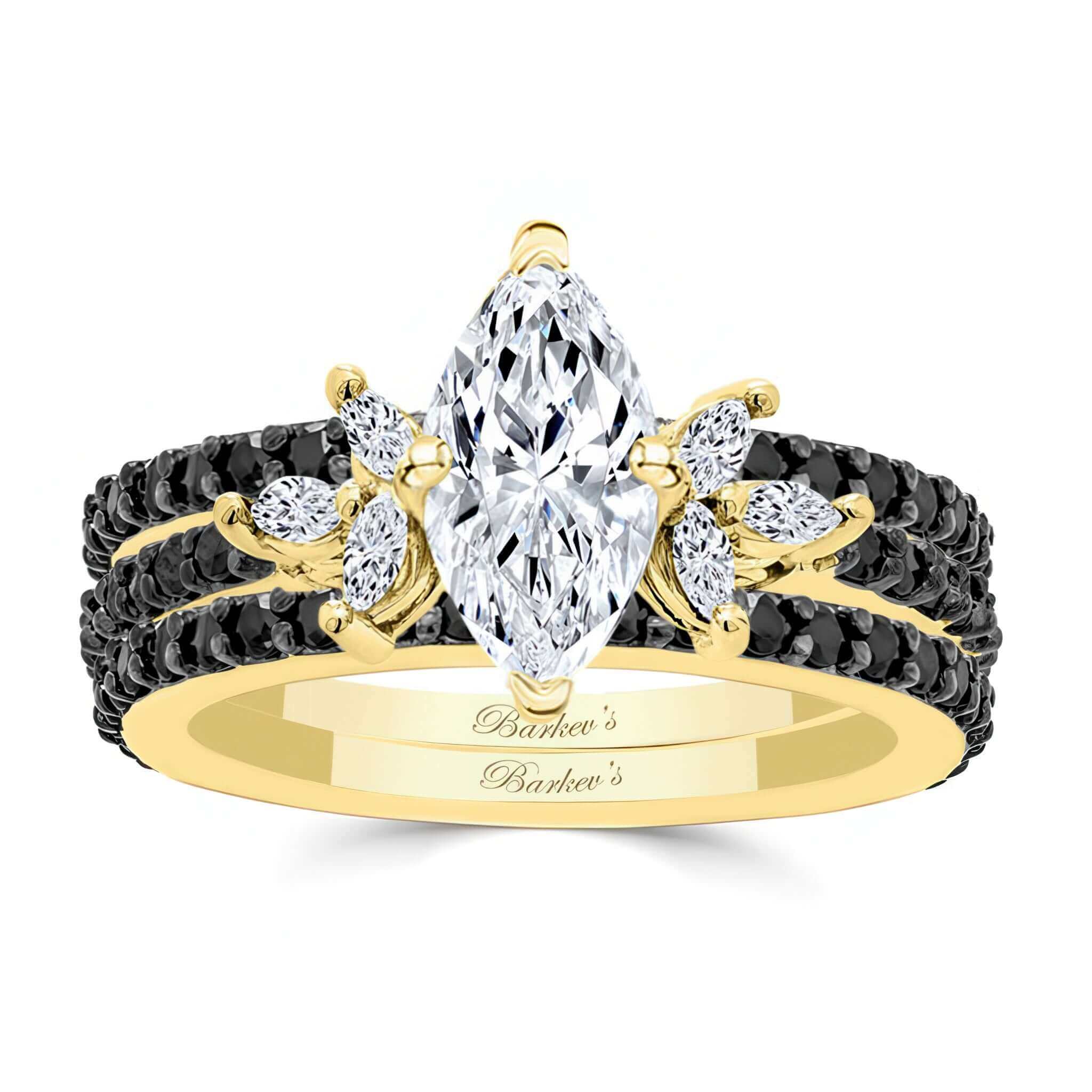 Marquise Cut Moissanite Bridal Set With 2 Bands And Black Diamonds