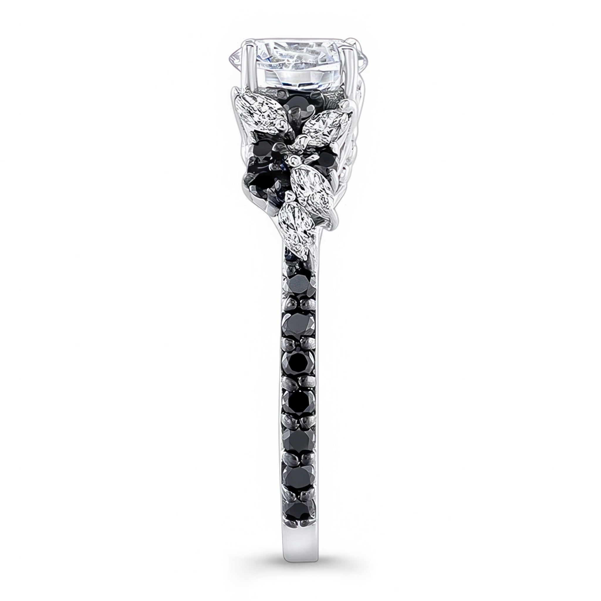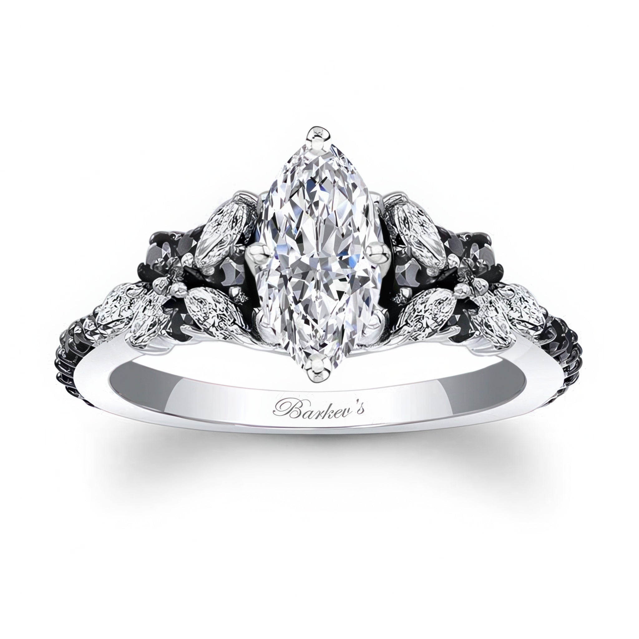 Marquise Vintage Moissanite Ring With Black Diamonds
