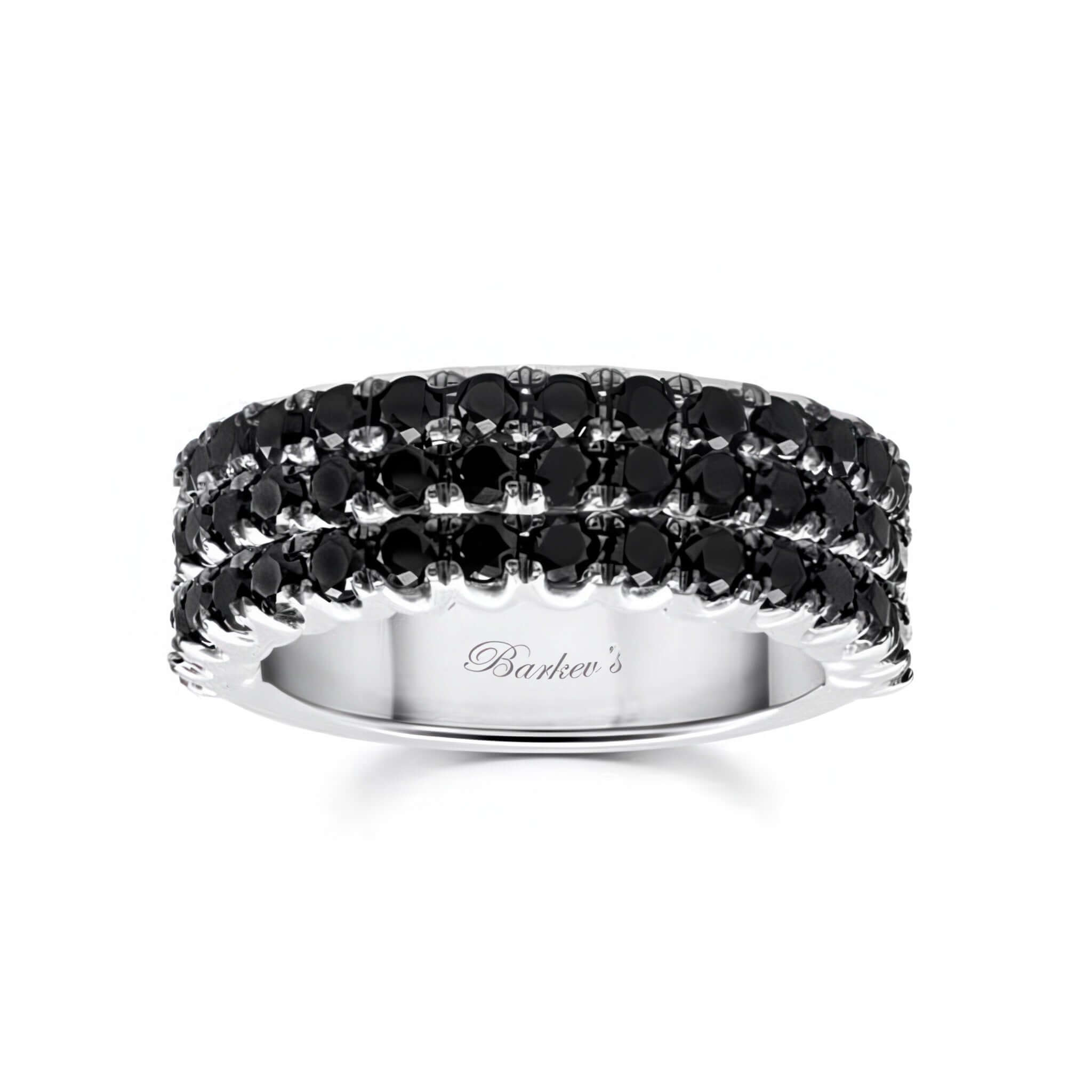 This men's wide three row black diamond wedding band features rows of shared prong set black diamonds that provide sparkle and is sure to catch the eye of many admirers.