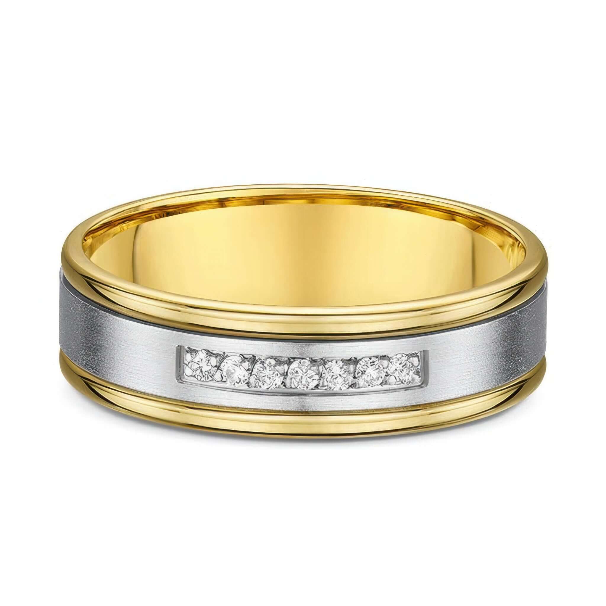 Unique Men's Two Tone Princess Cut Diamond Wedding Band