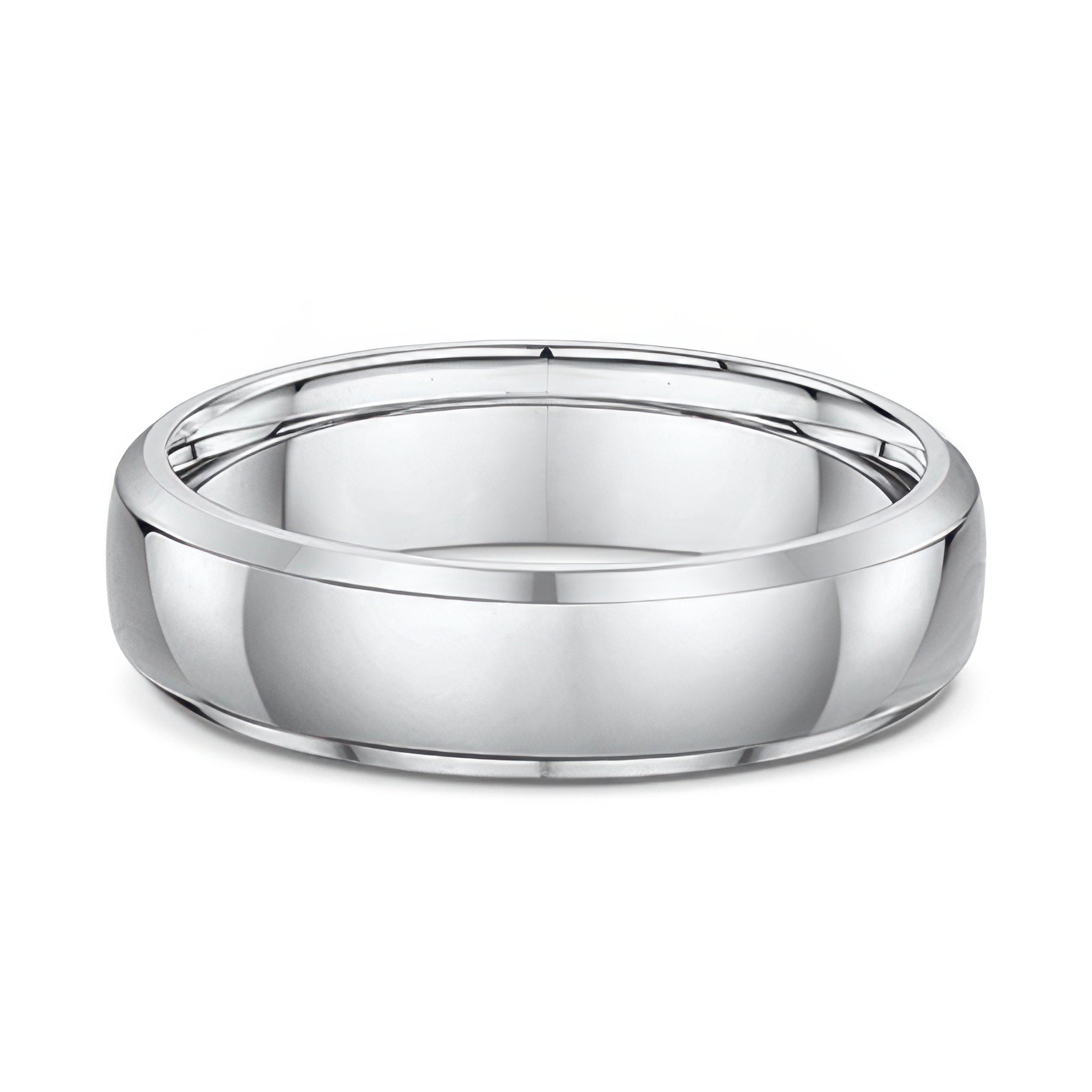 Crafted from premium platinum, this men's 6mm domed wedding band features a refined beveled edge for a modern yet timeless look. Its durable design ensures lasting wear, while the smooth dome shape offers comfortable all-day fit. Ideal for men seeking understated elegance combined with expert craftsmanship.