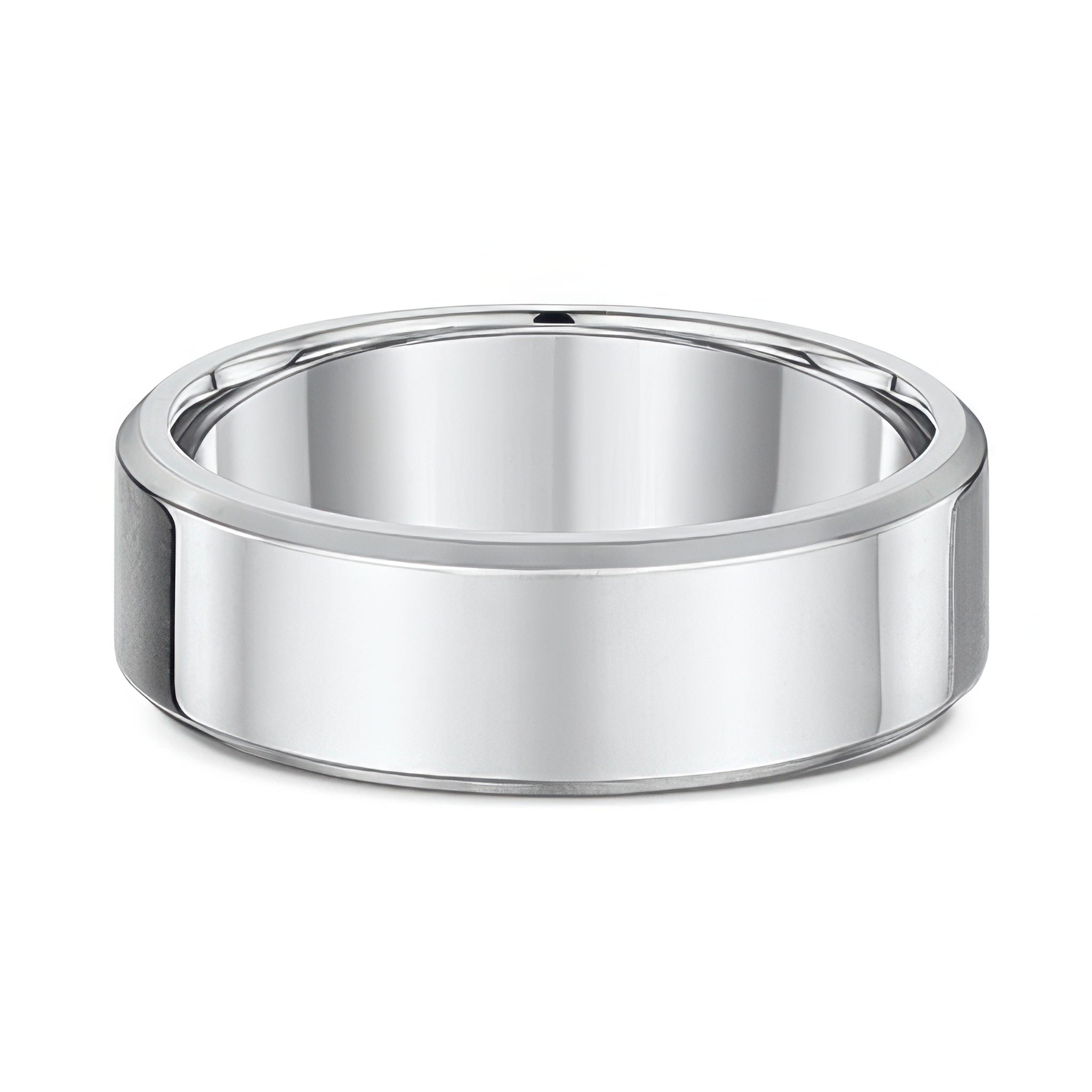 This 7mm simple beveled platinum wedding band is crafted for men seeking timeless elegance and durability. The beveled edges add refined detail without compromising comfort. Made from platinum, this band ensures lasting strength and resistance to tarnish, making it an ideal choice for daily wear. Perfect for those who value understated sophistication combined with expert craftsmanship.
