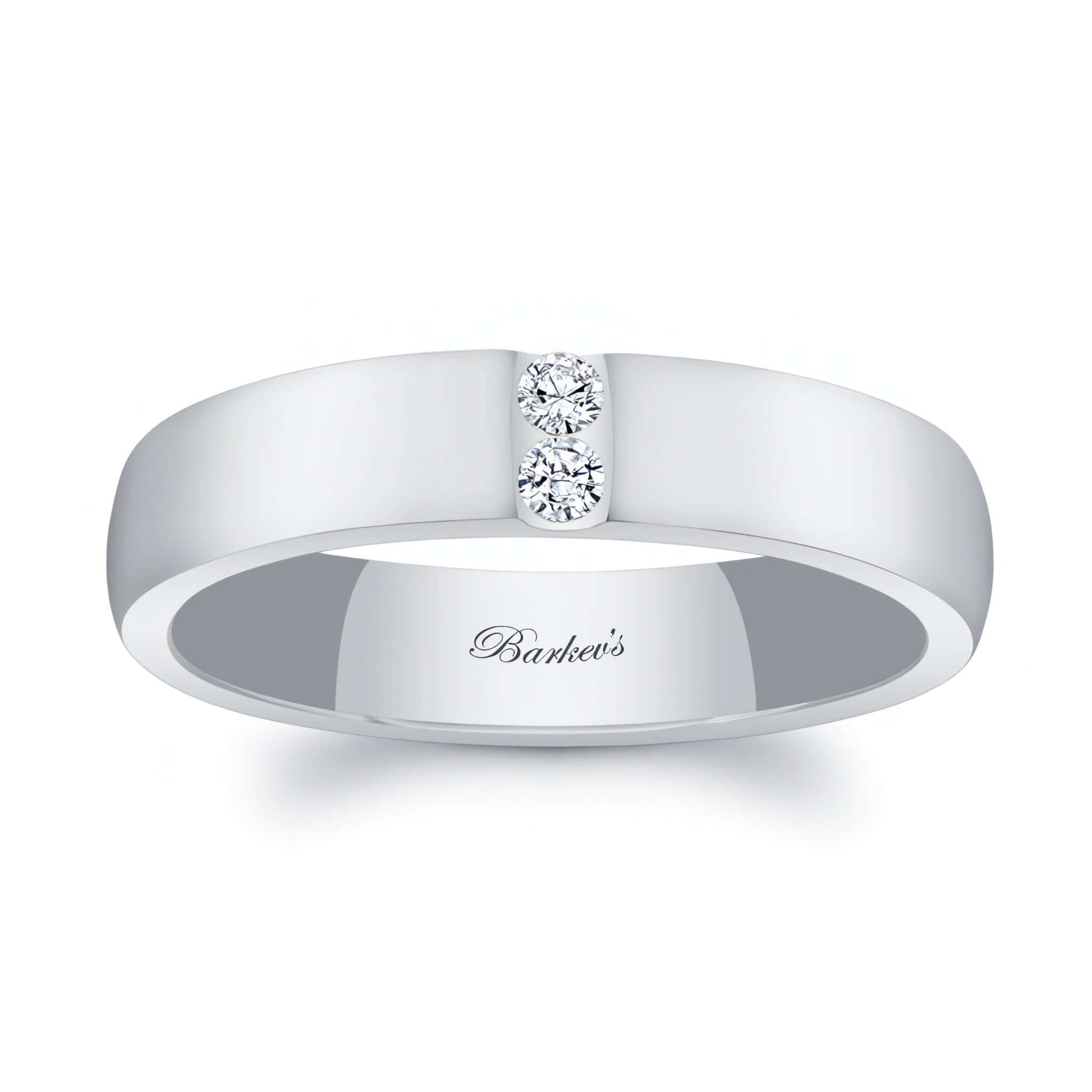 This mens 5mm 2 diamond band features 2 channel set round diamonds sitting on a polished band.