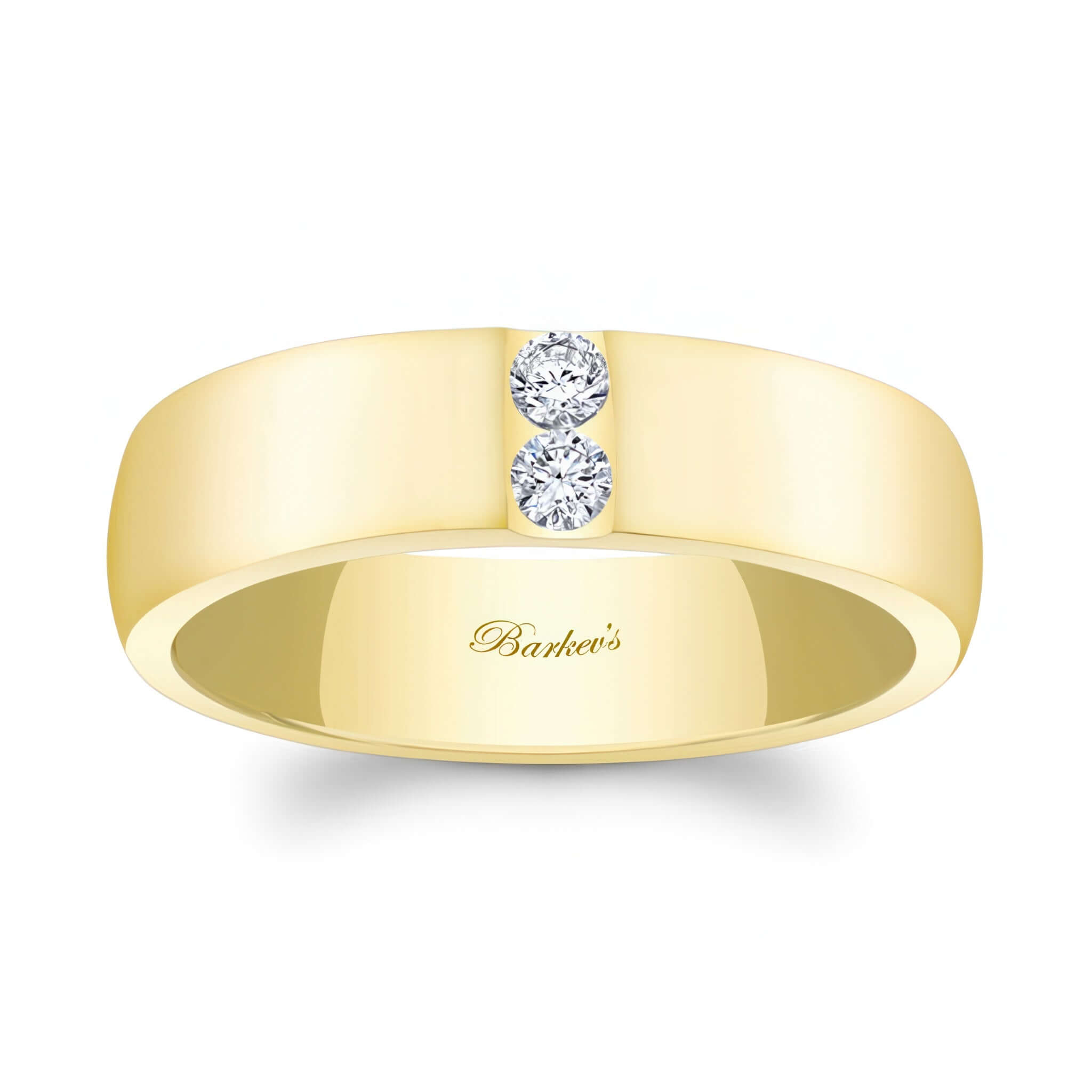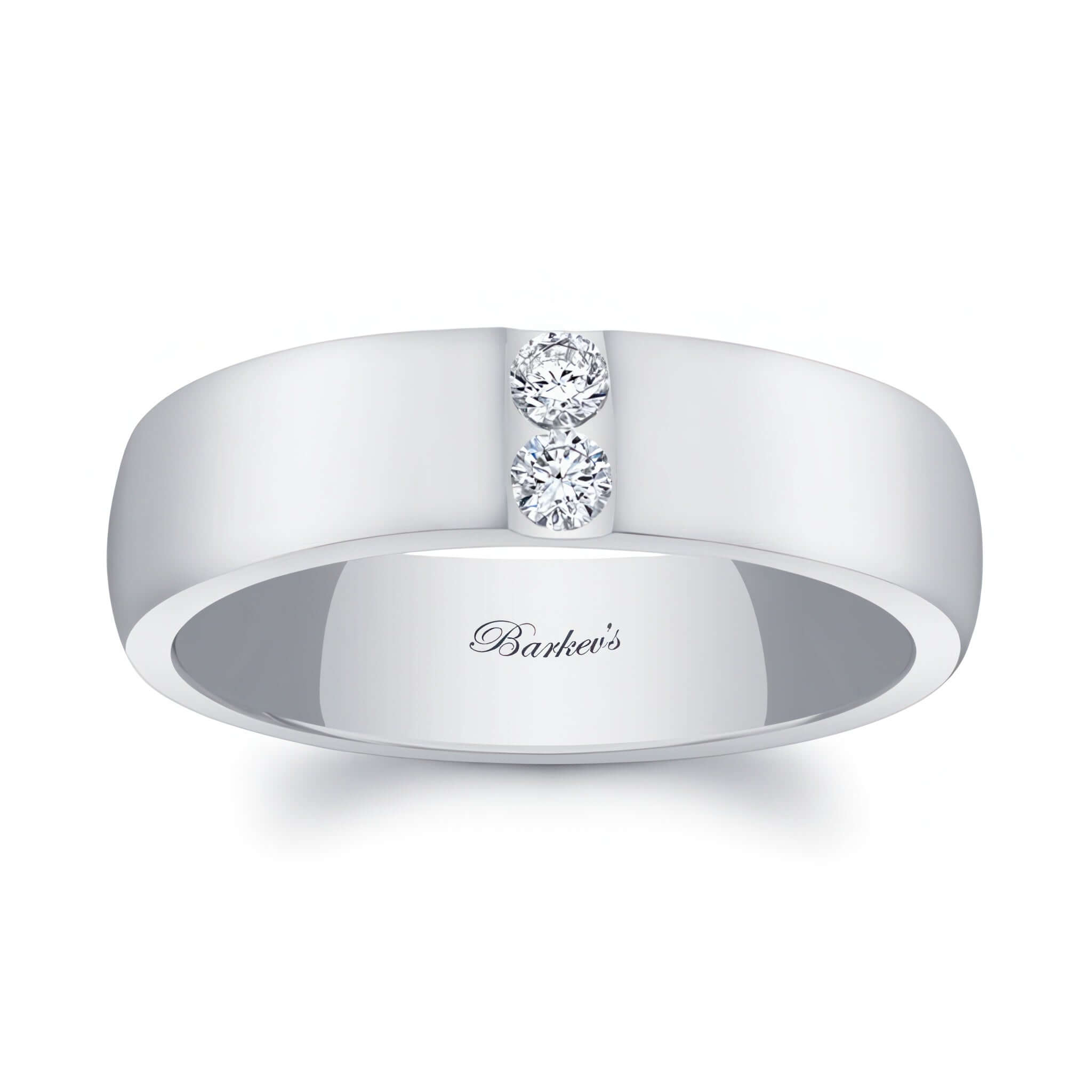 This mens 6mm 2 diamond band features 2 channel set round diamonds sitting on a polished band.