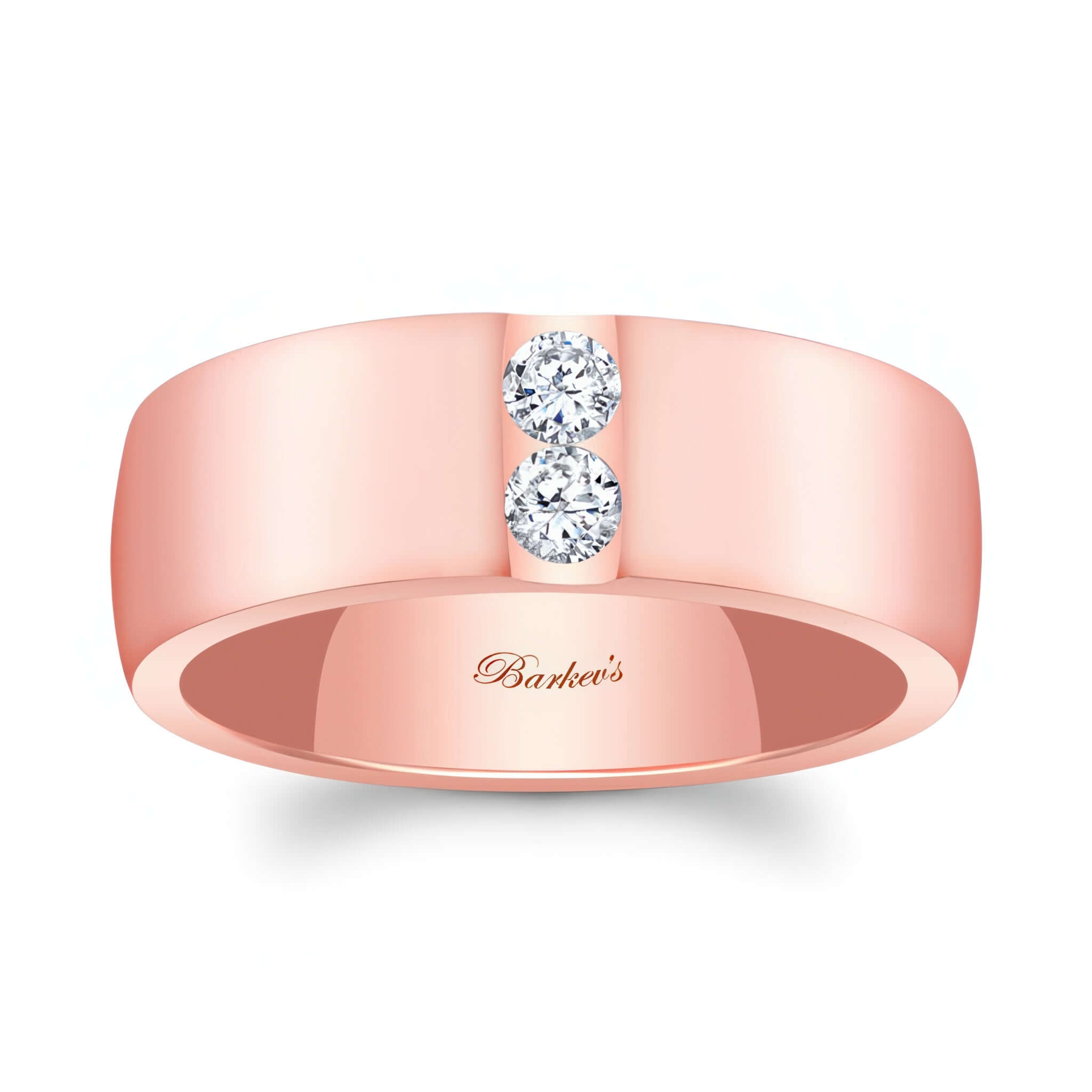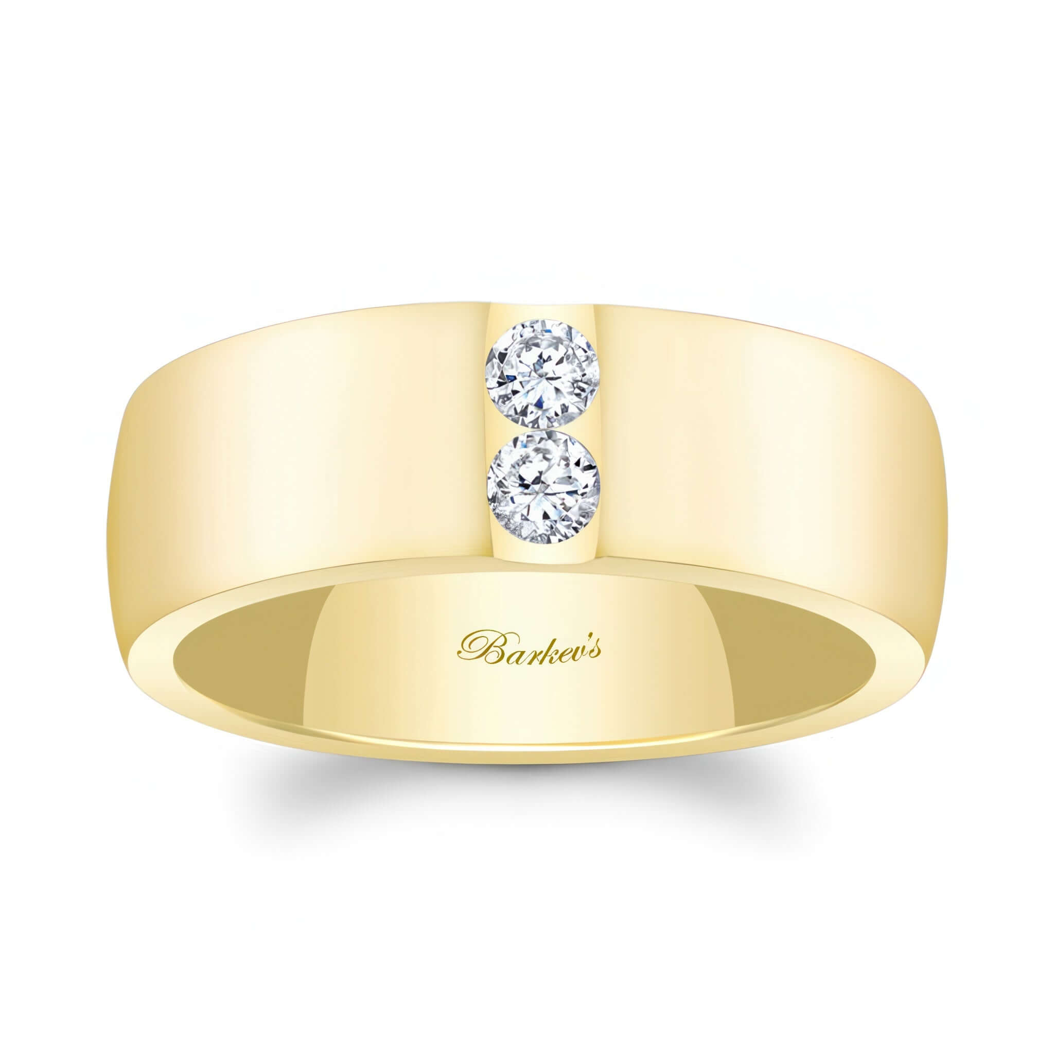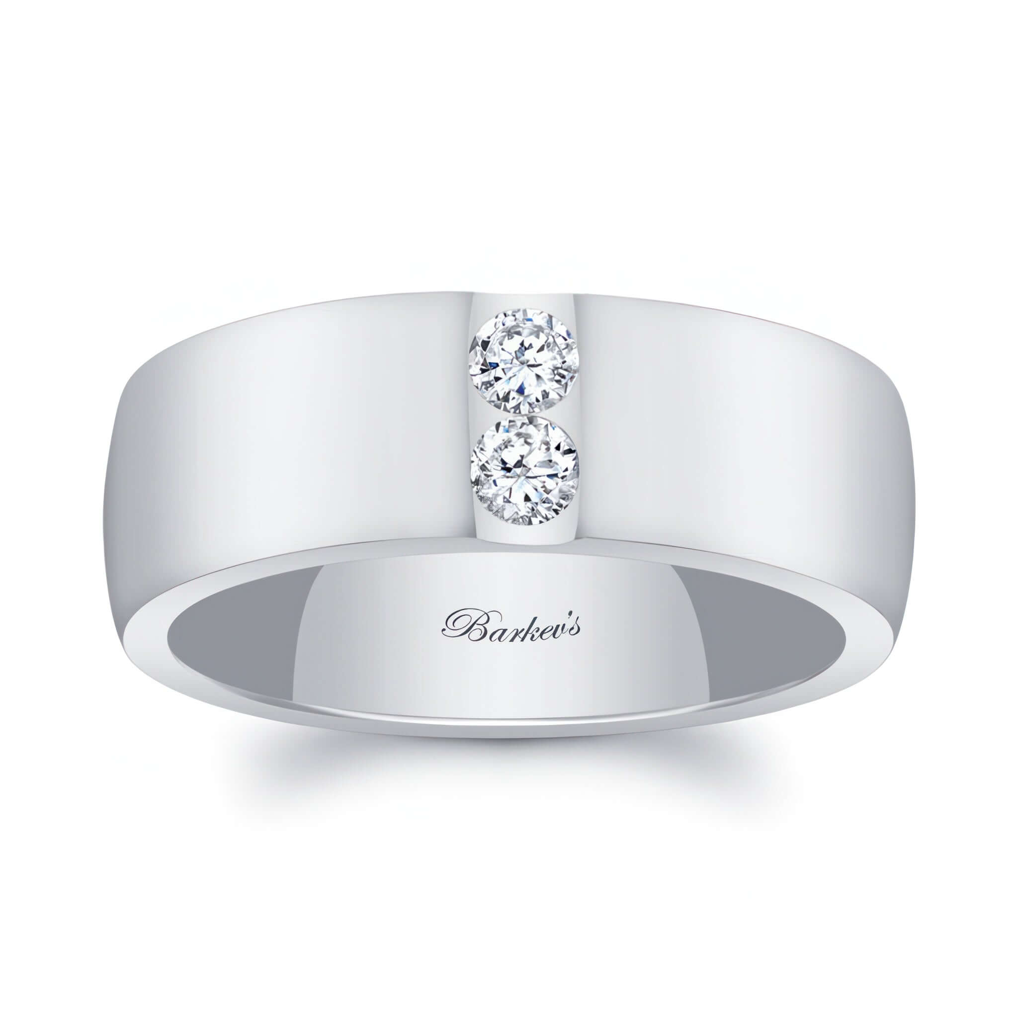 This mens 8mm 2 diamond band features 2 channel set round diamonds sitting on a polished band.