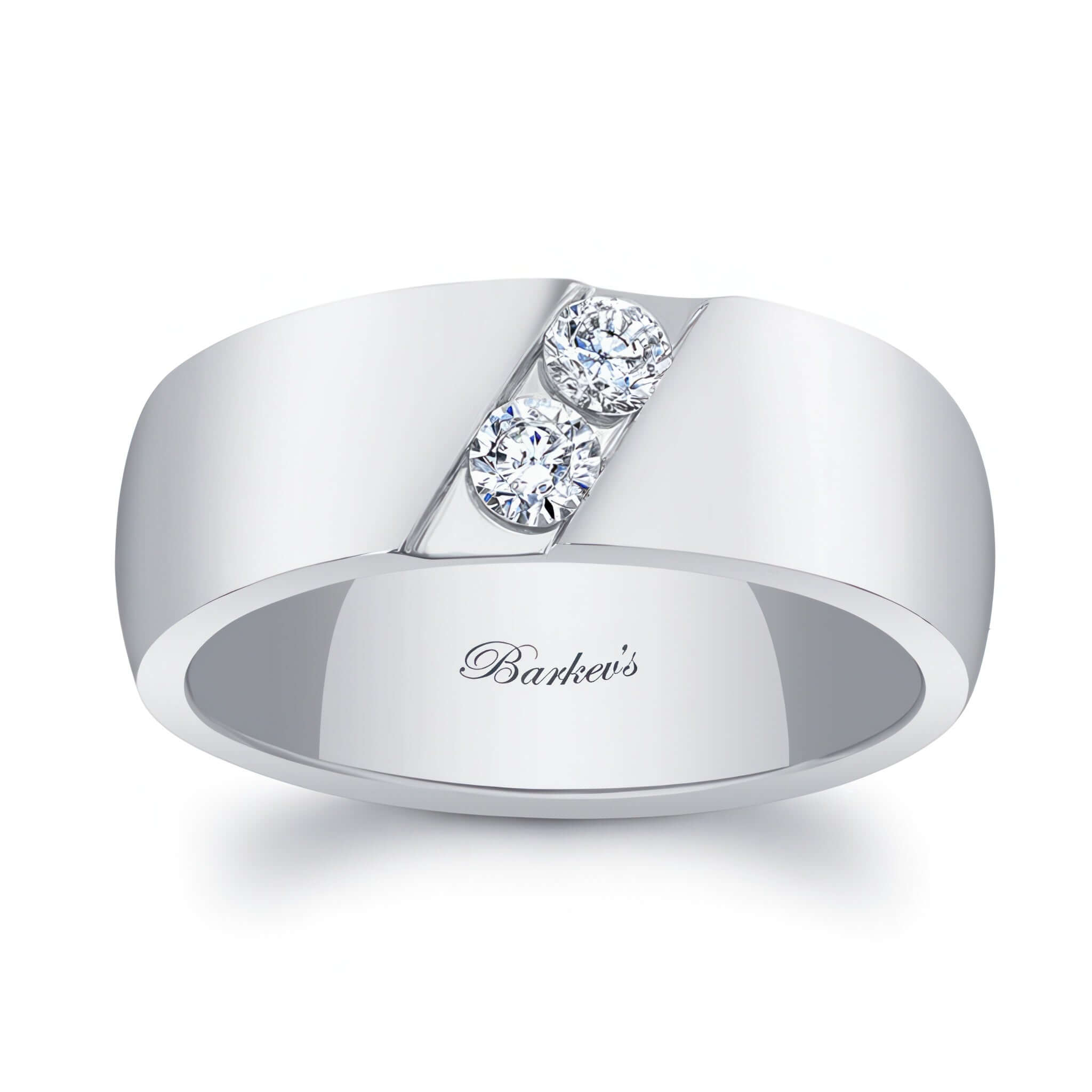 This mens 8mm diagonal 2 diamond band features 2 channel set diamonds sitting diagonally on a polished band.