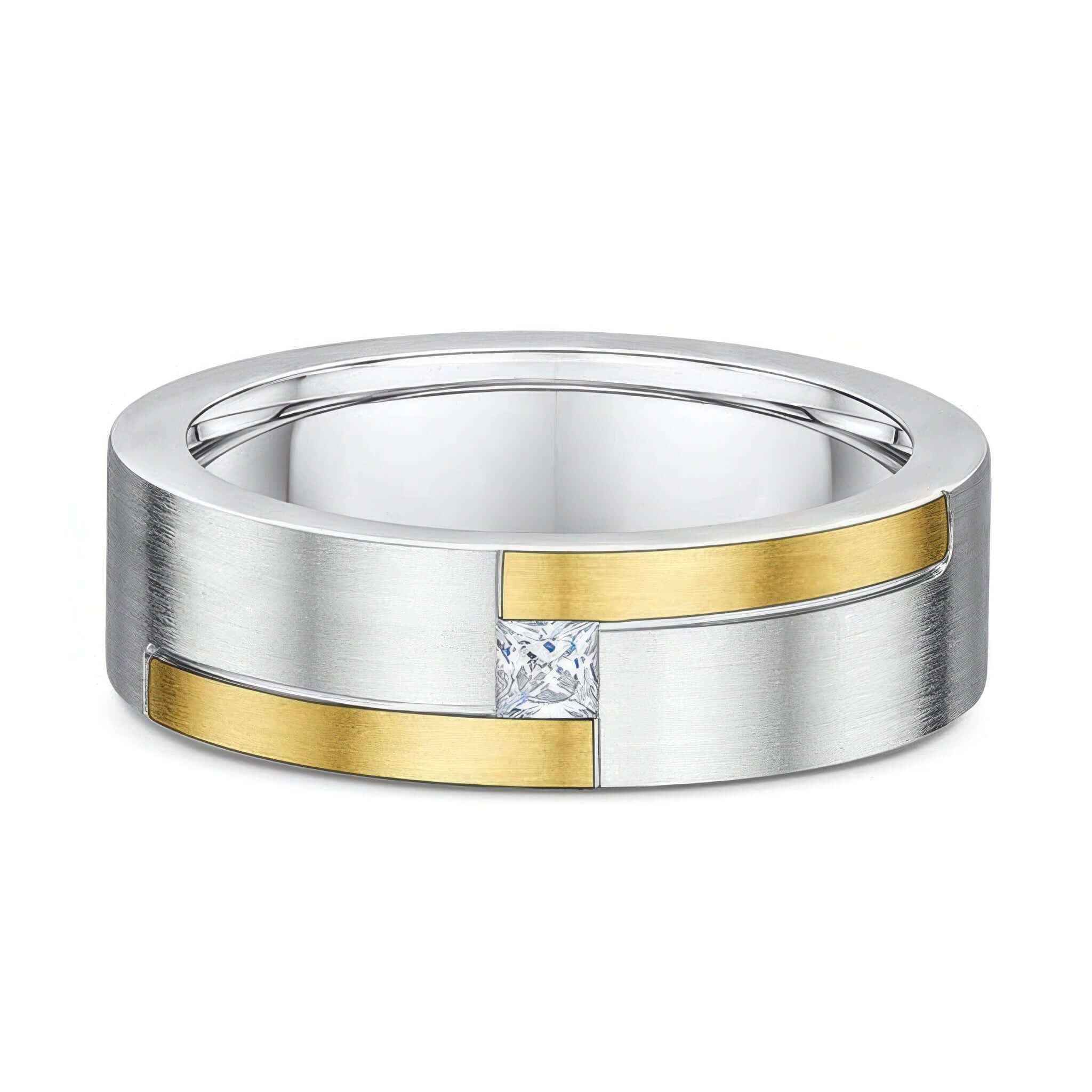 Unique Men's Two Tone Princess Cut Diamond Wedding Band