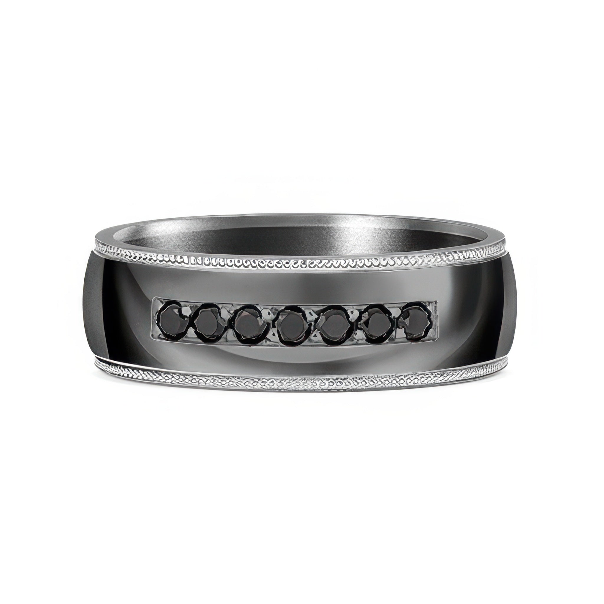7mm Milgrain Edge Black Diamond And Tantalum Wedding Band
