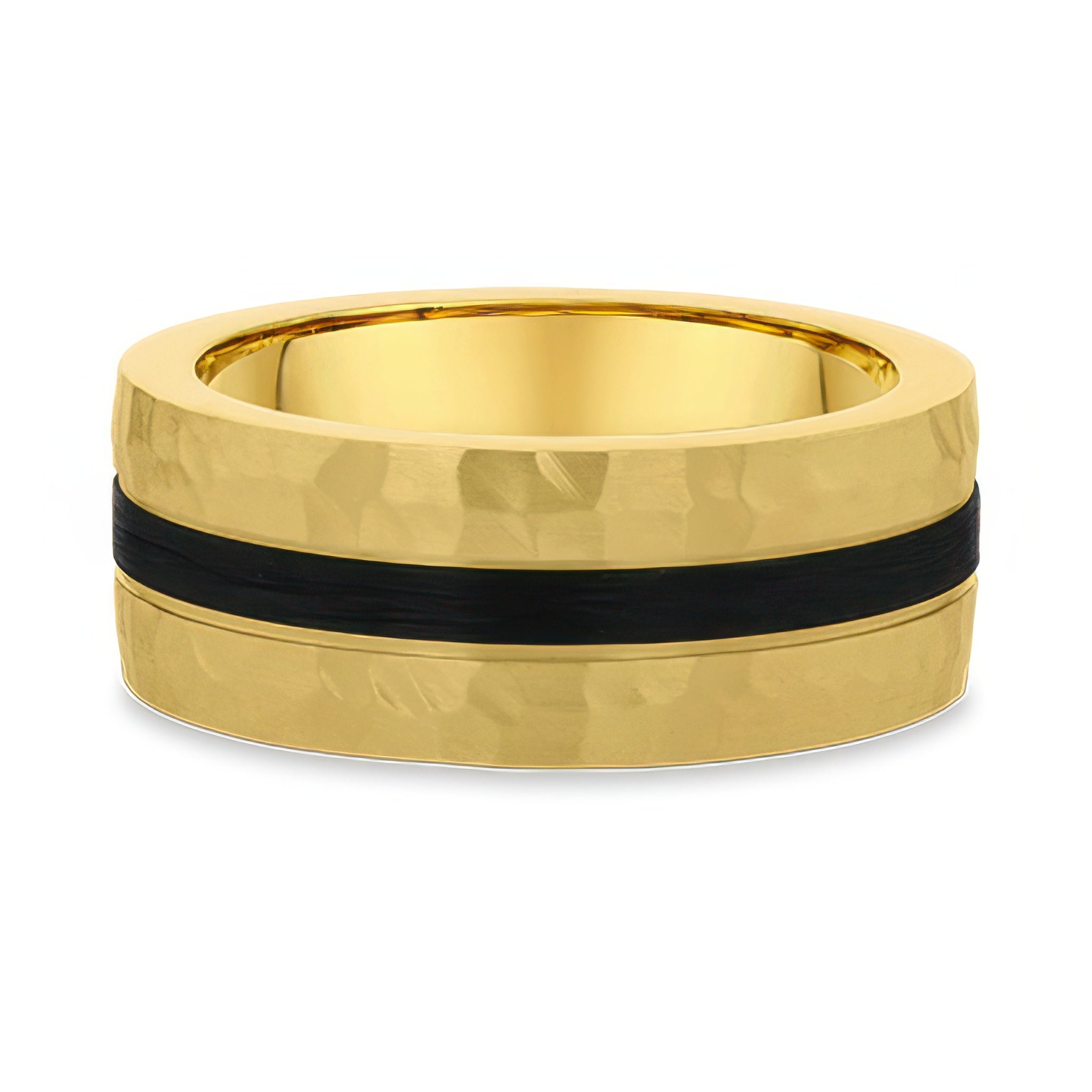 8mm Yellow Gold Hammered Ring with Carbon Fiber Inlay