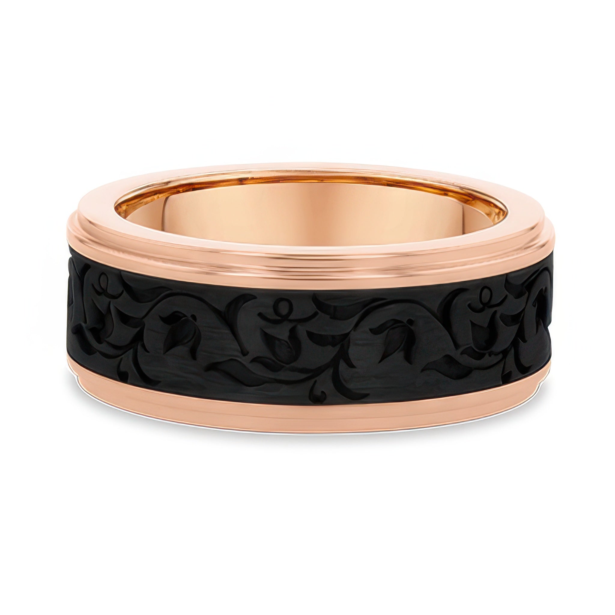 Rose Gold and Carbon Fiber Vine Men’s Wedding Band