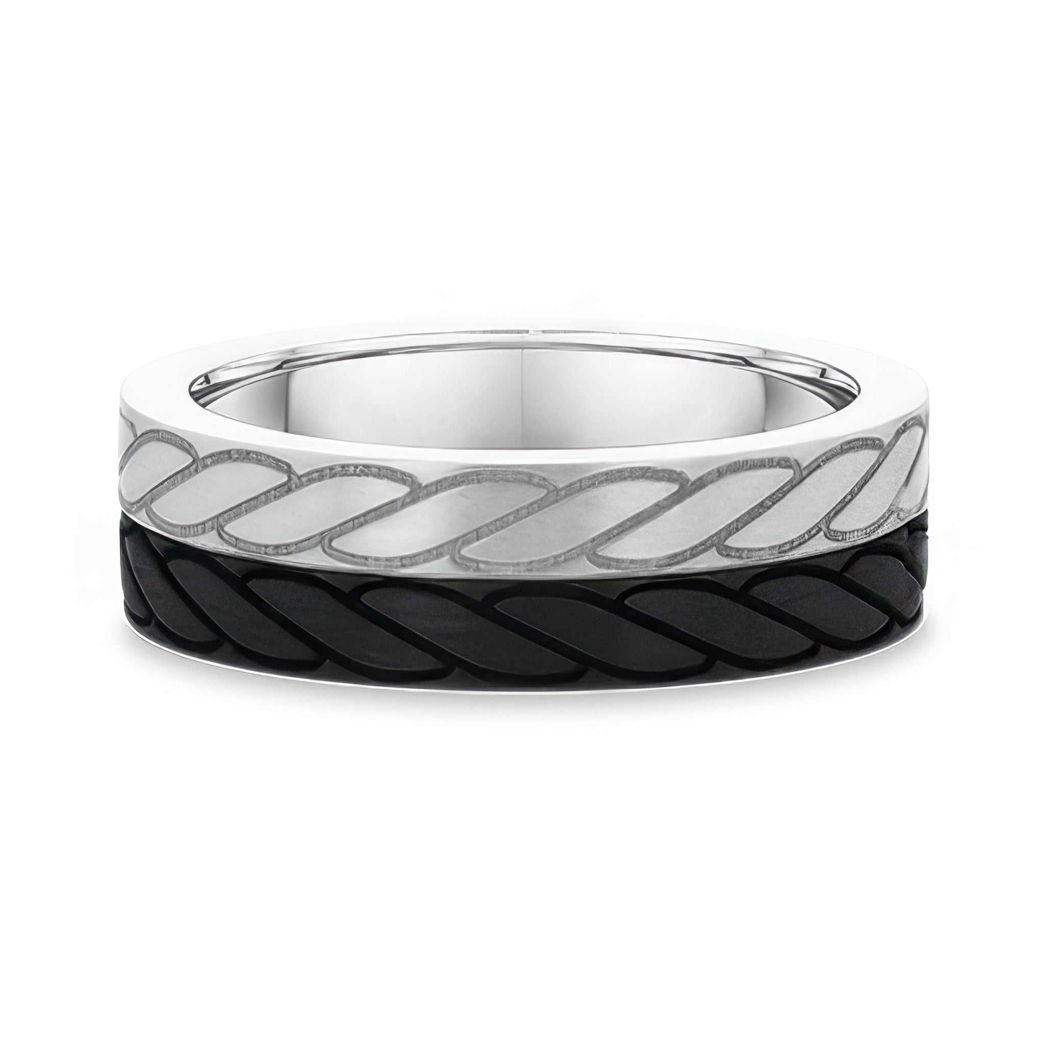 6mm White Gold and Carbon Fiber Braided Pattern Band