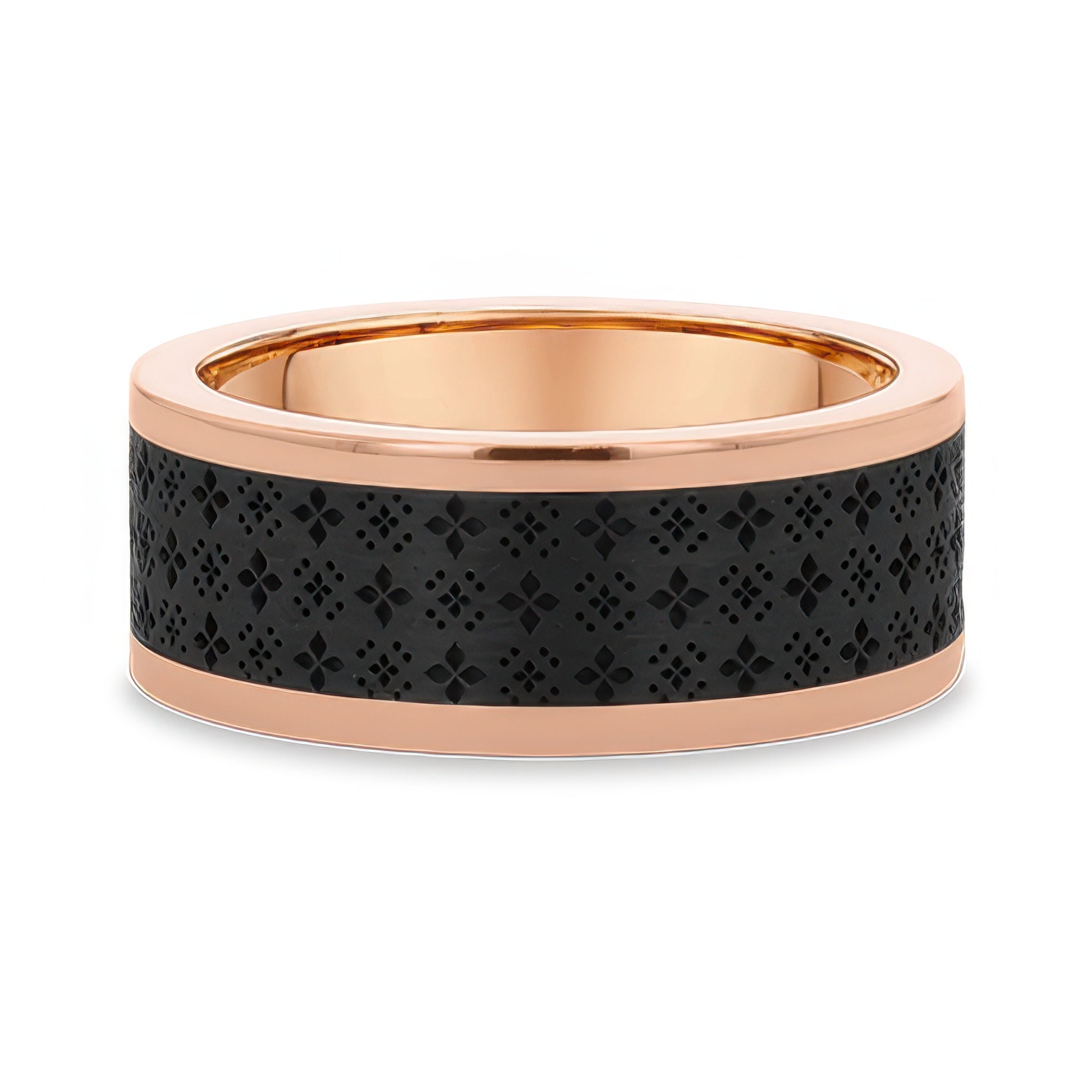 Rose Gold and Carbon Fiber Greek Key Men’s Wedding Band