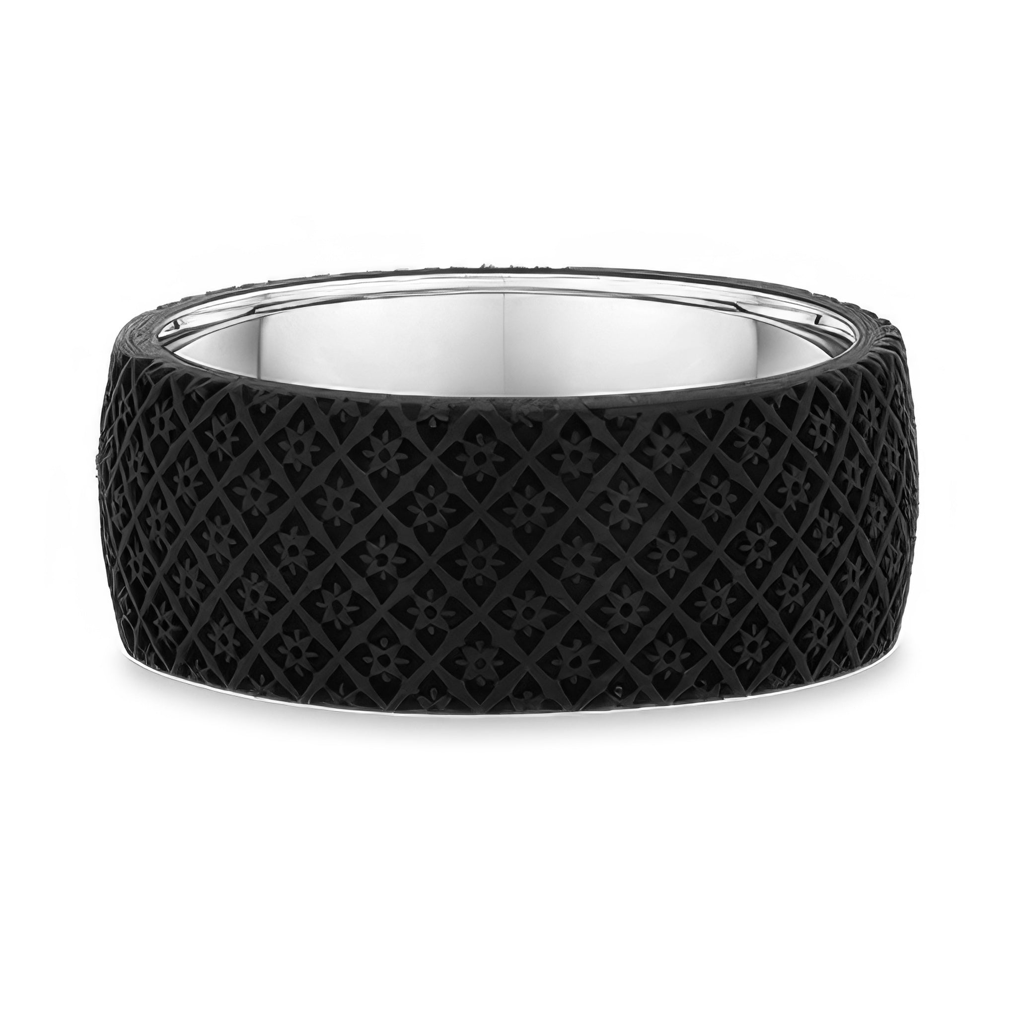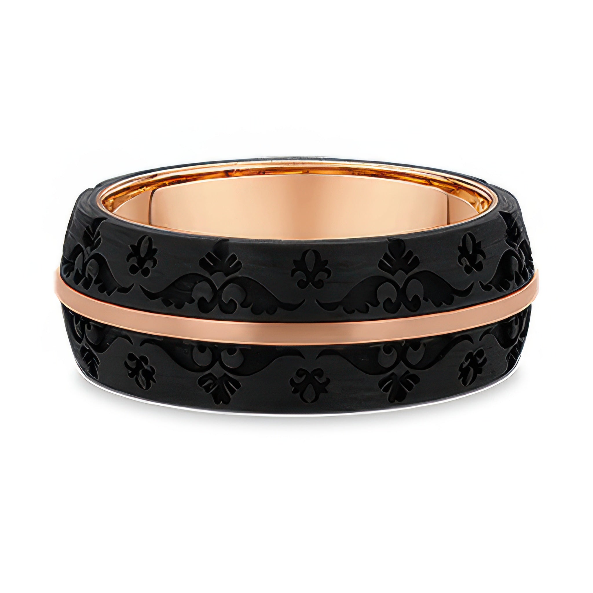 8mm Ornate Floral Pattern Carbon Fiber Wedding Band