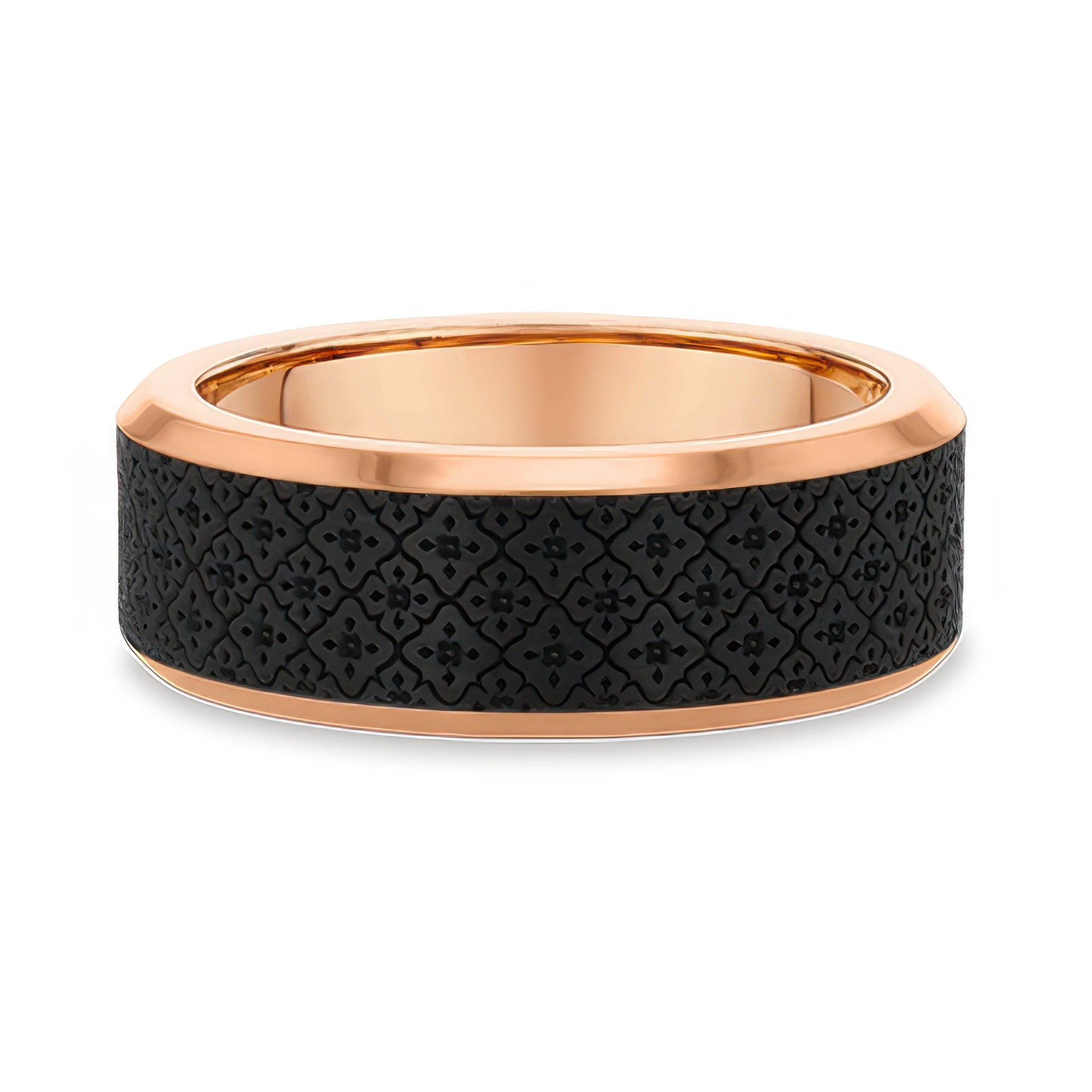 7mm Engraved Flower Carbon Fiber And Rose Gold Wedding Band