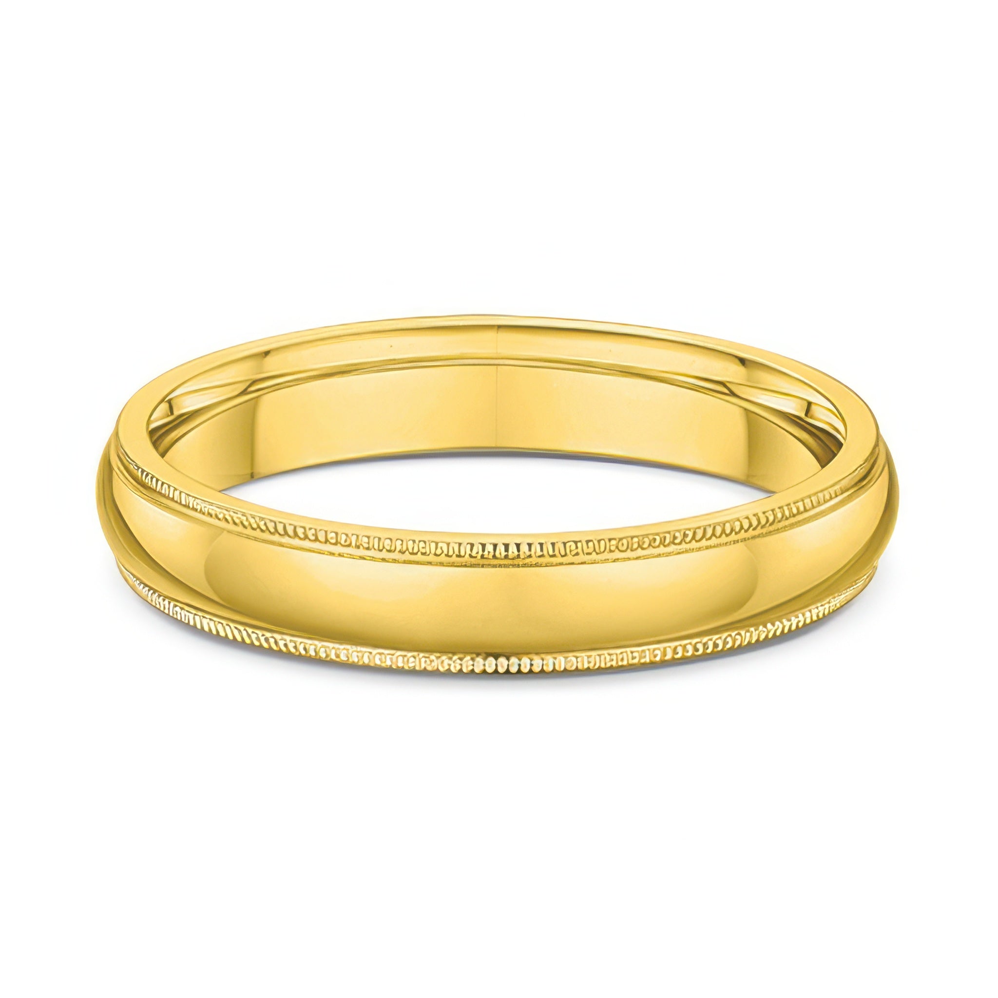 4mm Rounded Milgrain Edge Yellow Gold Wedding Band