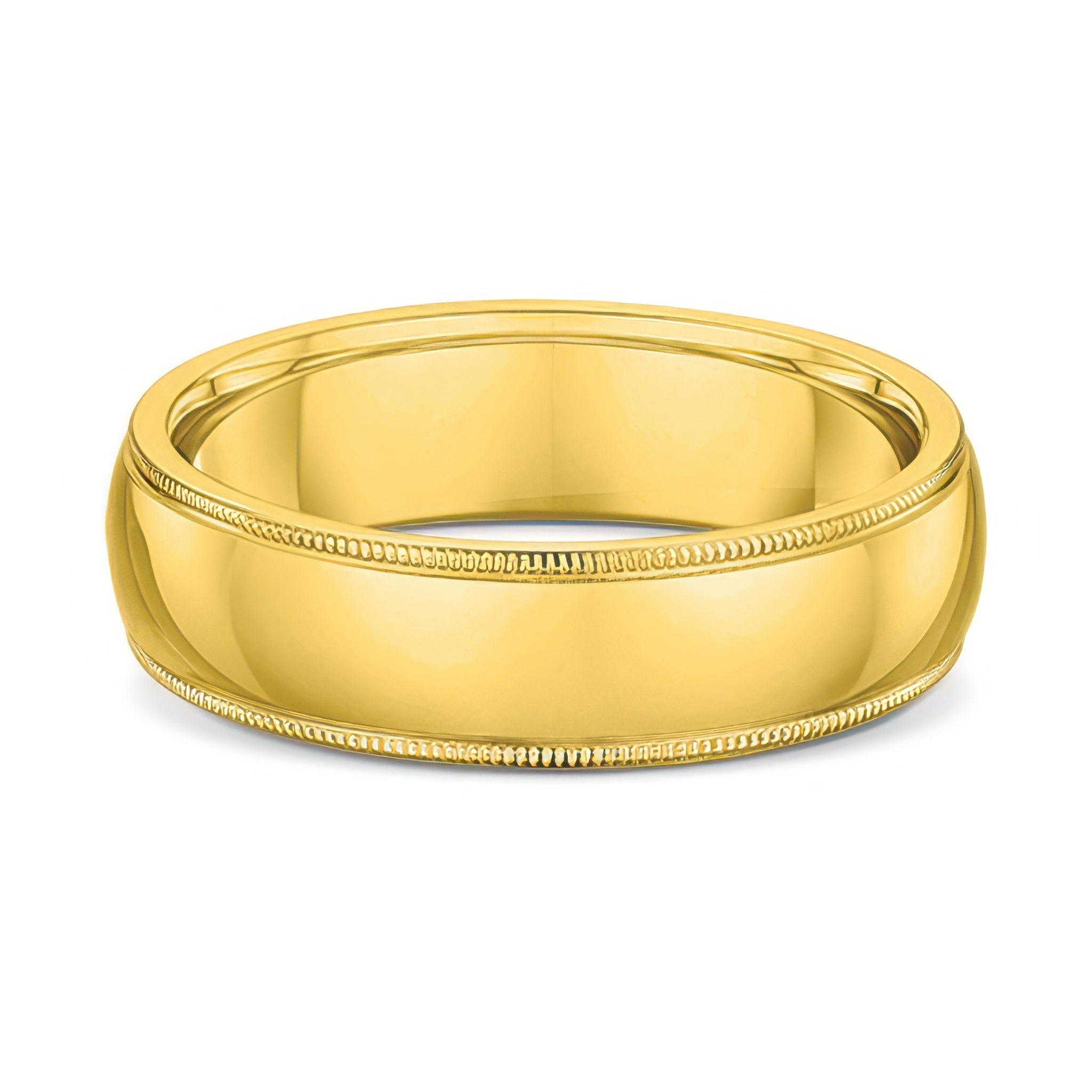 6mm Rounded Milgrain Edge Yellow Gold Wedding Band