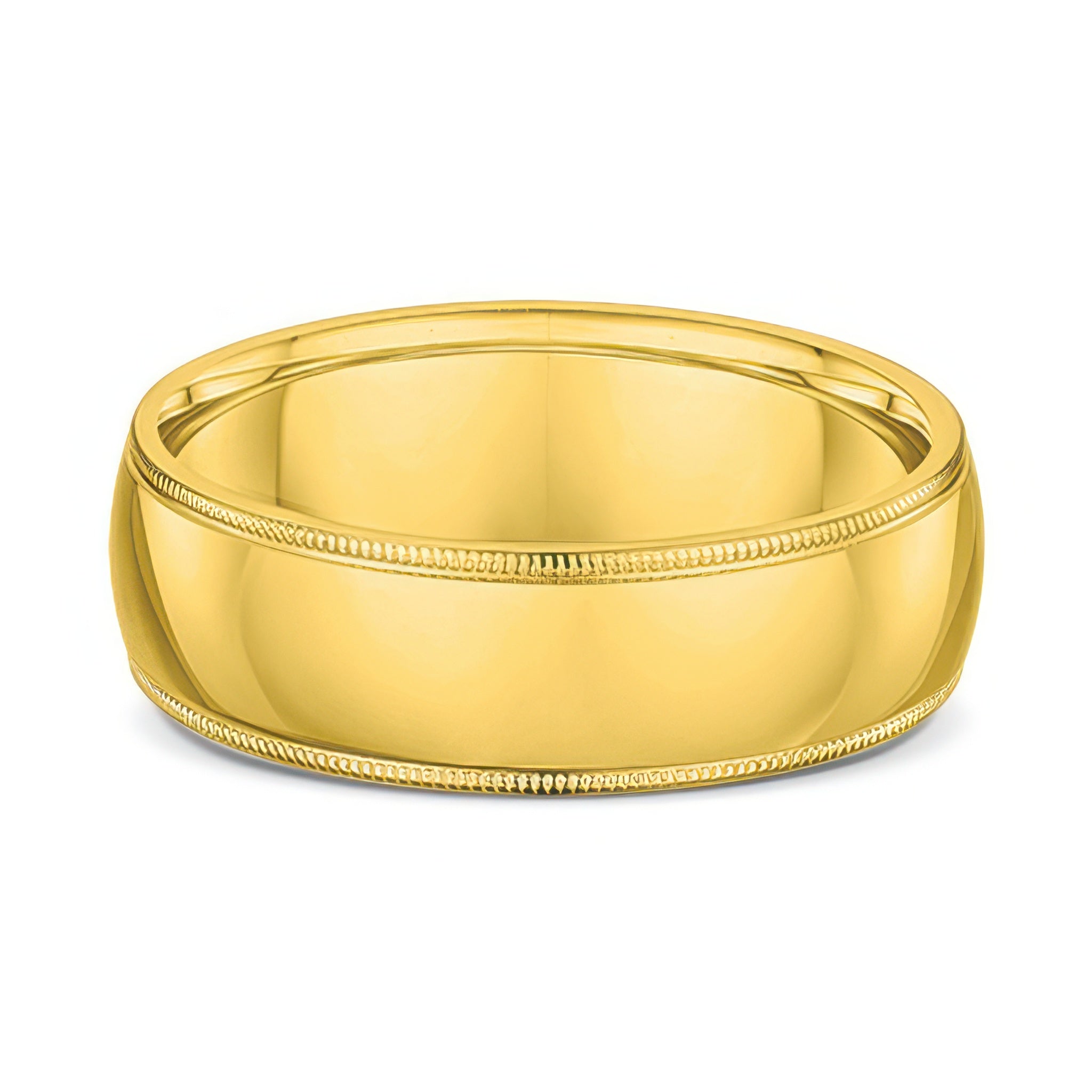 7mm Rounded Milgrain Edge Yellow Gold Wedding Band