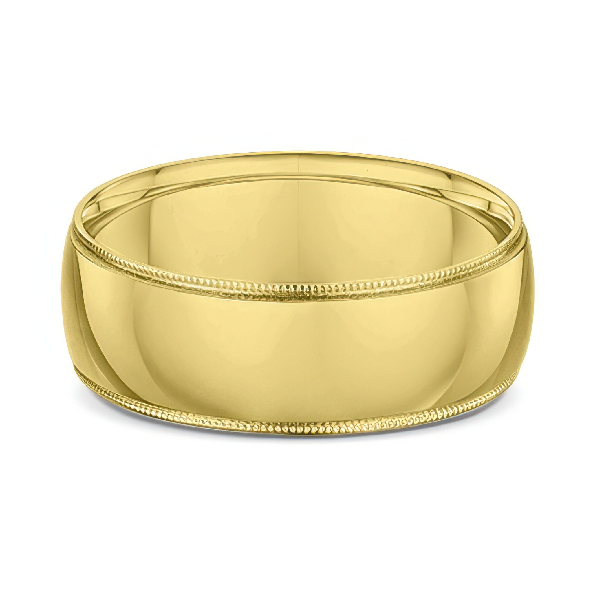 8mm Rounded Milgrain Edge Yellow Gold Wedding Band