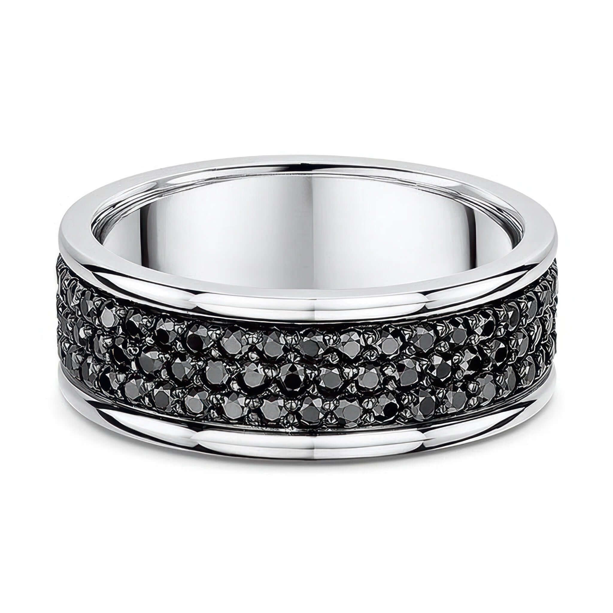 3 Row Black Diamond Wedding Band