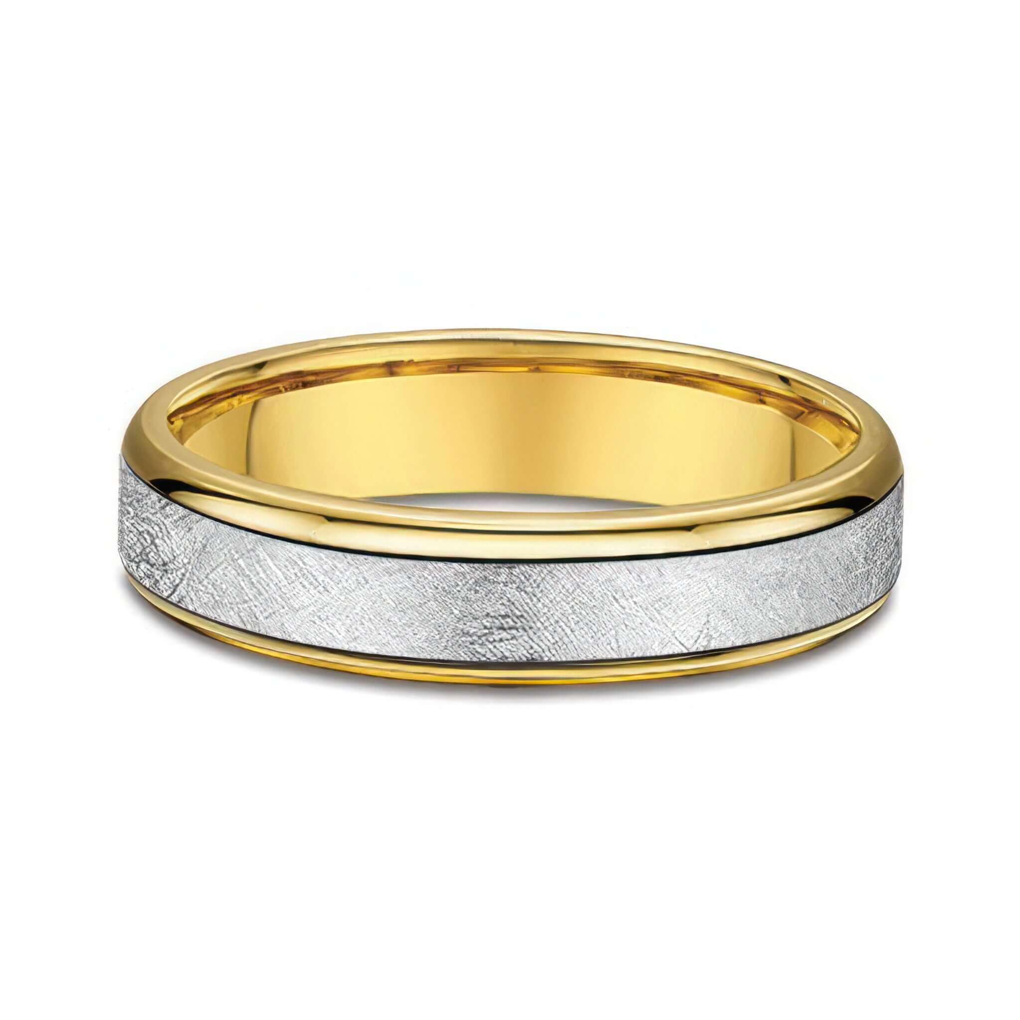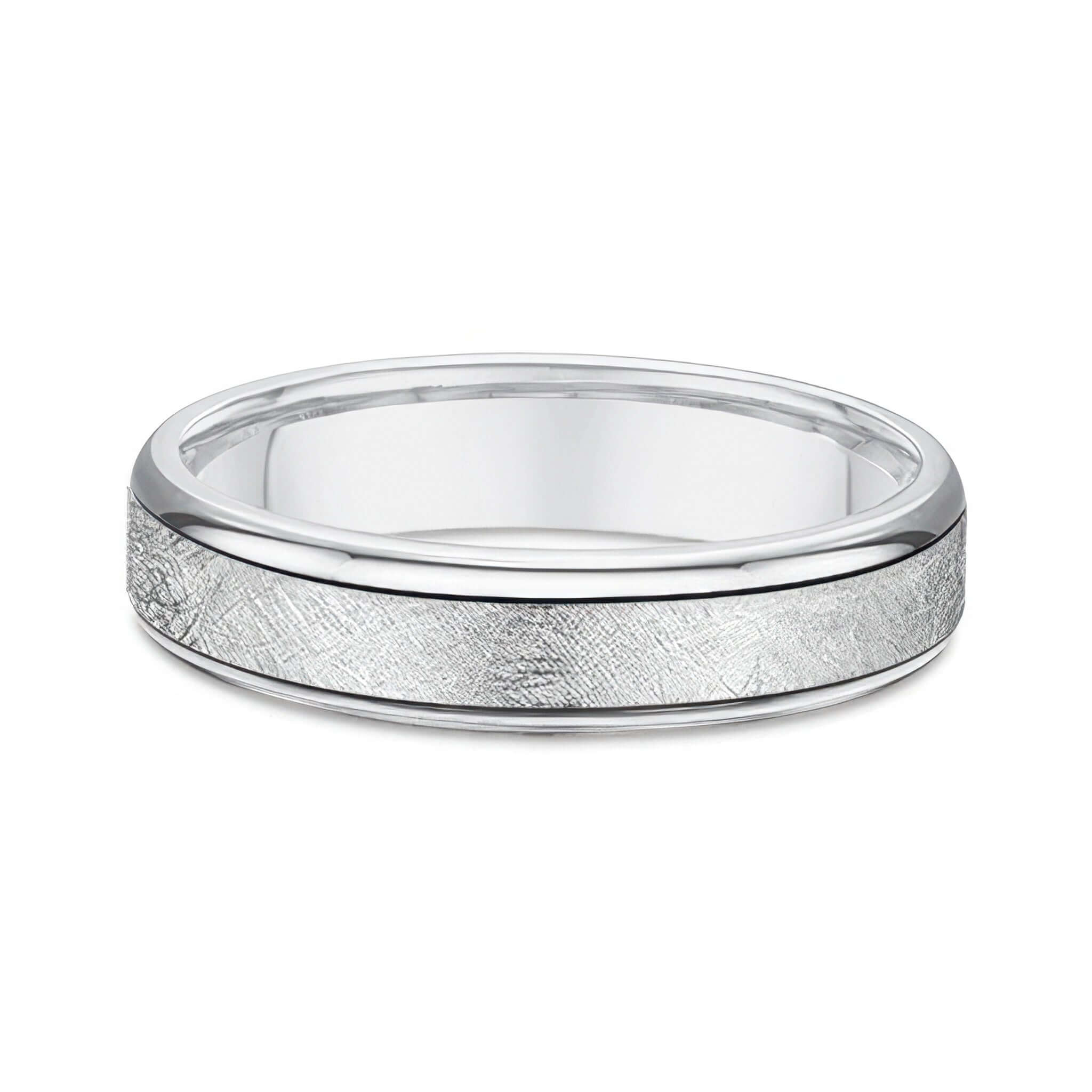 This 6mm textured center wedding band combines a distinct tactile design with polished edges for a refined finish. Crafted to balance durability and style, its textured center enhances grip and visual appeal, while the smooth edges ensure comfortable wear throughout the day. Ideal for men seeking a wedding band that blends sophistication with a subtle ruggedness.