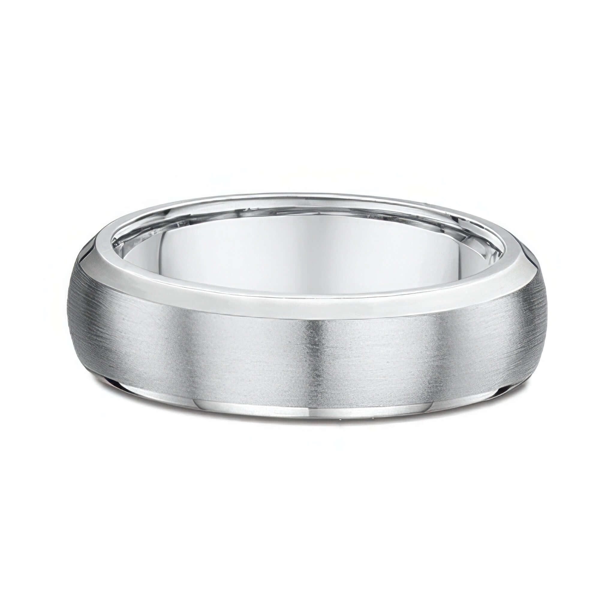 This 6mm white gold satin finish wedding band offers a sleek and timeless design for the modern groom. Crafted in luminous white gold, this band features a soft satin finish across the center that contrasts beautifully with the polished edges. Comfortable and elegant, the White Gold Satin Finish Wedding Band is a versatile choice that combines classic style with a refined, contemporary touch.