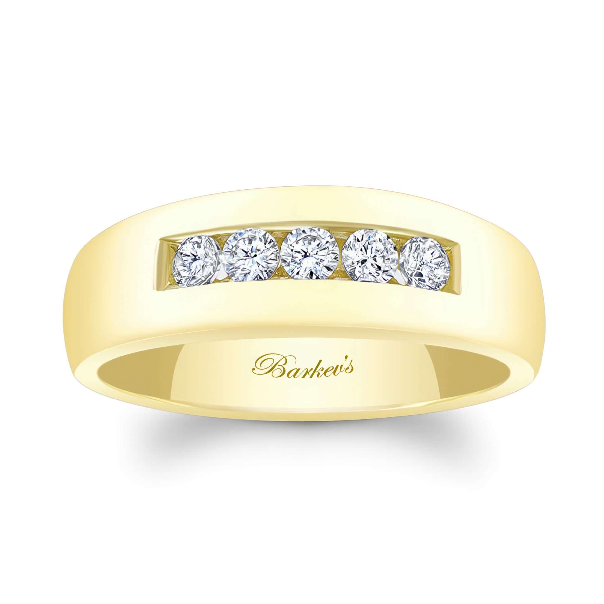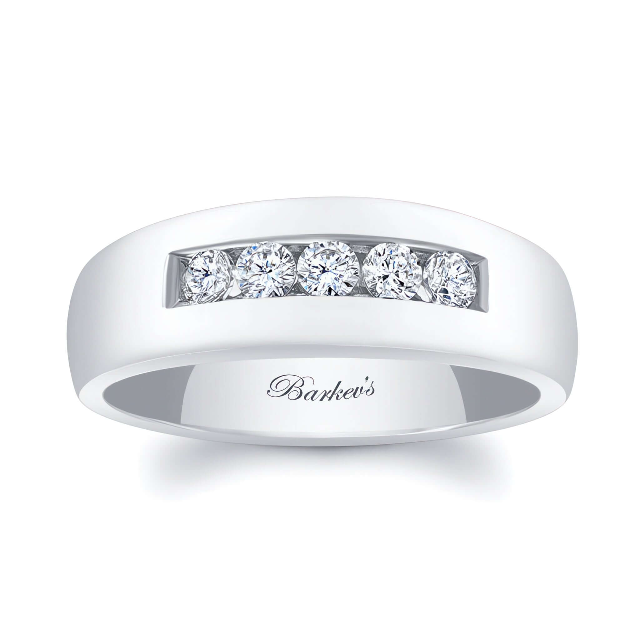 This mens round diamond domed wedding band features channel set round diamonds sitting on polished domed band.