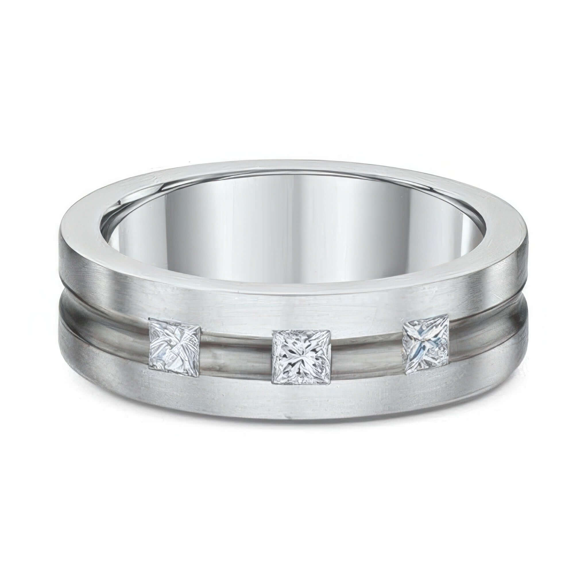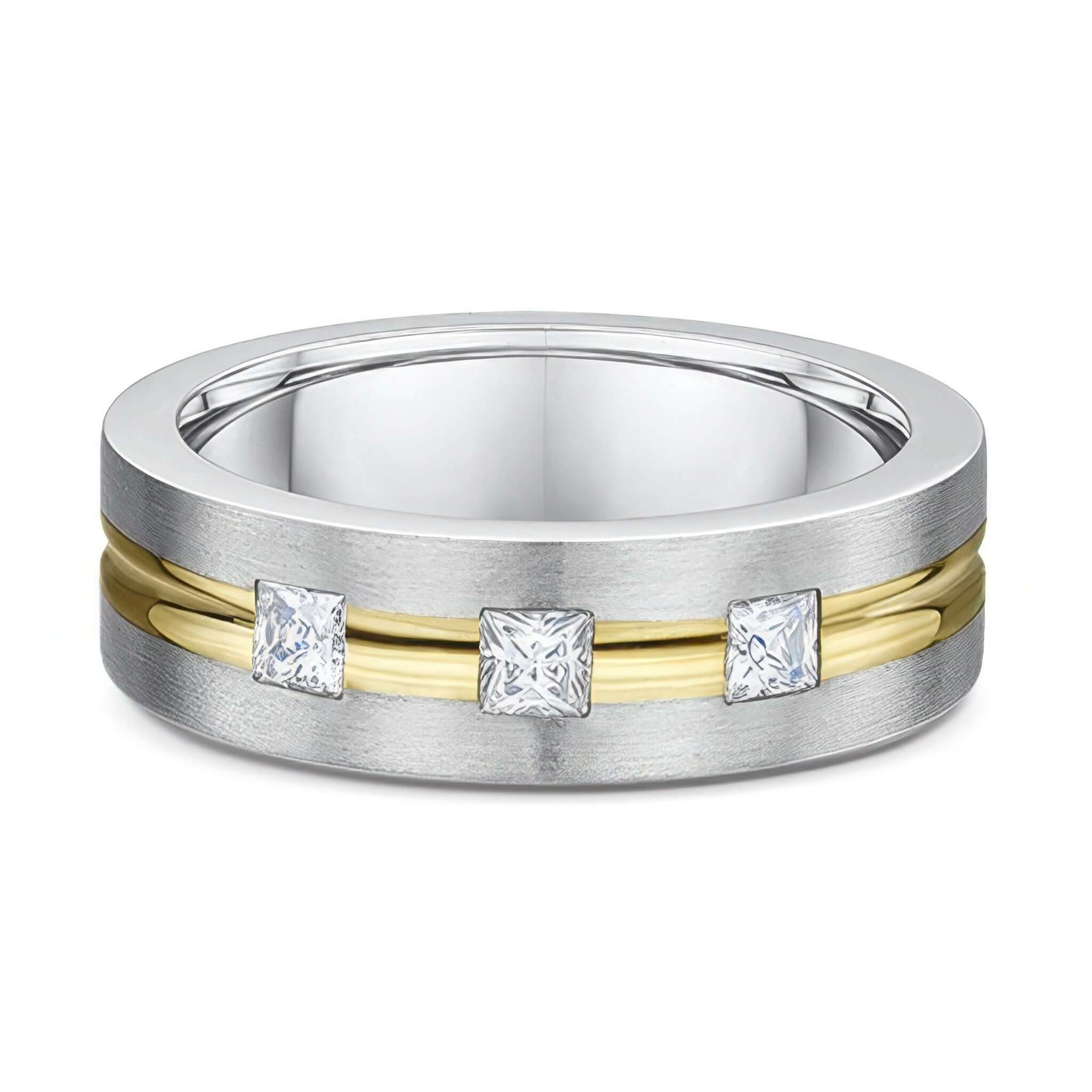 Two Tone Princess Cut Diamond Wedding Band