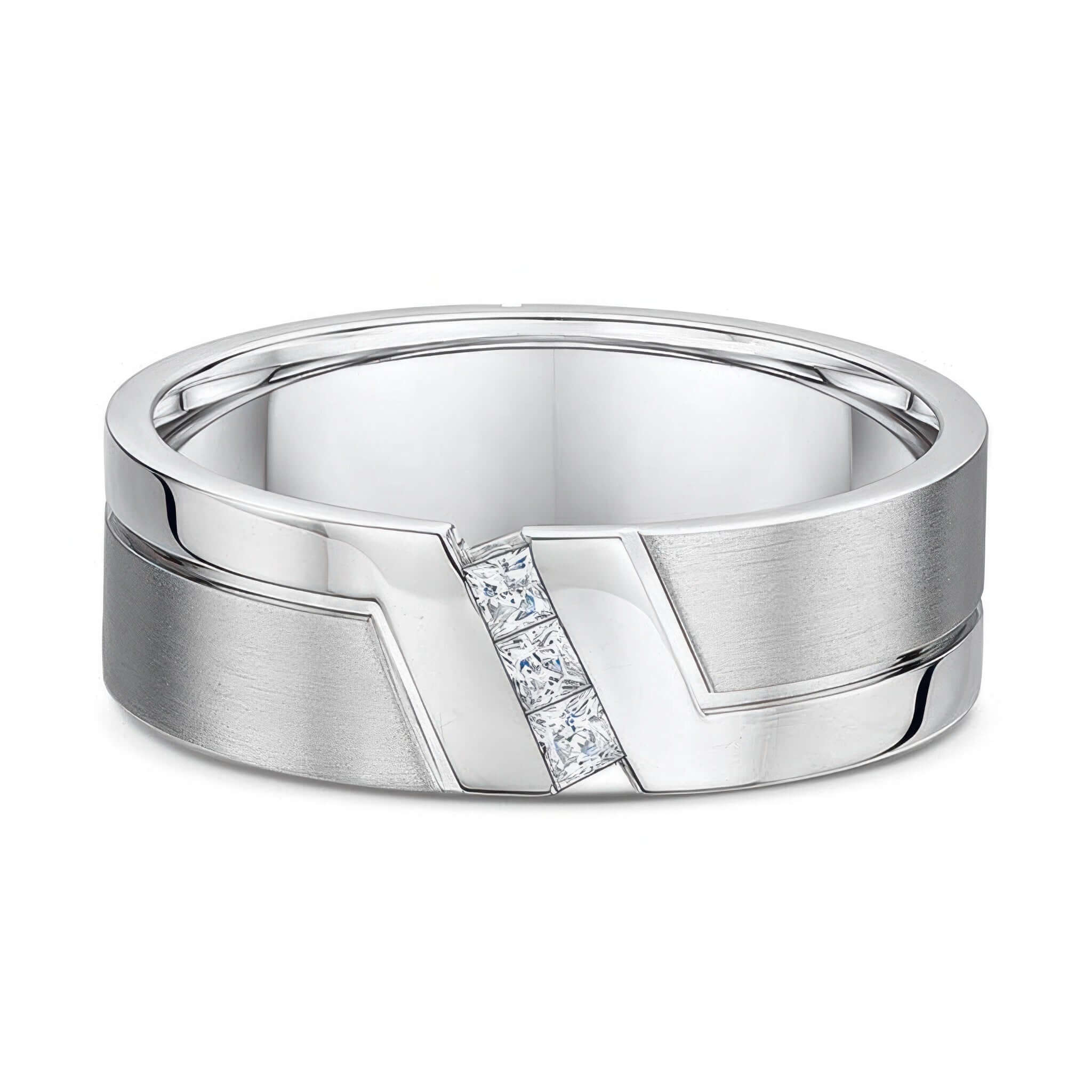 Unique Men's Angled Princess Cut Diamond Wedding Band