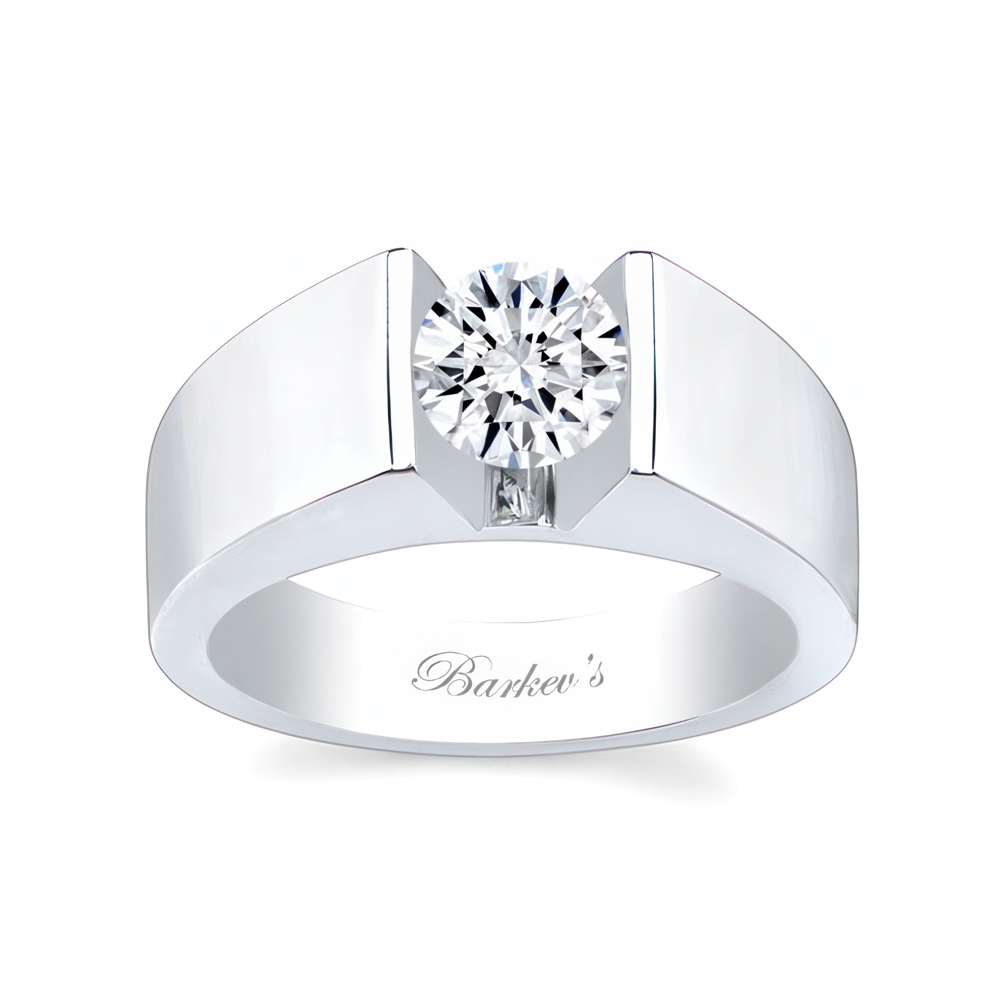 This 0.75 carat round moissanite solitaire ring features a channel set round center with a thick shank and bold styling.