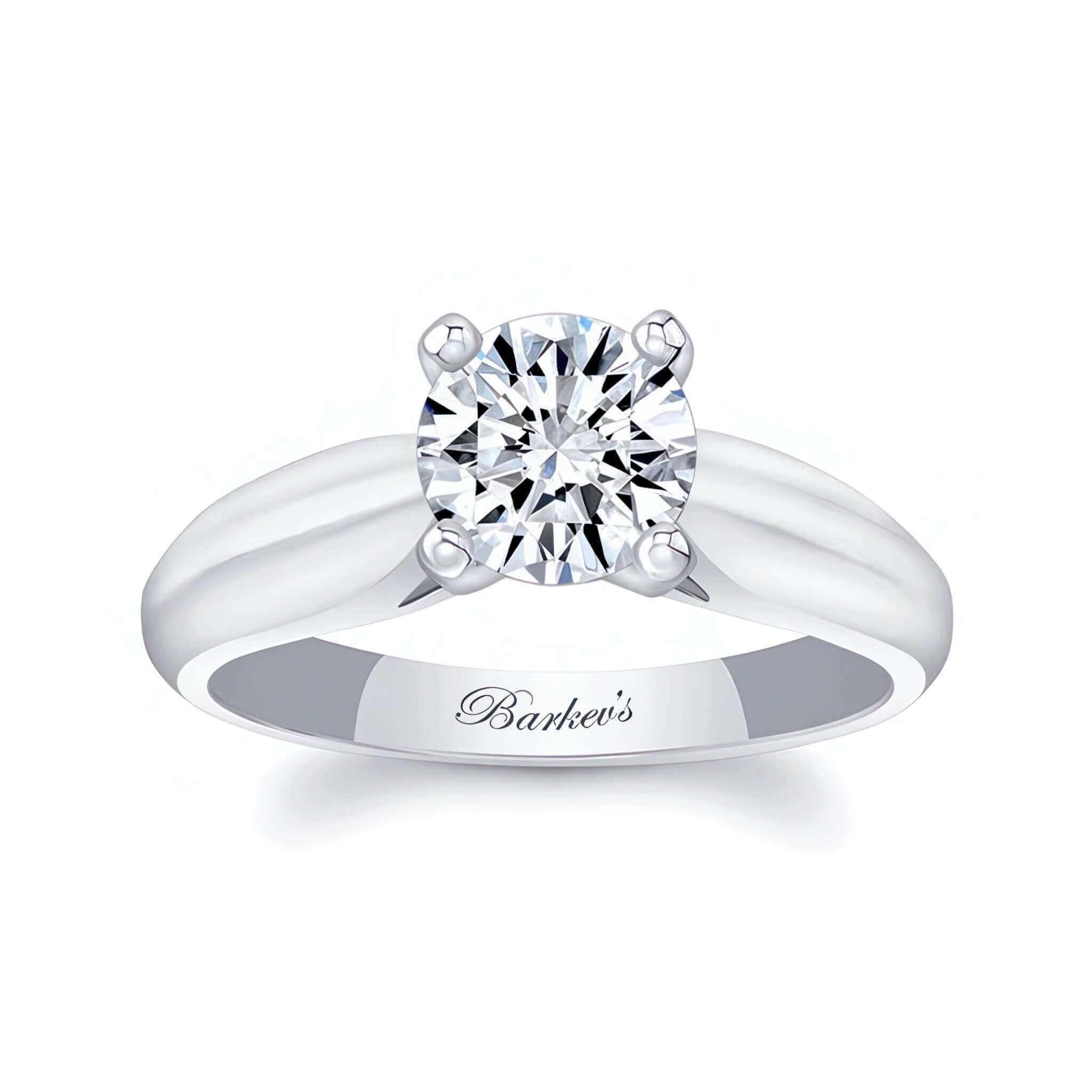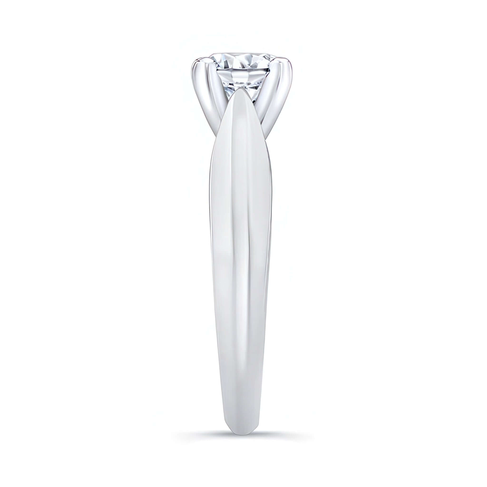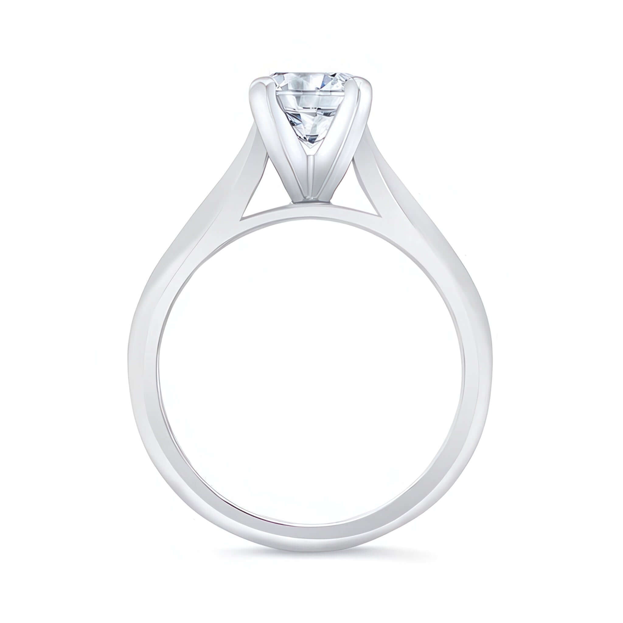 A simple 1 carat moissanite solitaire engagement ring featuring sleek and simple lines that compliment the center stone.