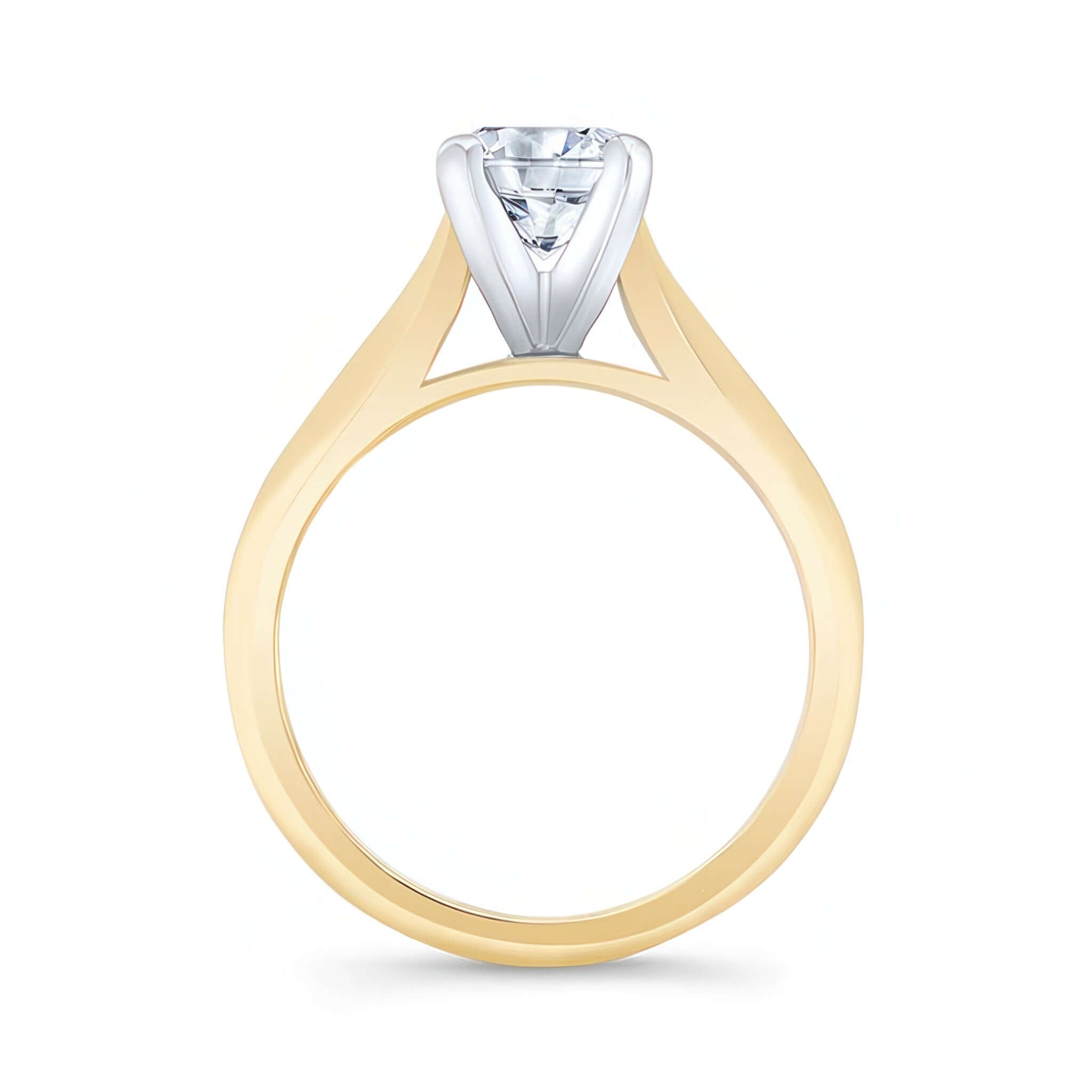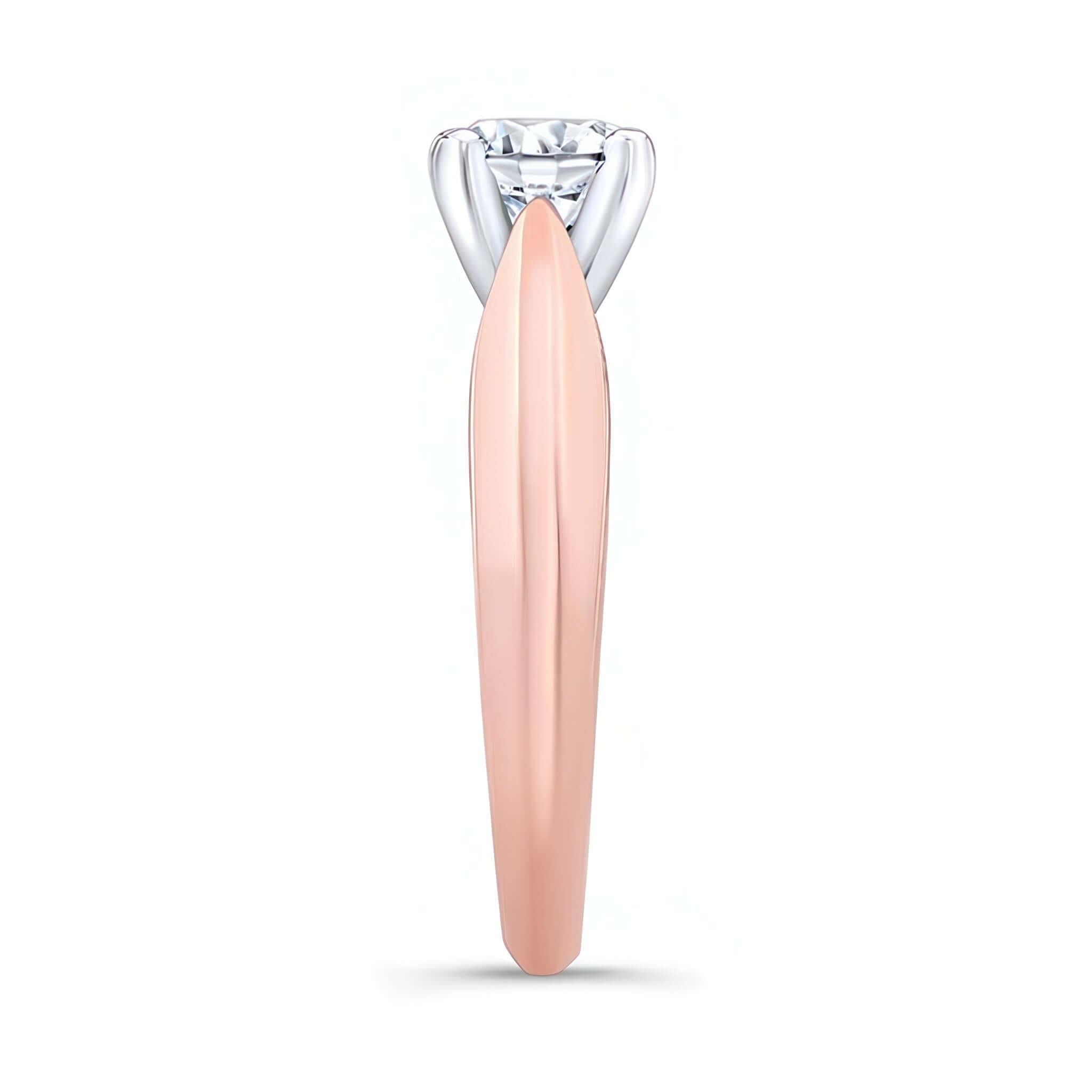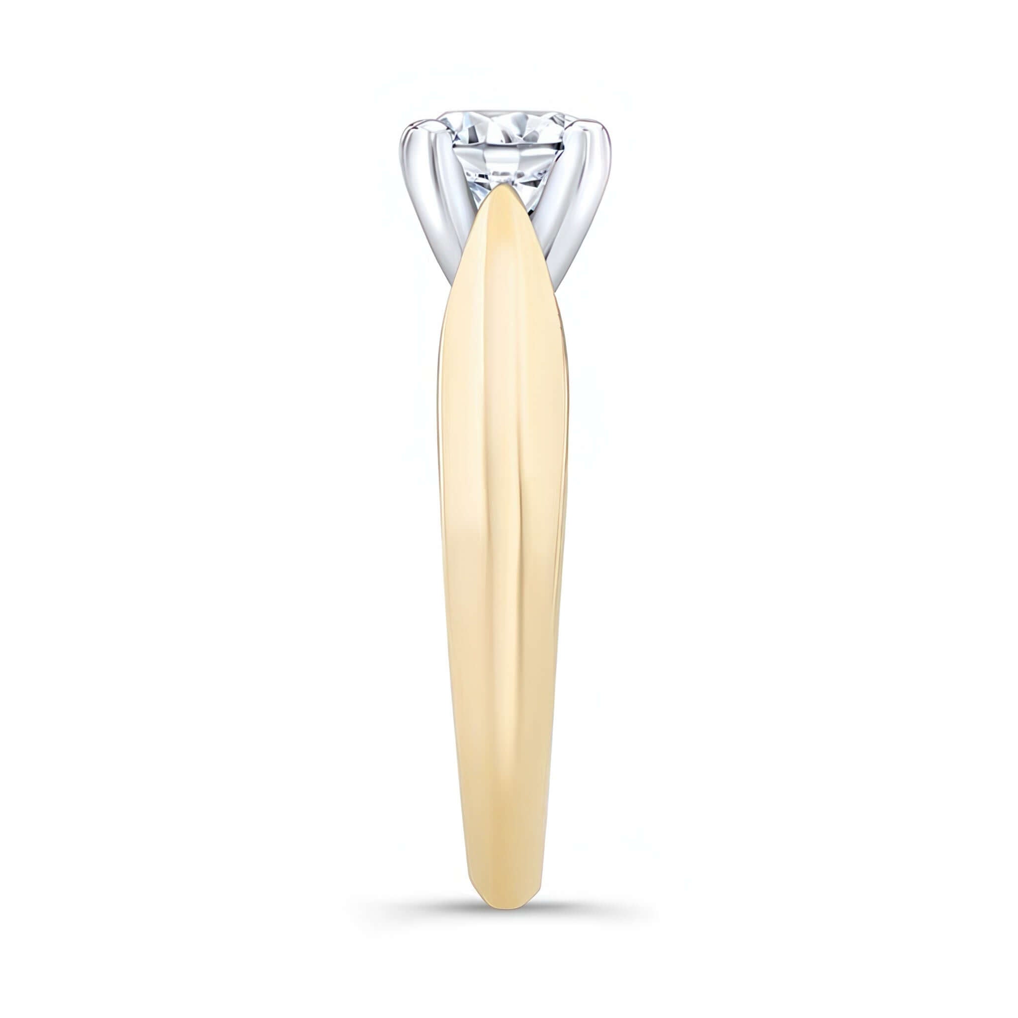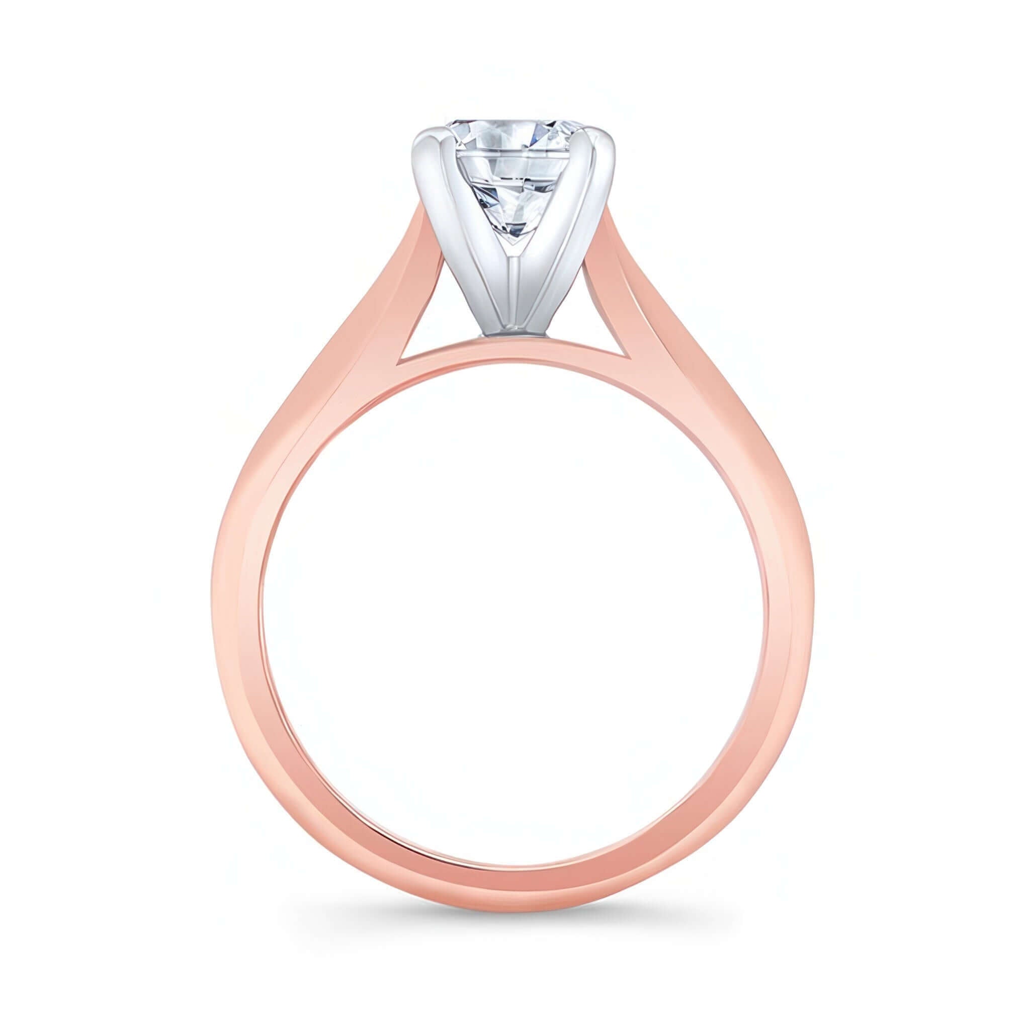 A simple 1 carat moissanite solitaire engagement ring featuring sleek and simple lines that compliment the center stone.