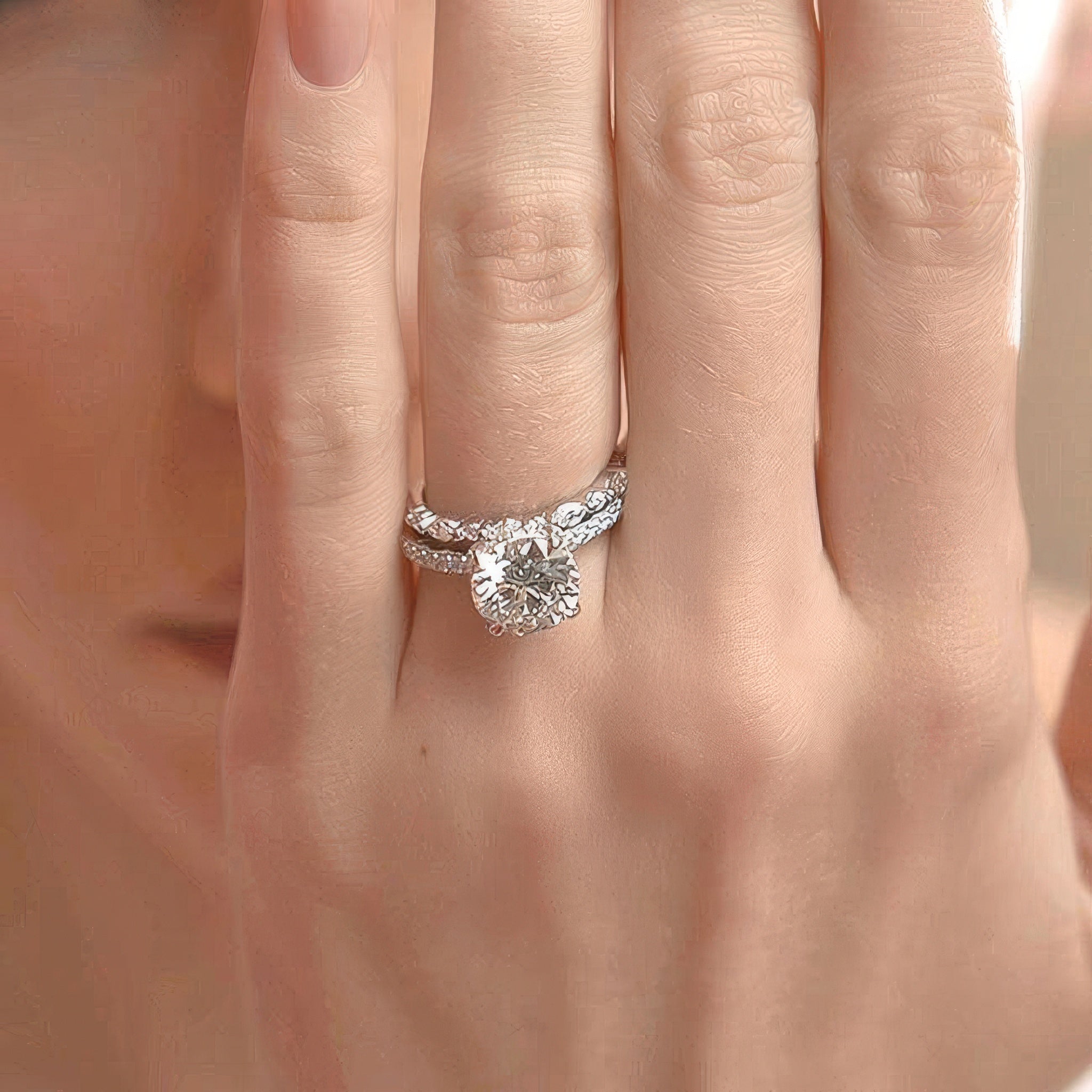 2 Carat Moissanite Hidden Halo Bridal Set