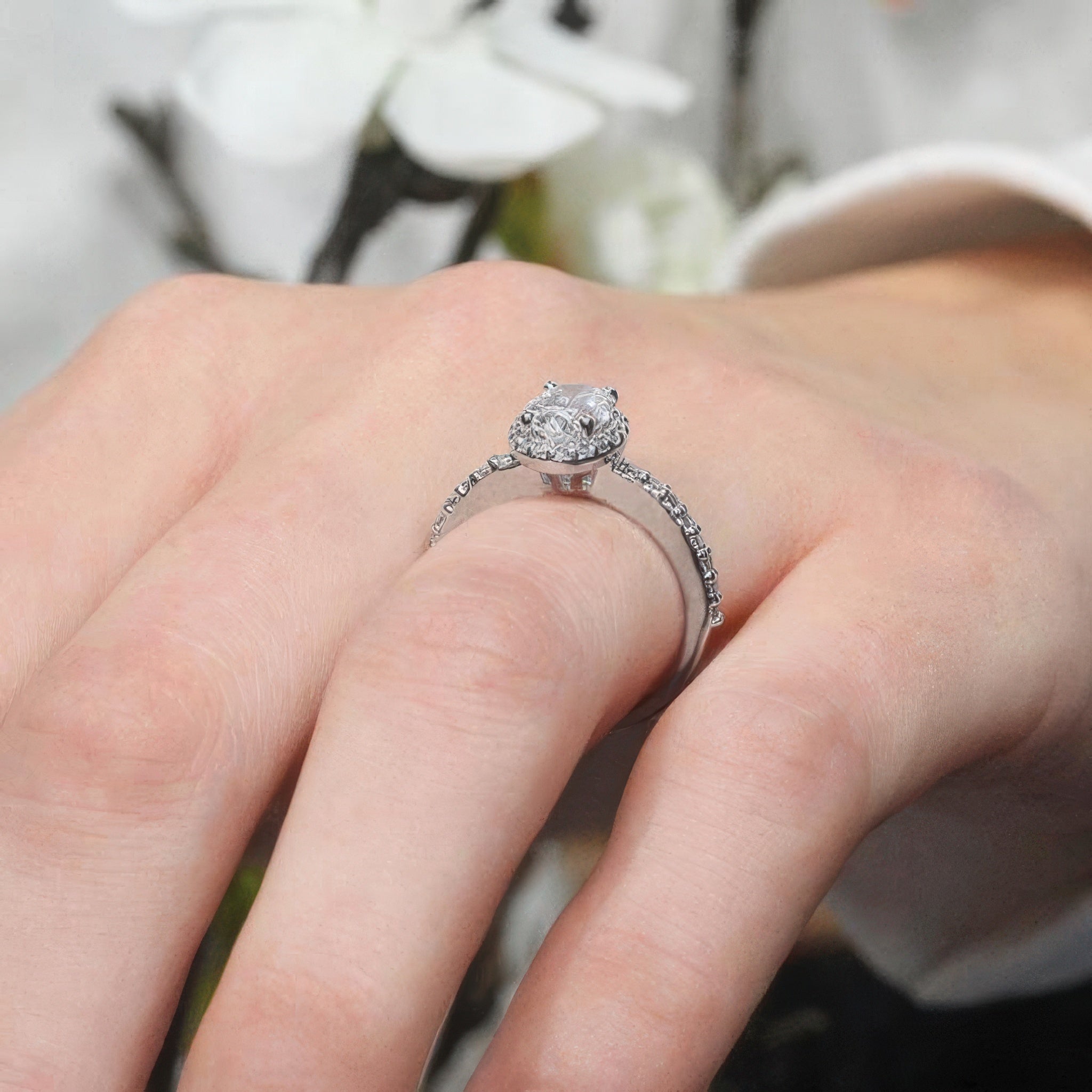 2 Carat Oval Moissanite Halo Engagement Ring