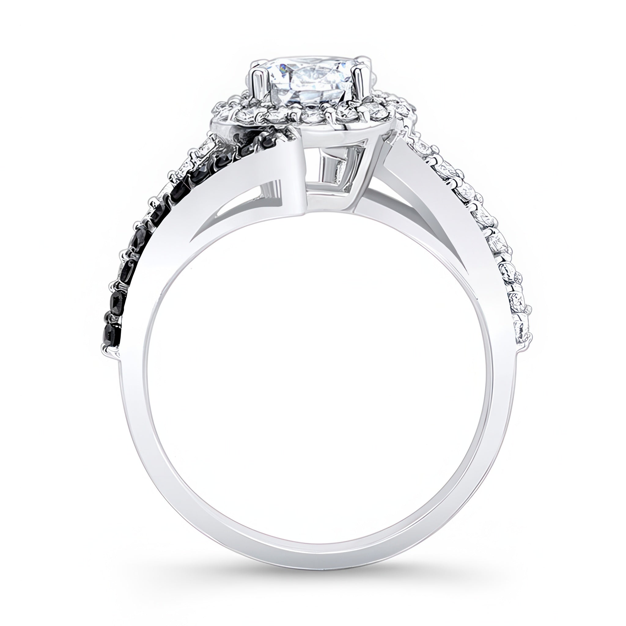 Contemporary Black Diamond Accent Moissanite Engagement Ring